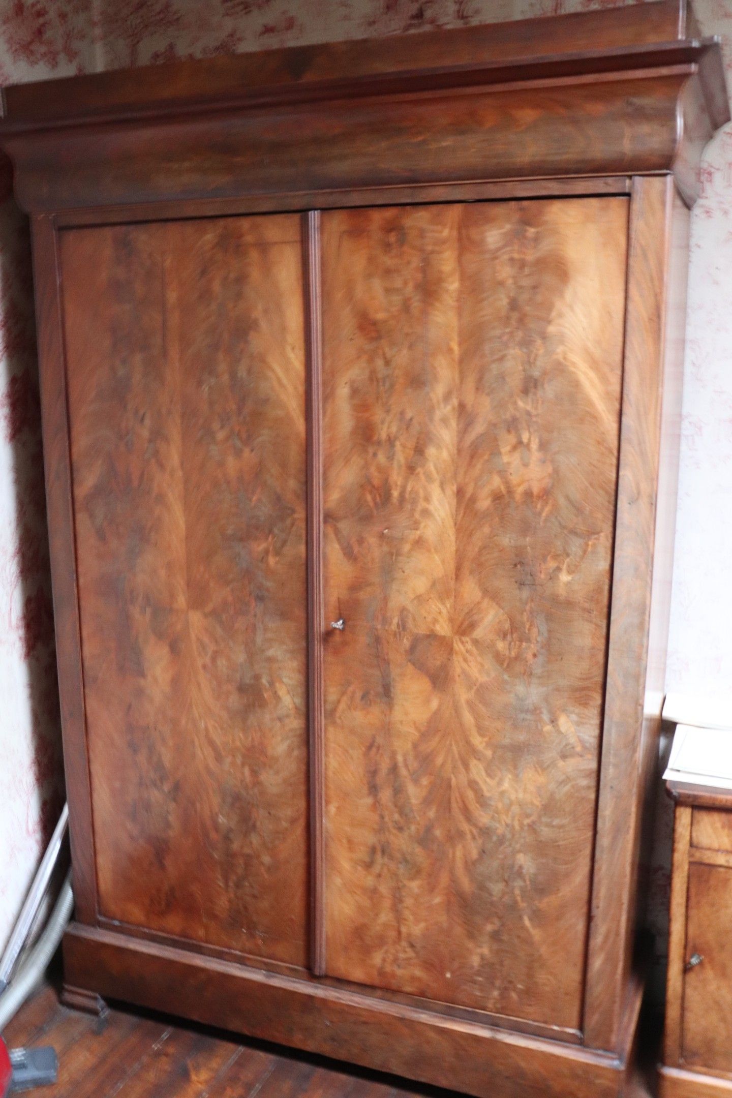 Louis Philippe cabinet with two doors, burr veneer. 210 x 145 x 57 cm