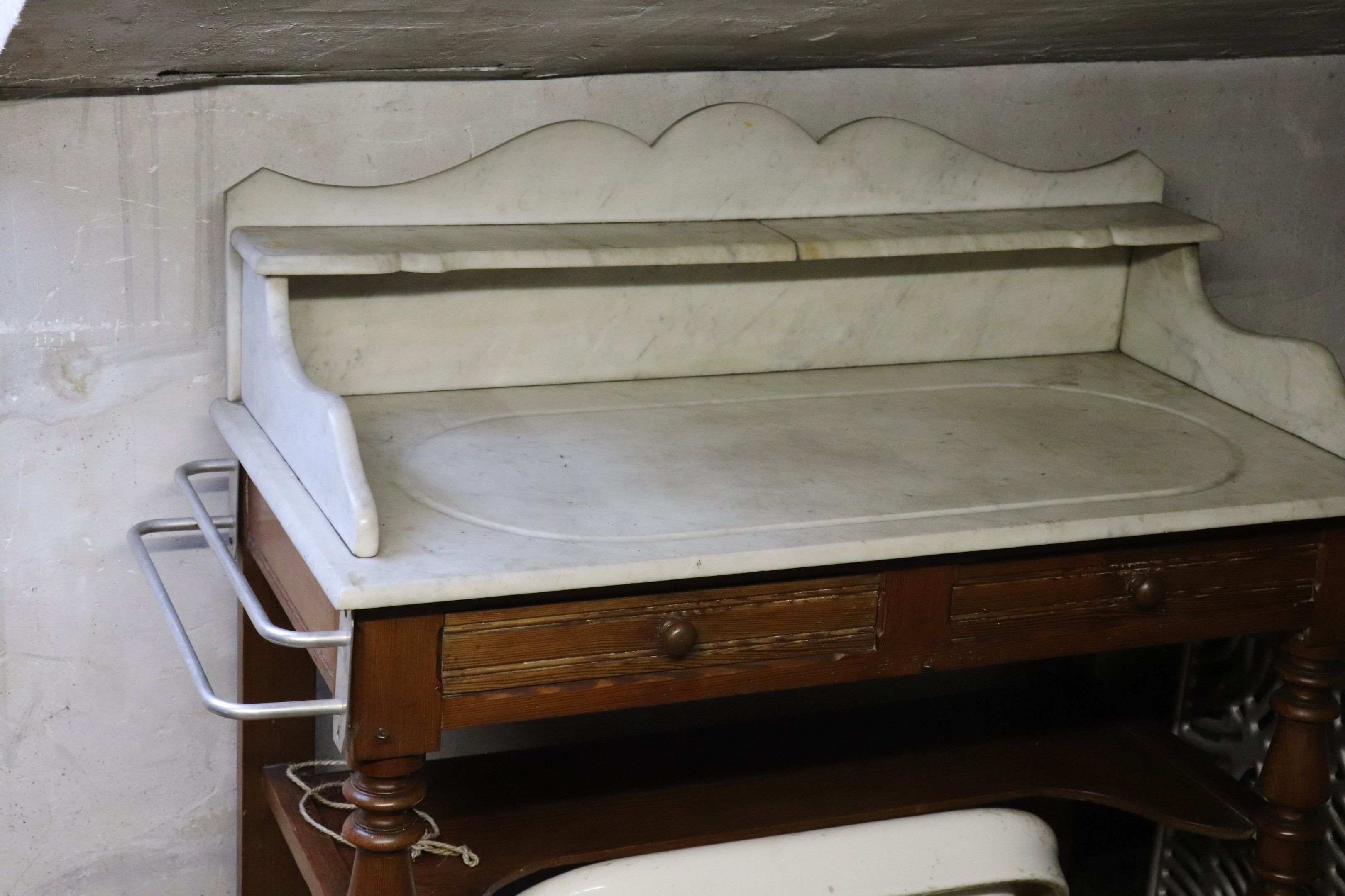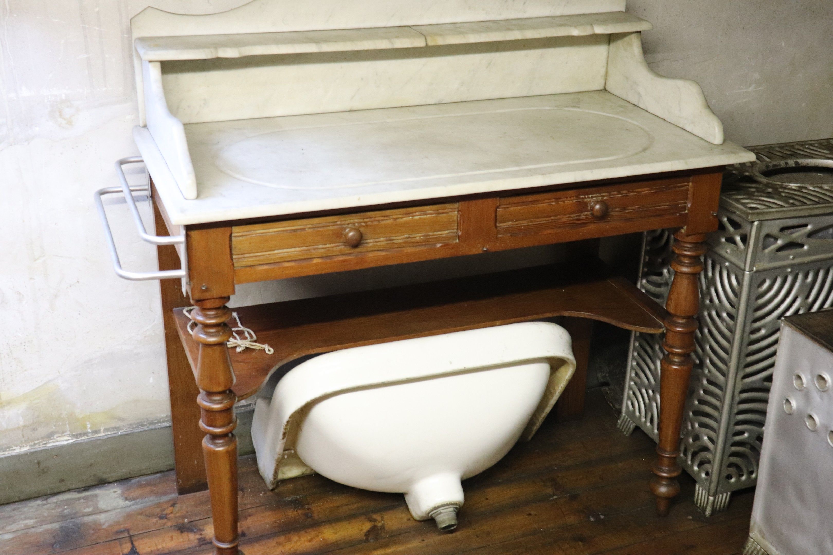 Pitch pine Louis Philippe vanity with white marble top.110 x 100 x 48 cm