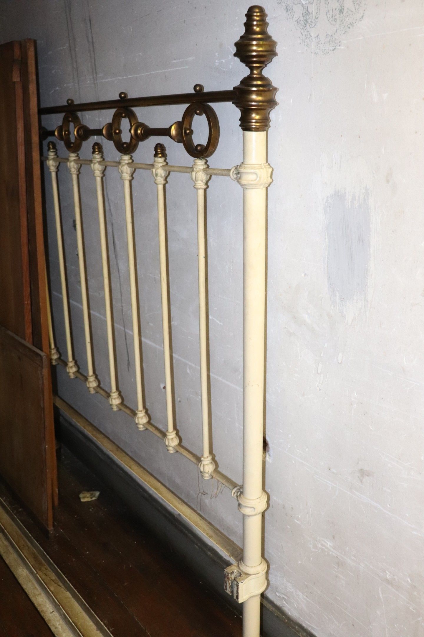White and brass lacquered metal bed frame, 120 x 180 cm.