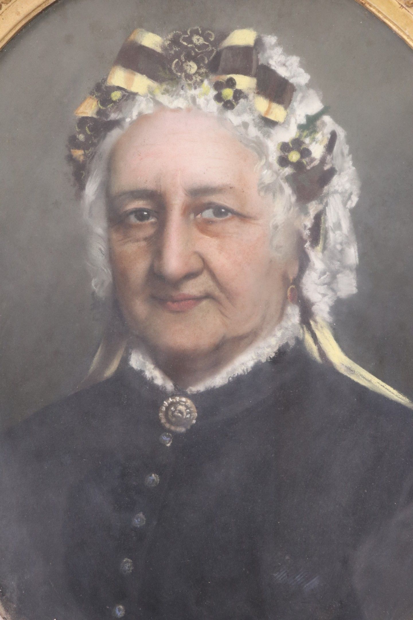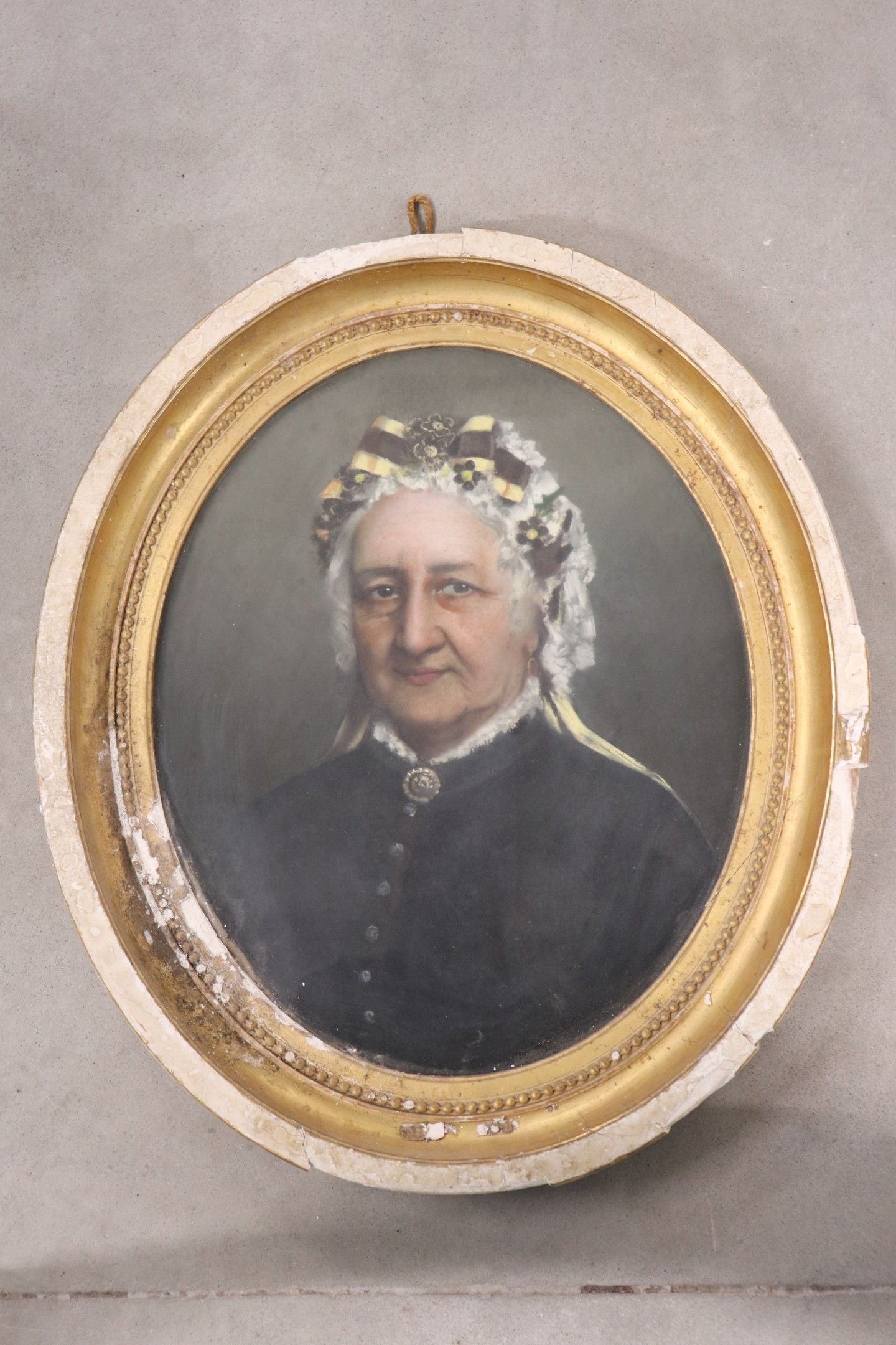 French school XIXth century "Portrait of a grandmother" pastel on oval paper unsigned. 53 x 43 cm
