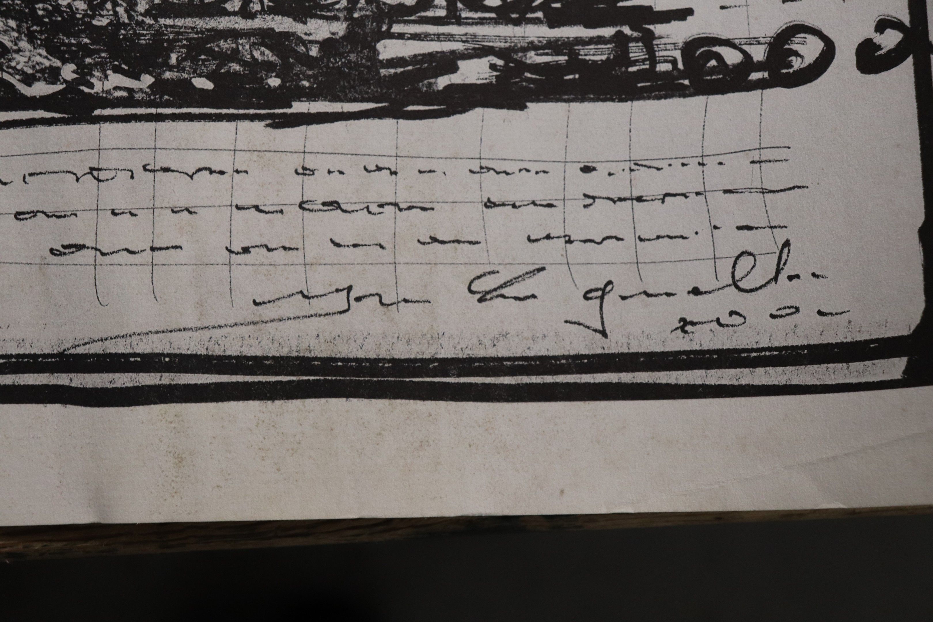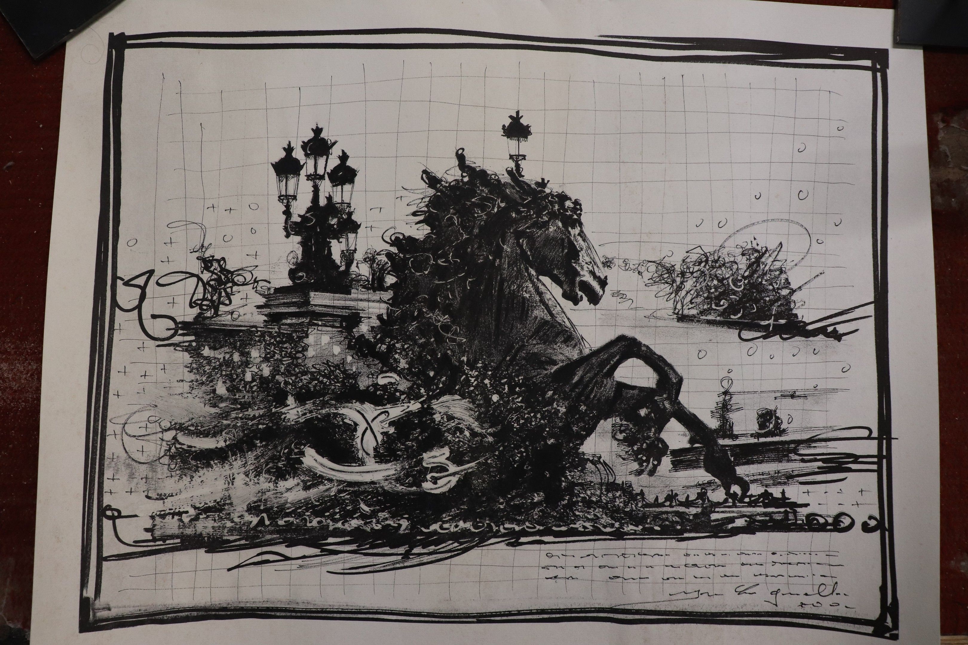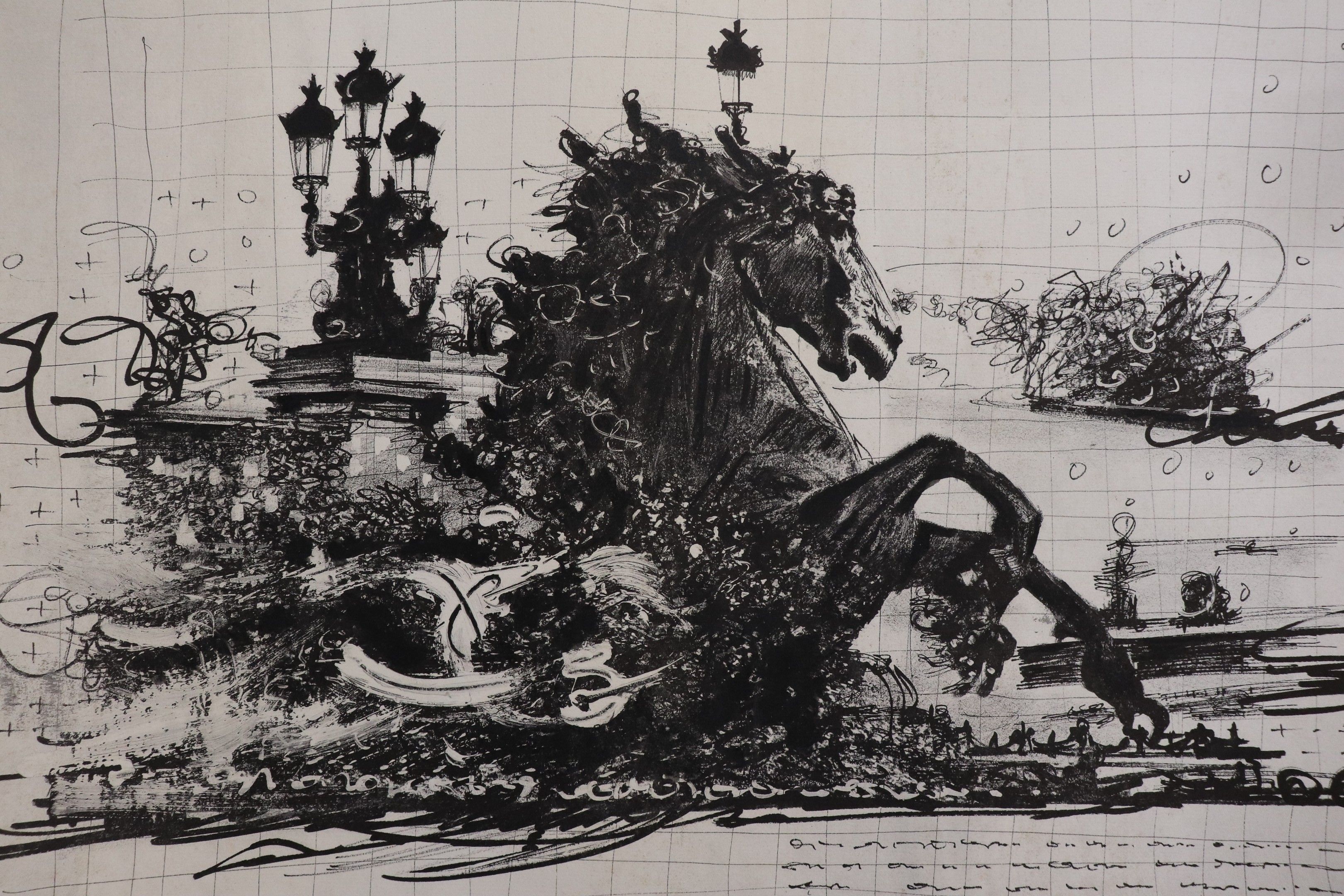 After Yves LE GUELLEC (born 1952) "Cheval marin du monument aux Girondins" etching signed in the plate. 39 x 52 cm