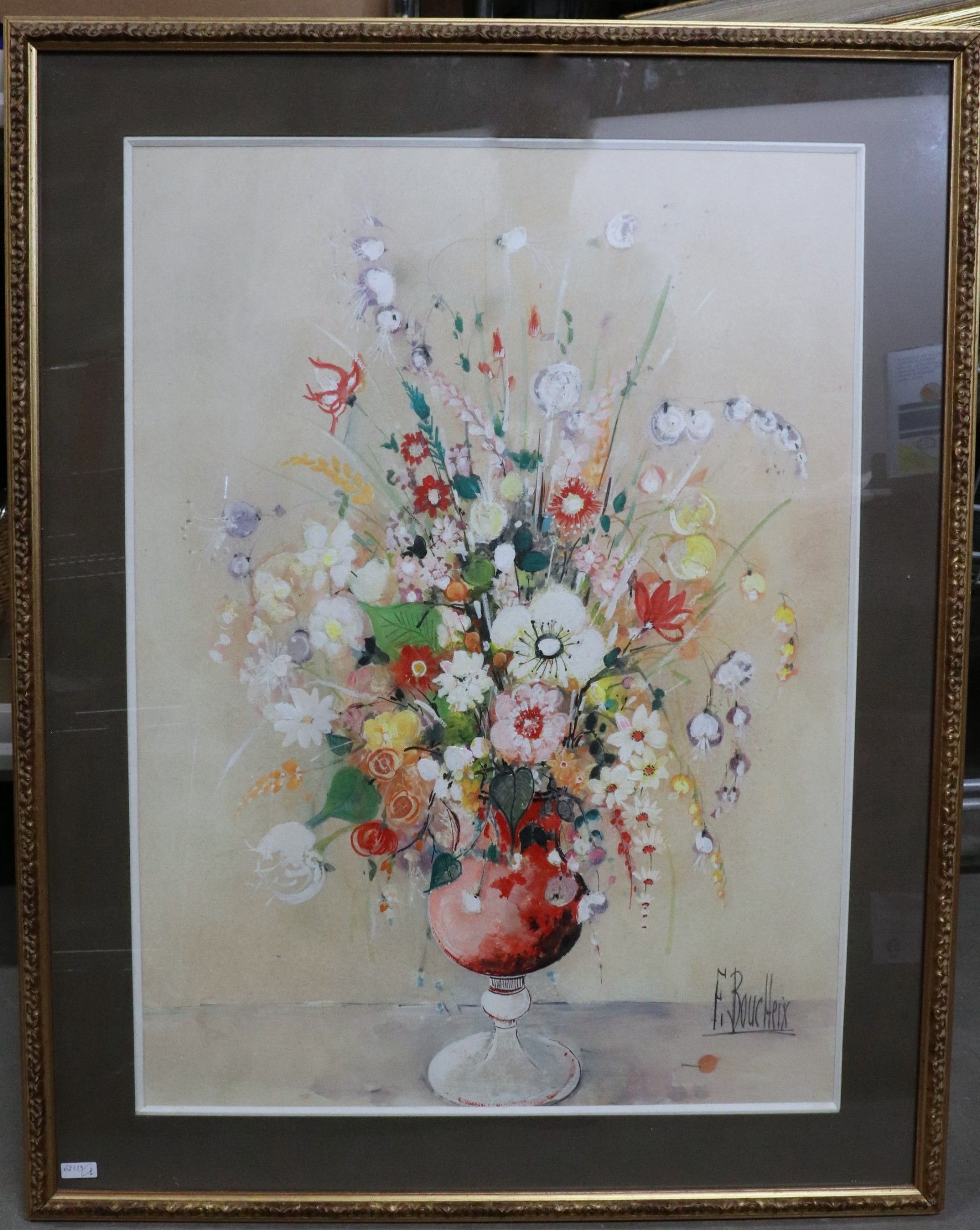 BOUCHEIX François (Born 1940) "Les fleurs imaginaires" gouache on Arches, signed lower right. 75 x 54 cm