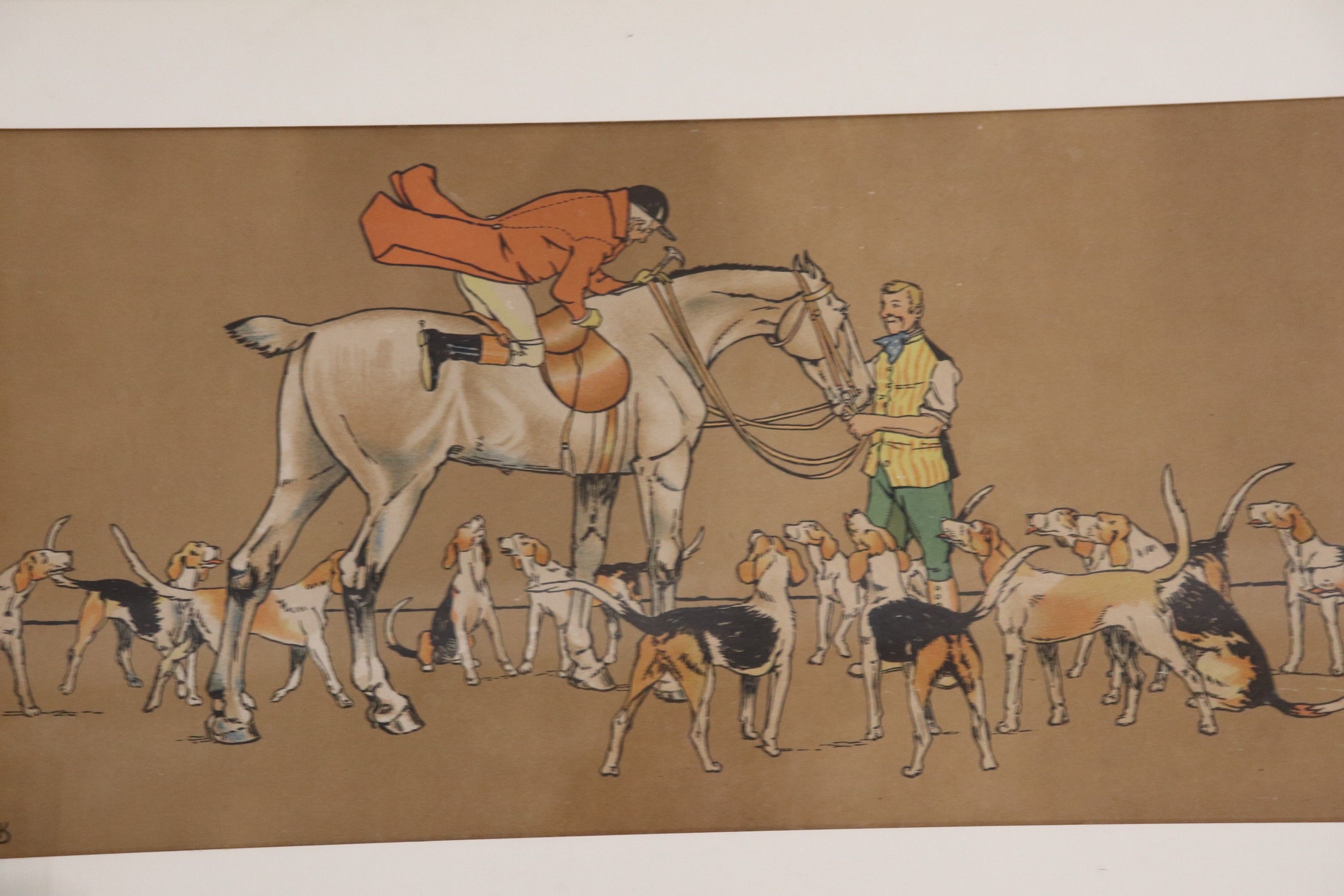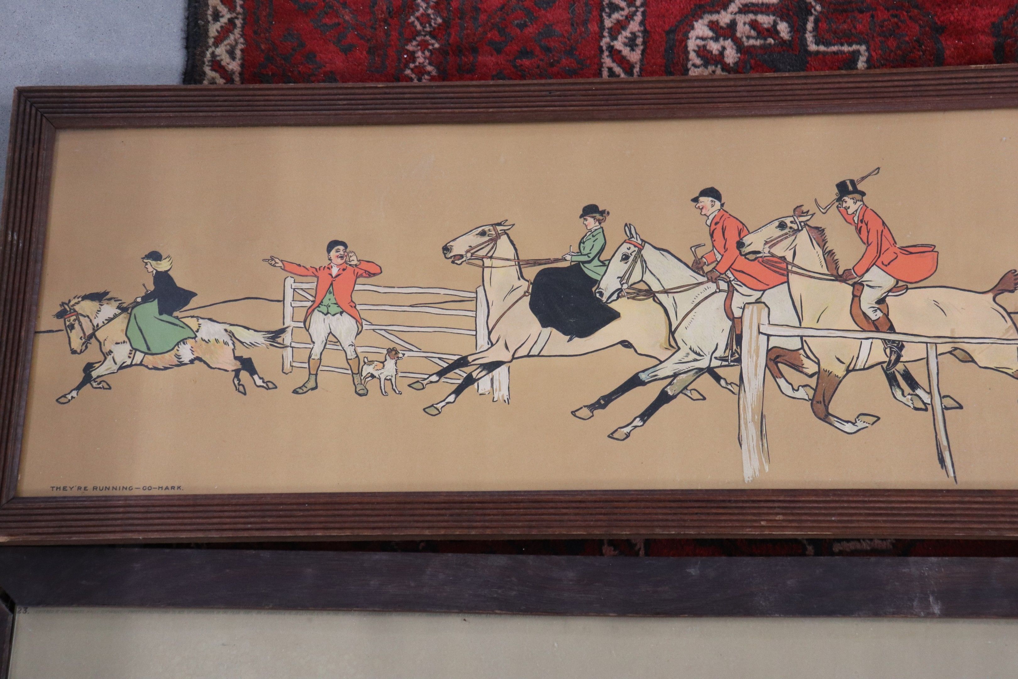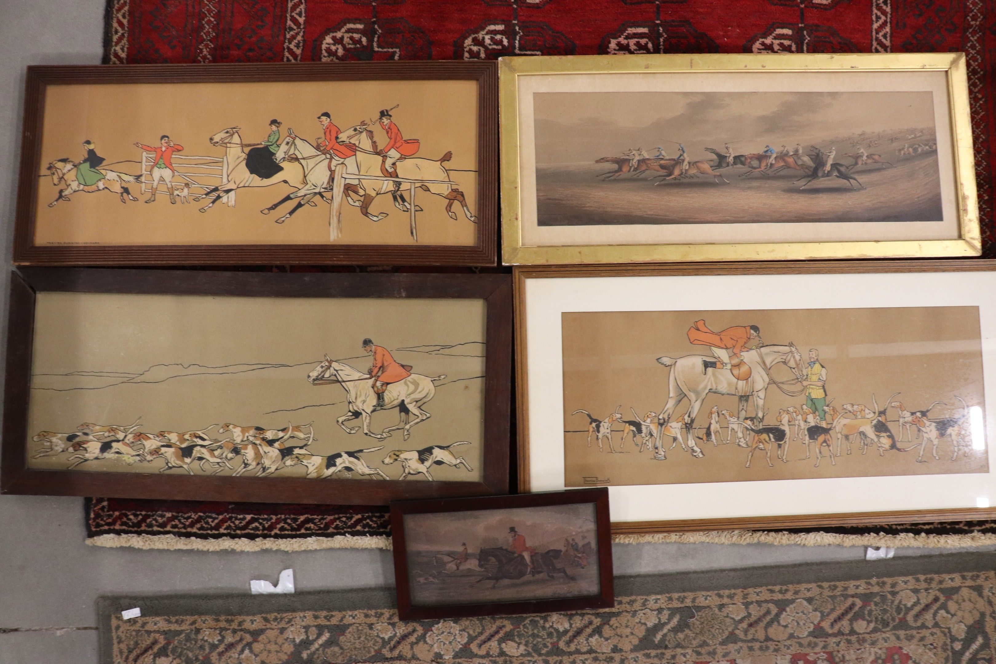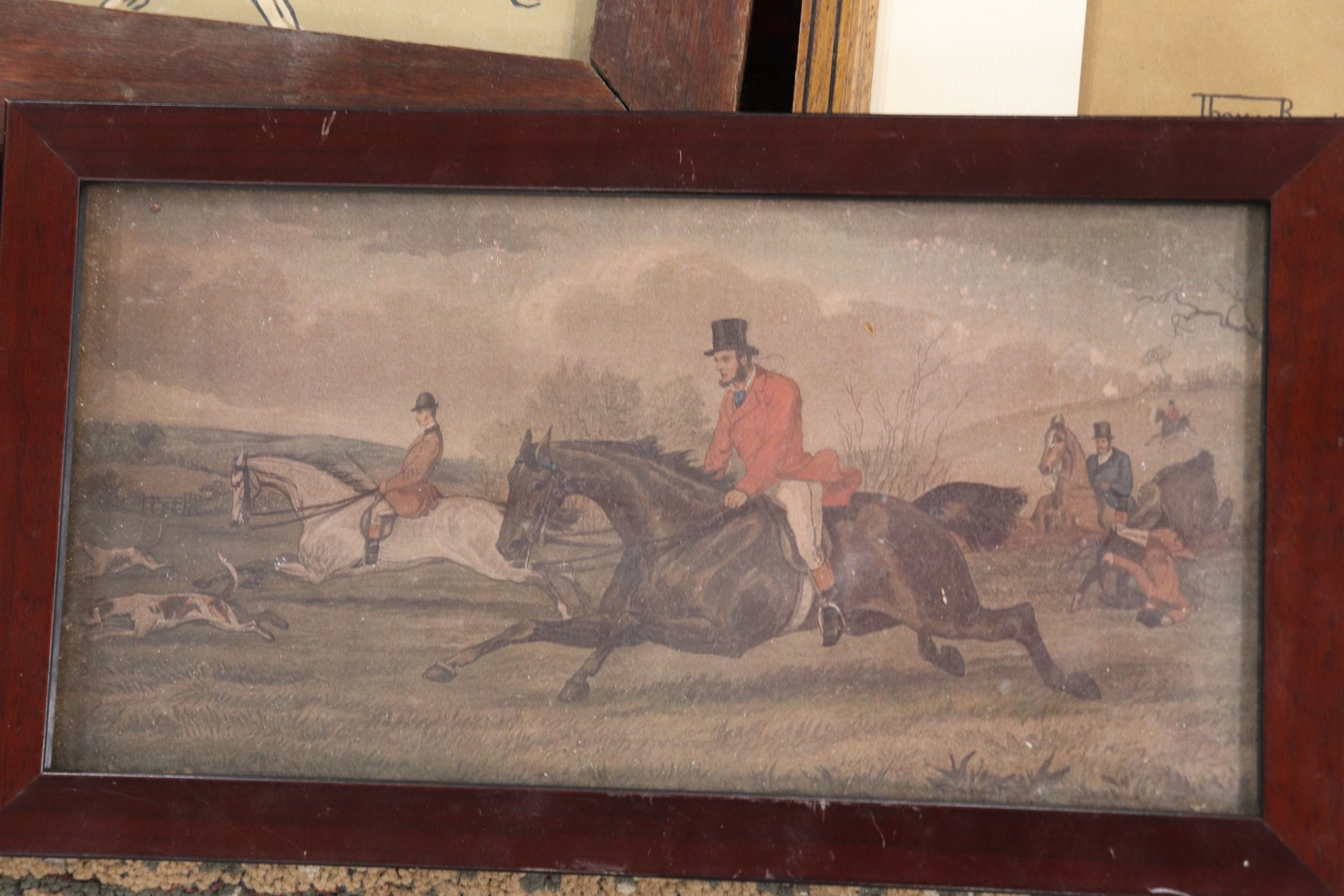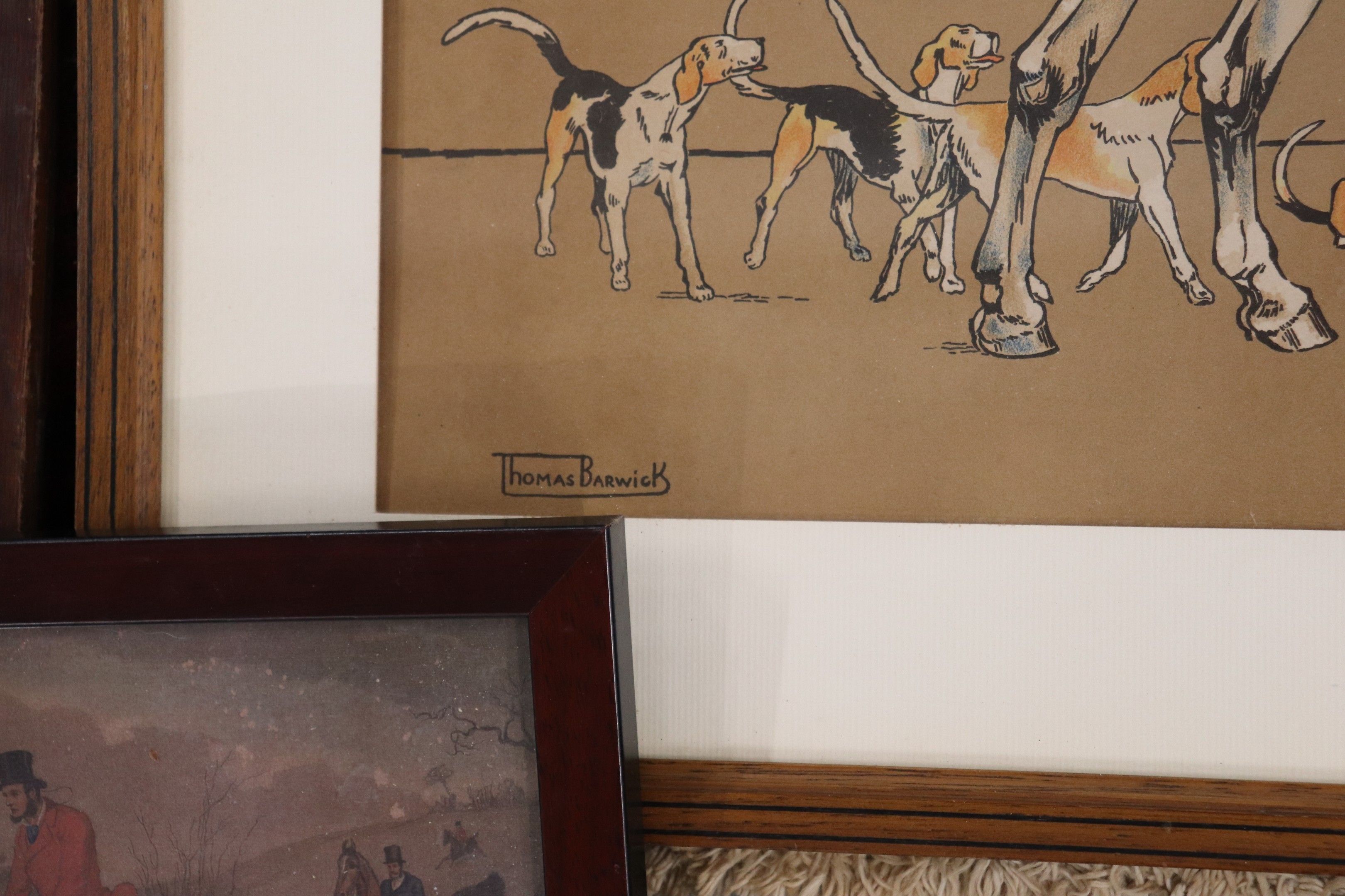 Lot of five English equestrian engravings including Thomas Barwick, framed under glass. From 14 x 28 to 27 x 70 cm