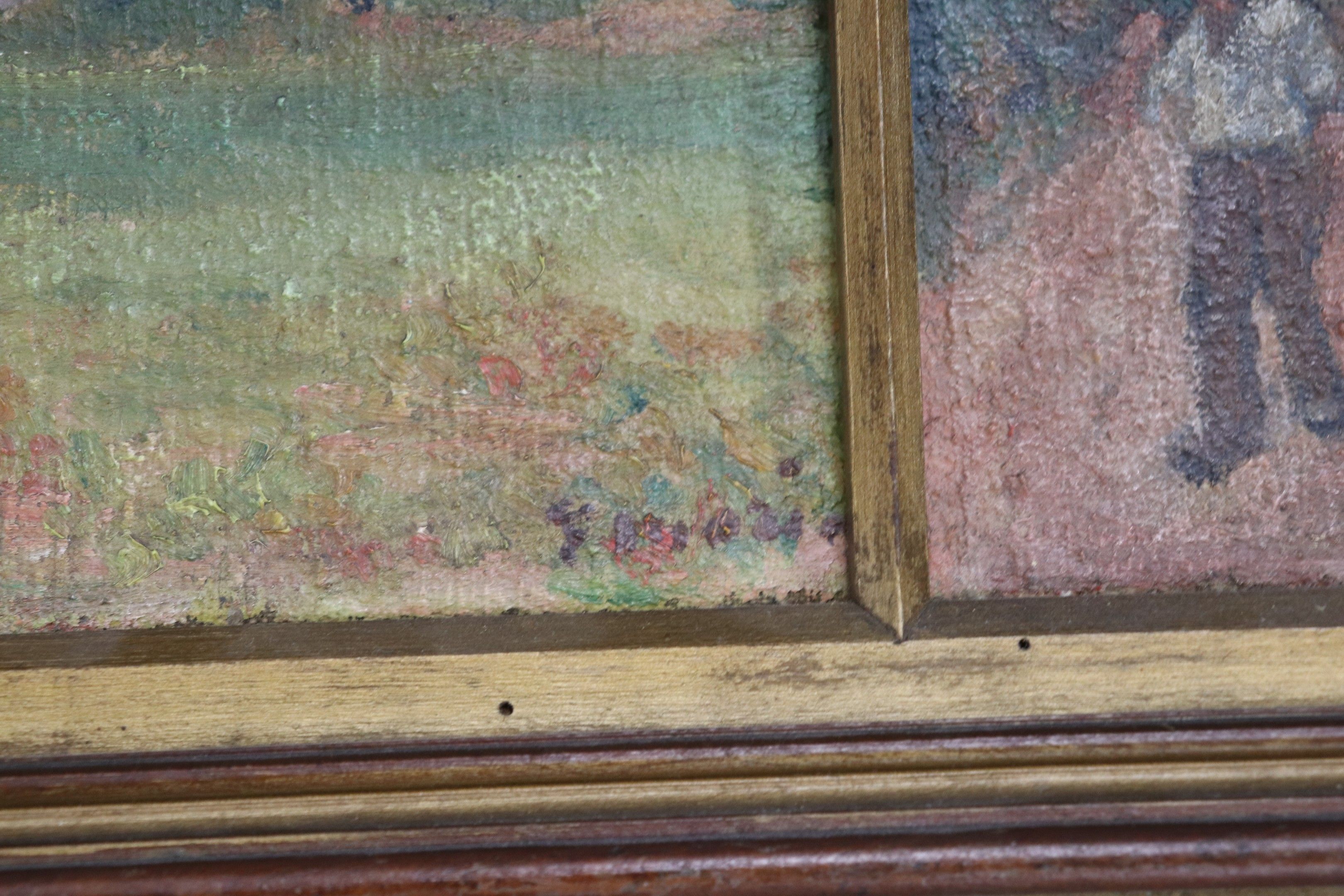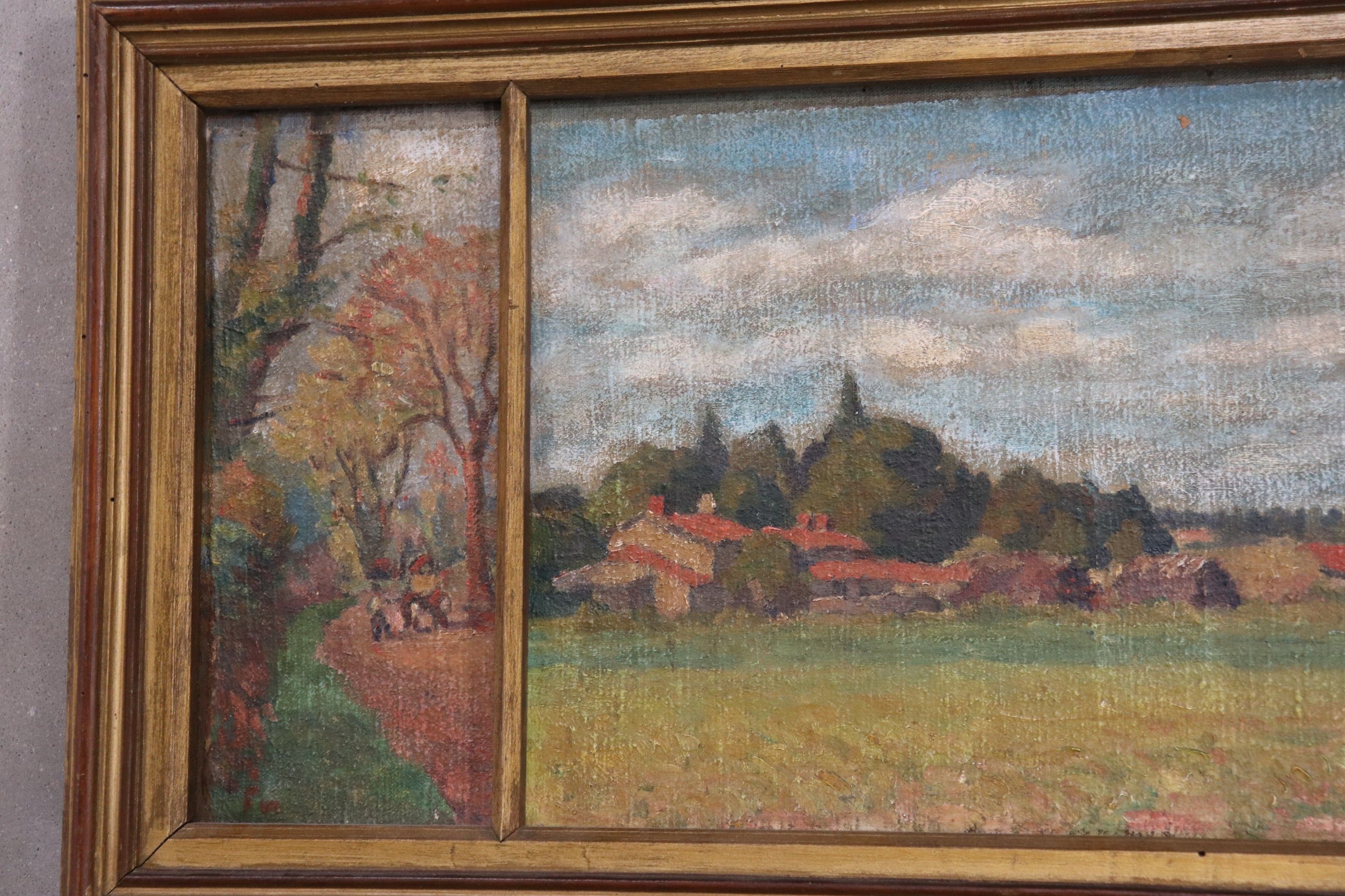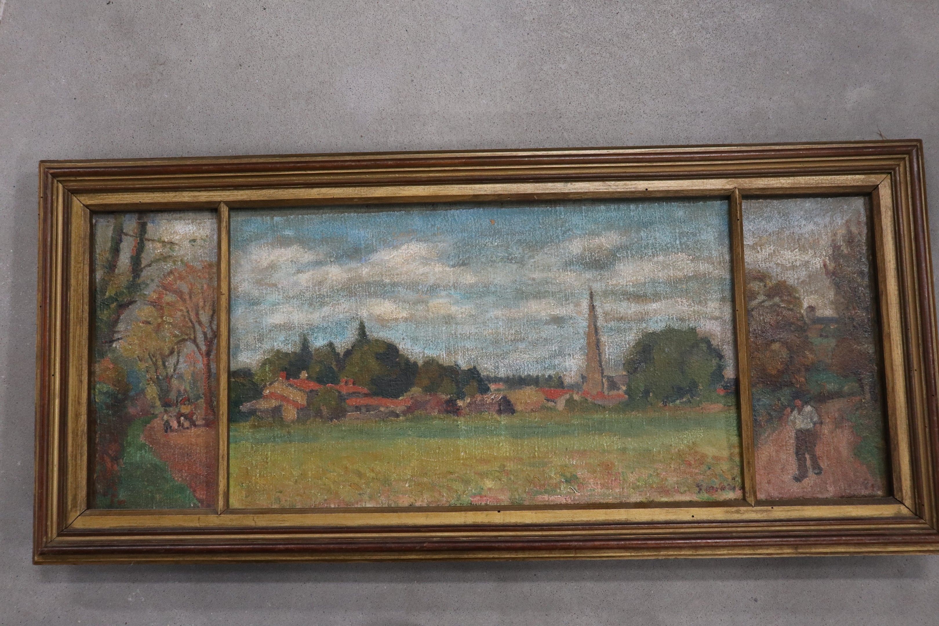 Oil on canvas signed lower right, in a triptych frame. 29 x 75 cm