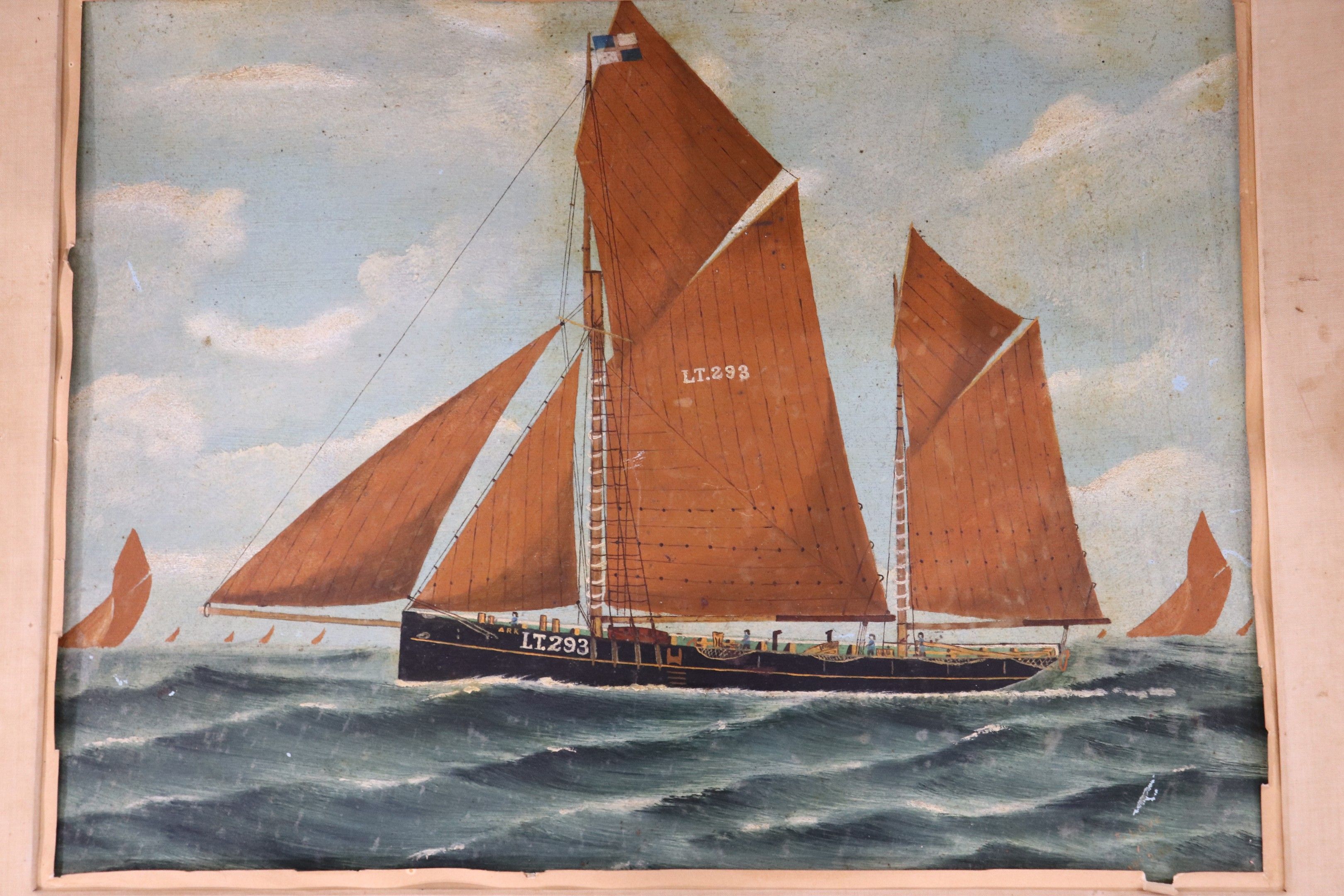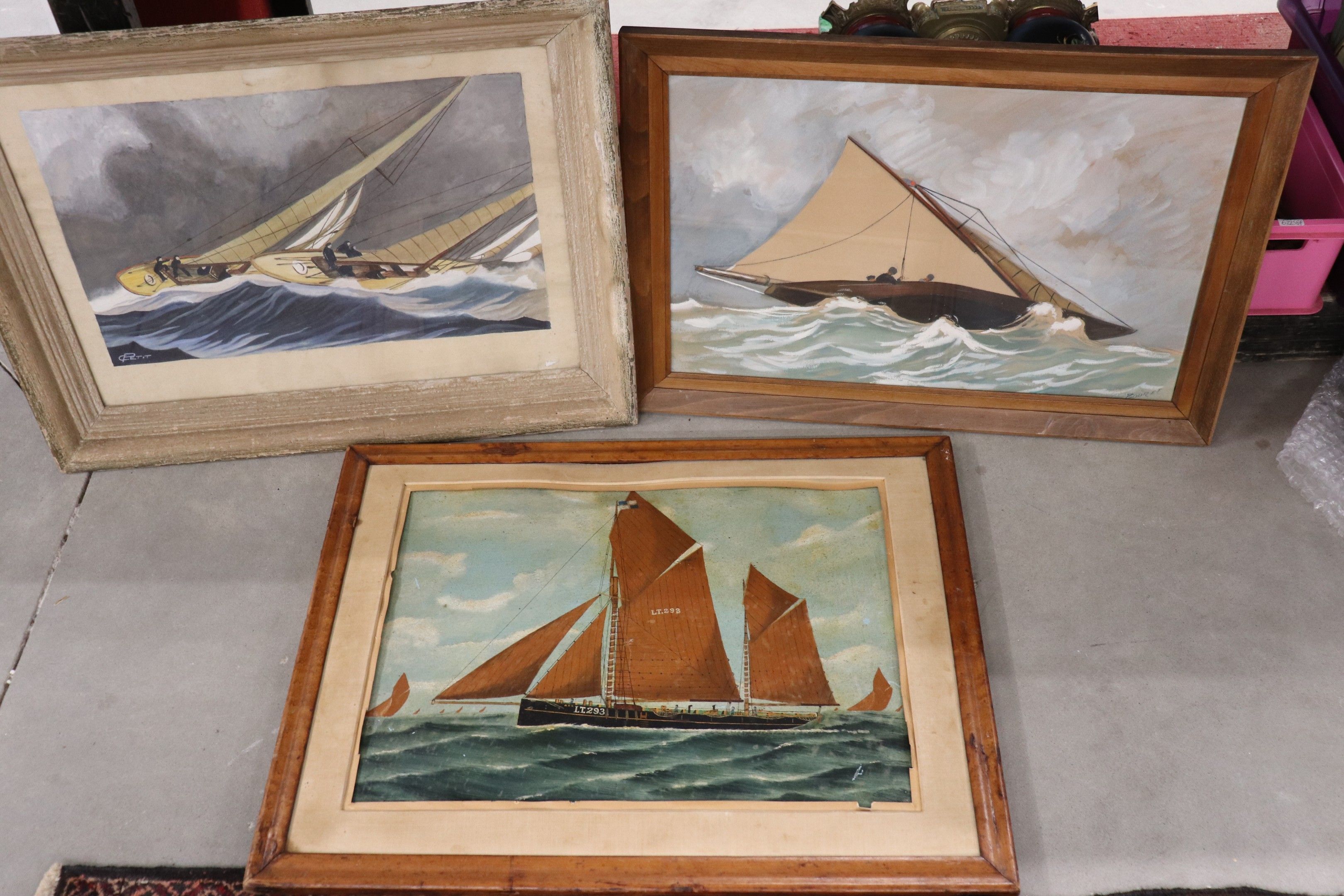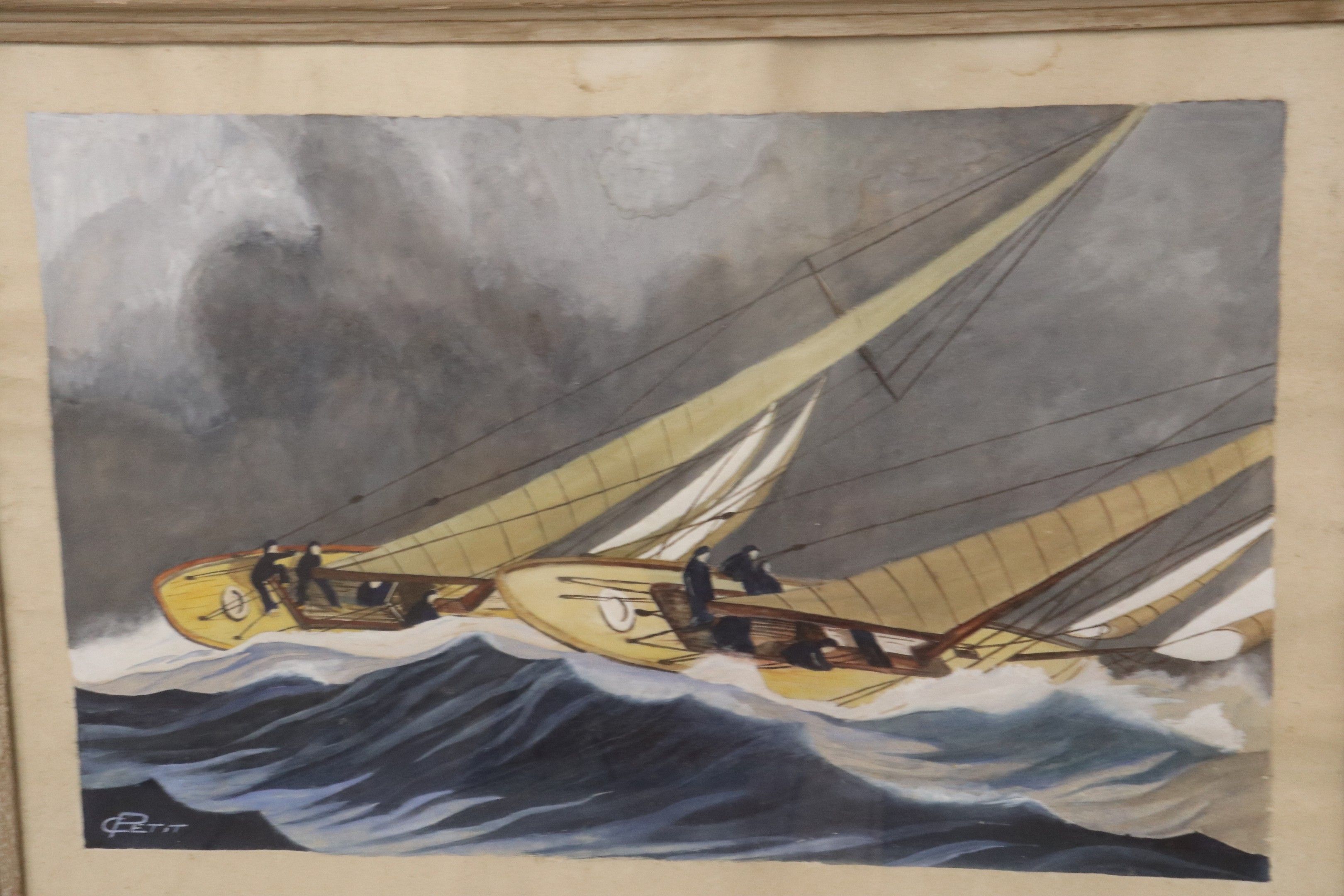 Lot of three XXth century seascapes framed : a gouache signed C. PETIT, a gouache signed BOURET and an oil on panel unsigned.