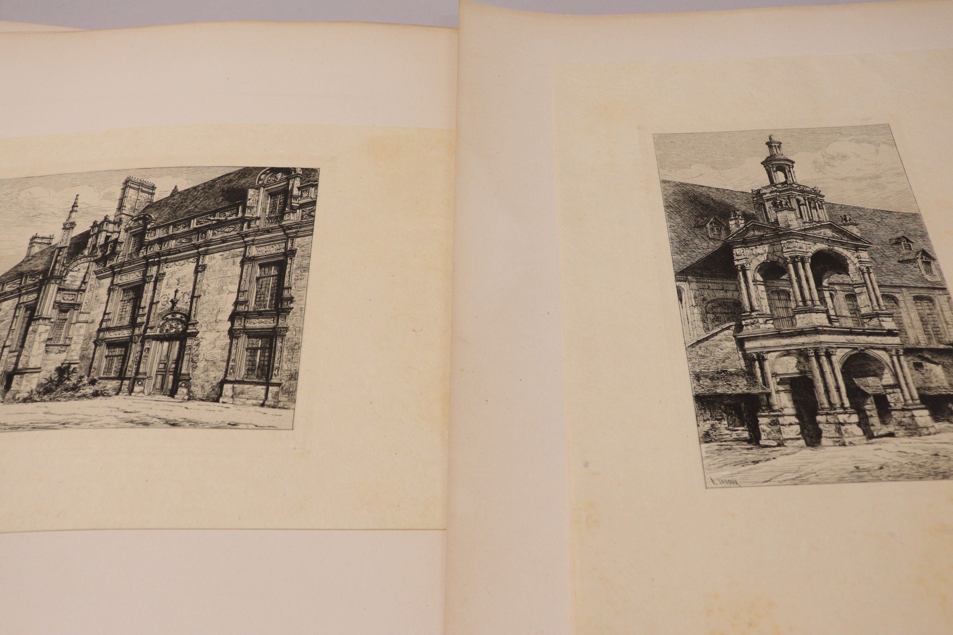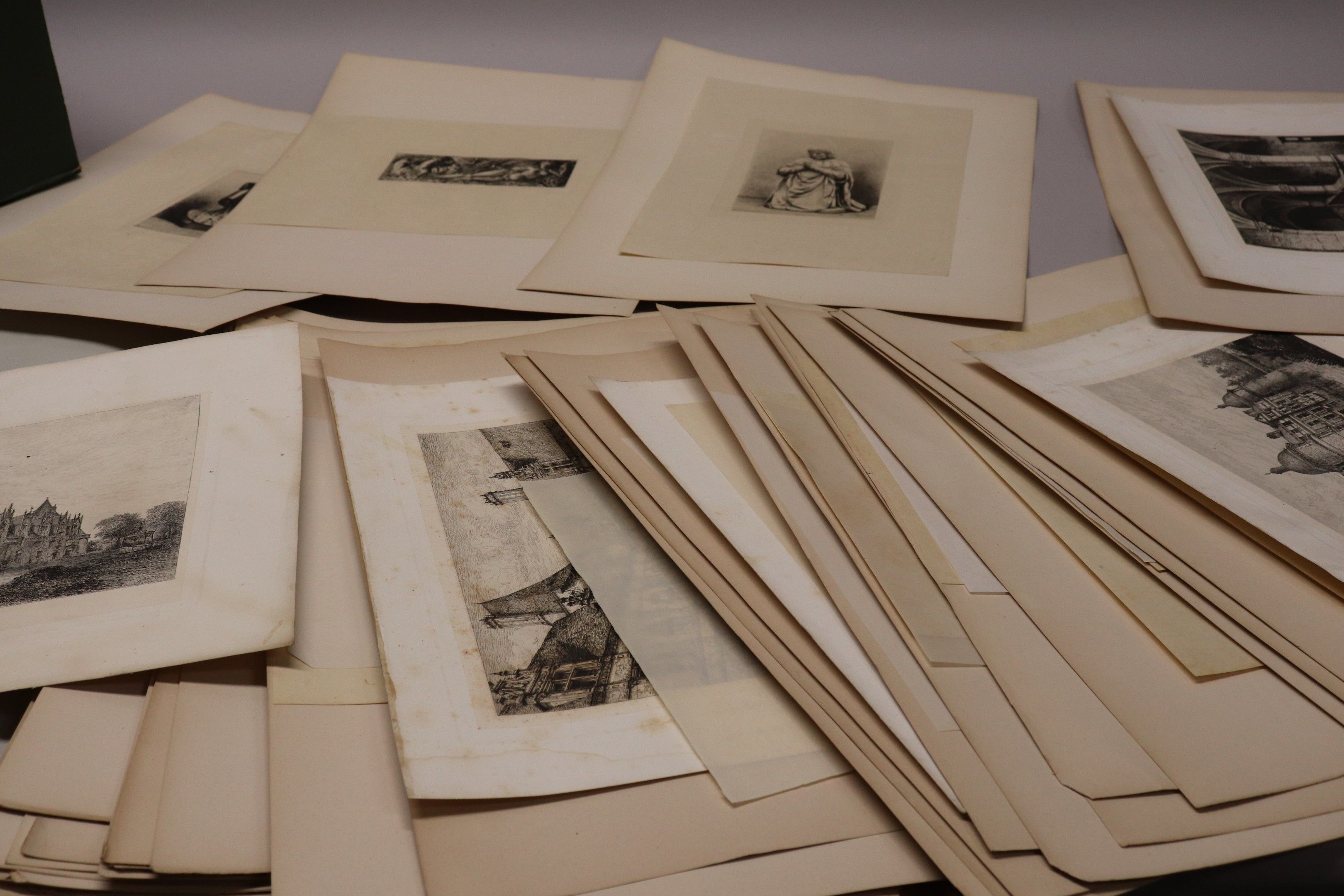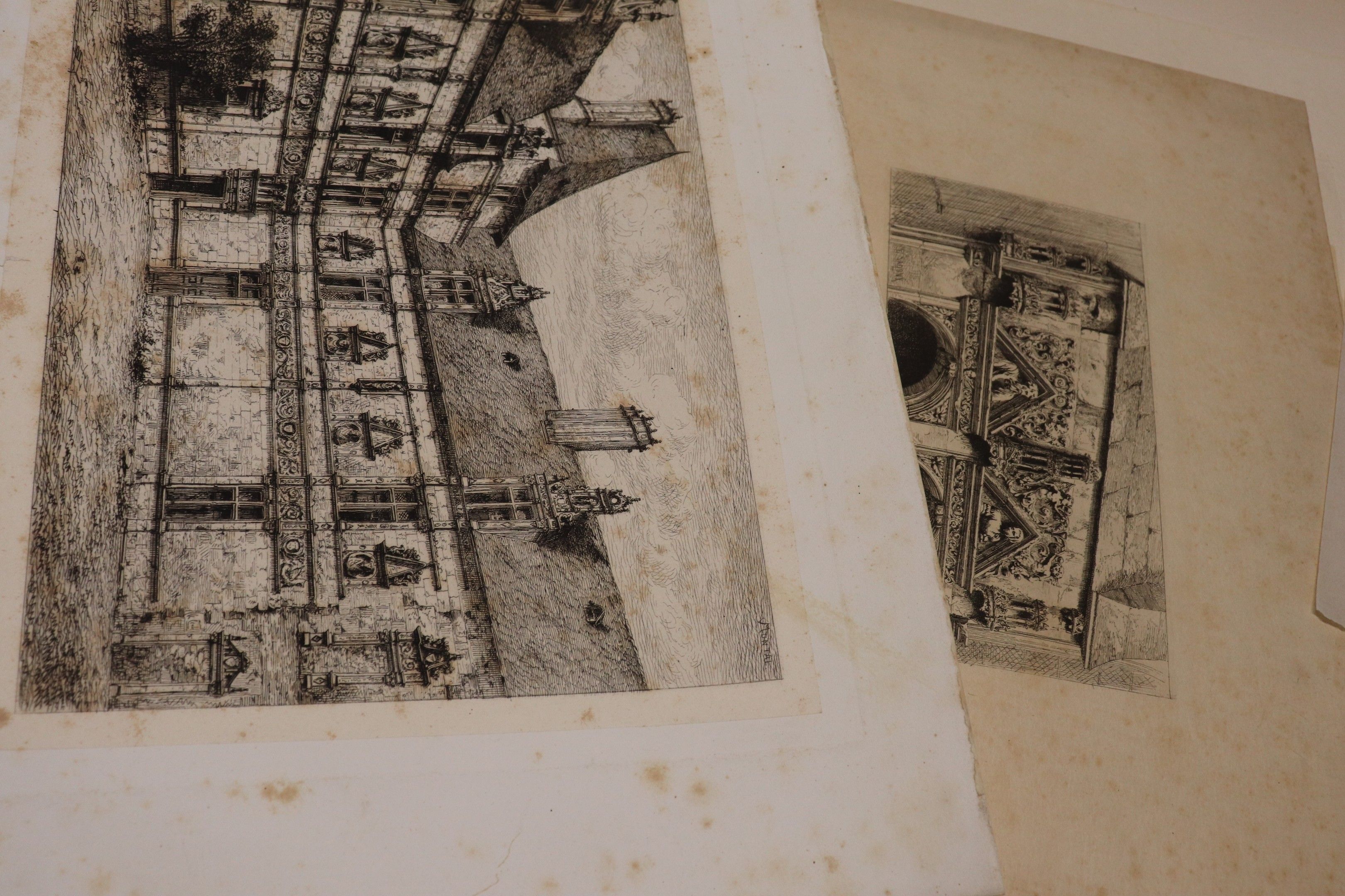 Lot of lithographs and etchings after SADOUX and BOULARD, interior views and architecture. Approximately 100 pieces.