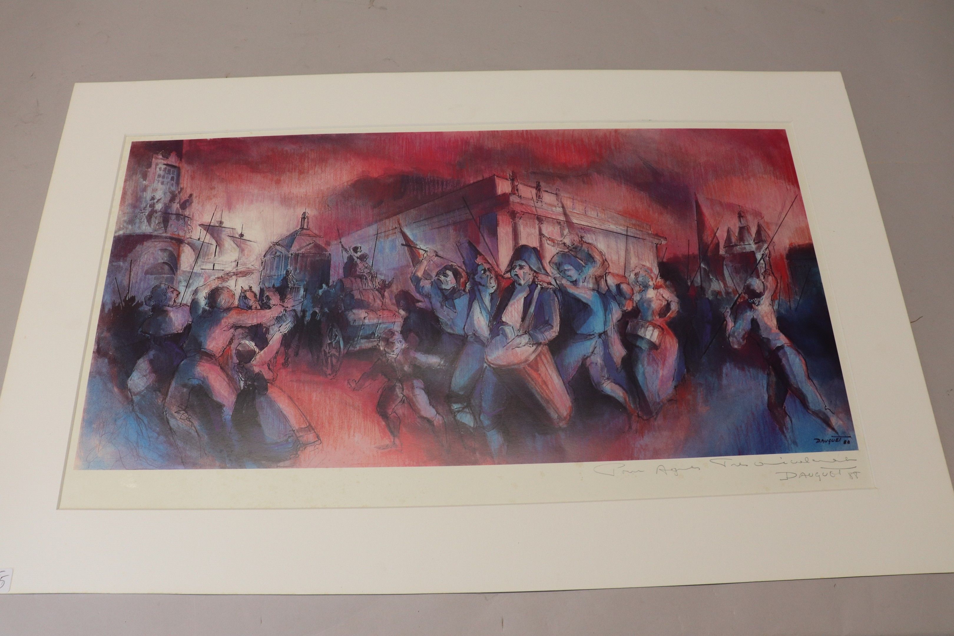 Polychrome reproduction of "Révolution française" after Jean-Claude DAUGUET (1939-2002), with dedication.