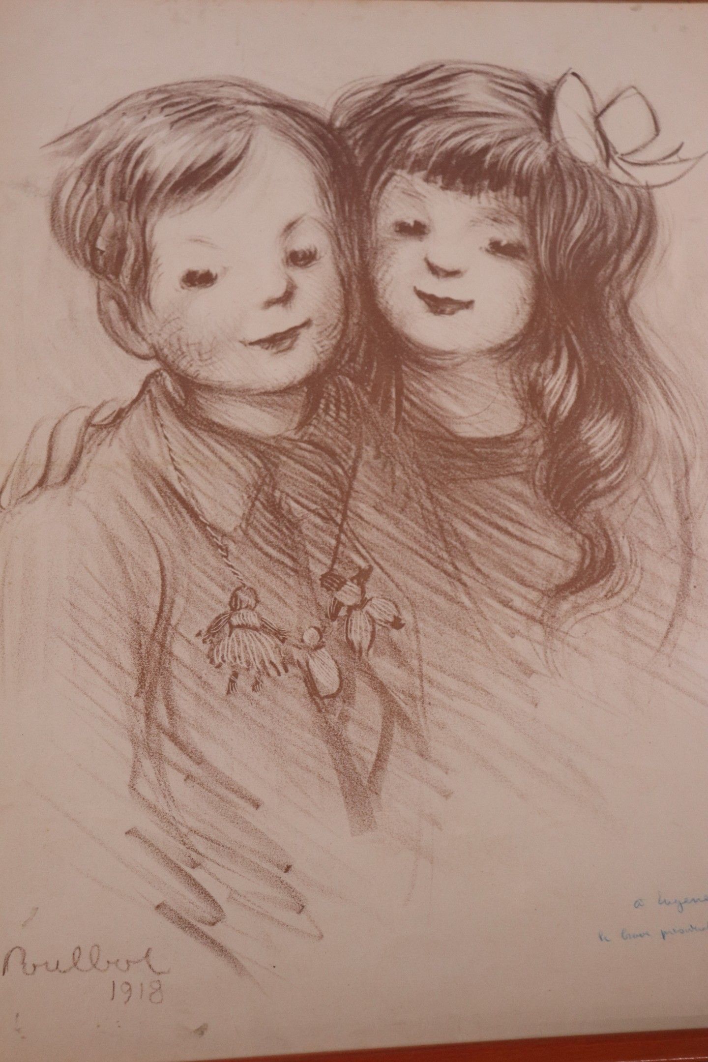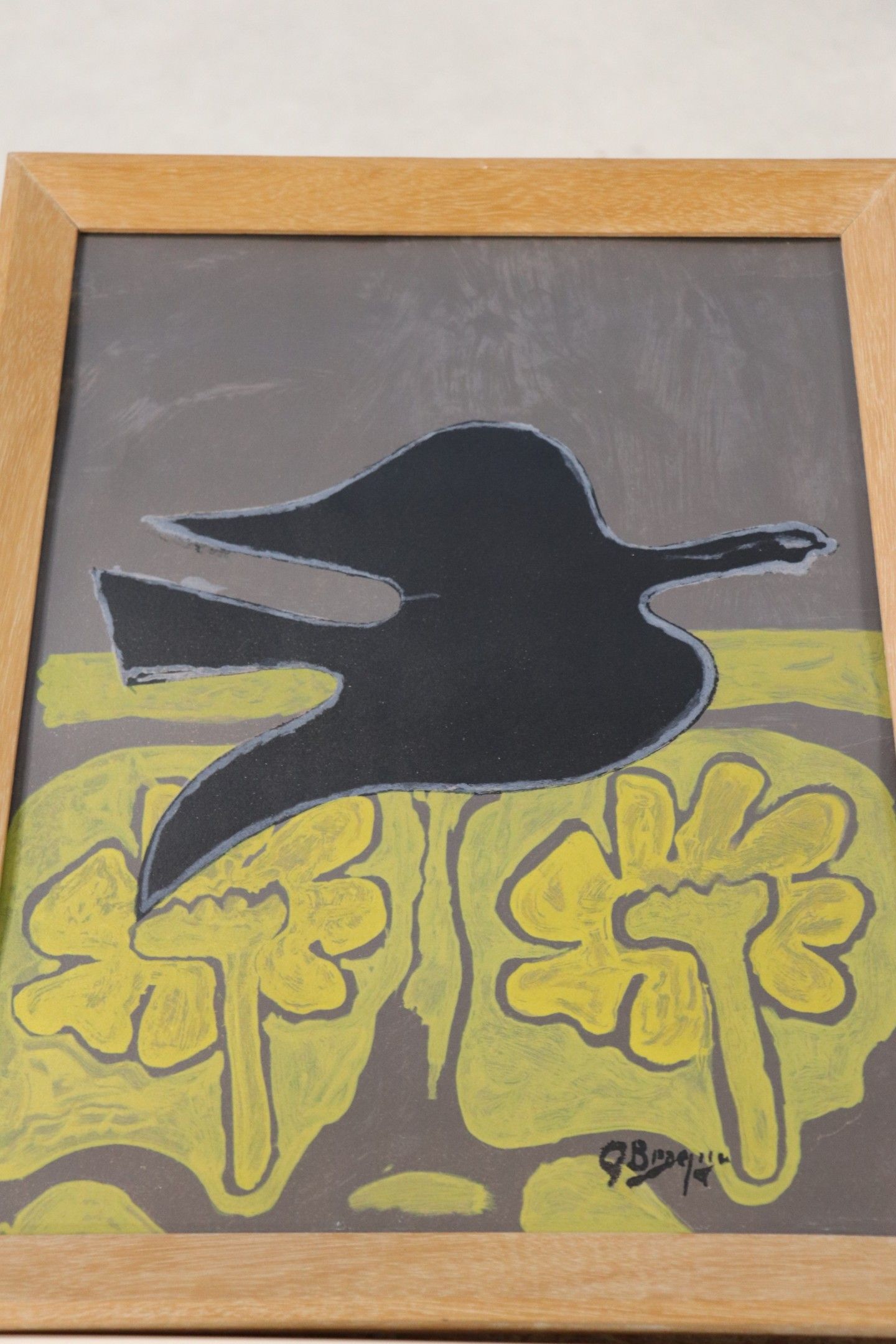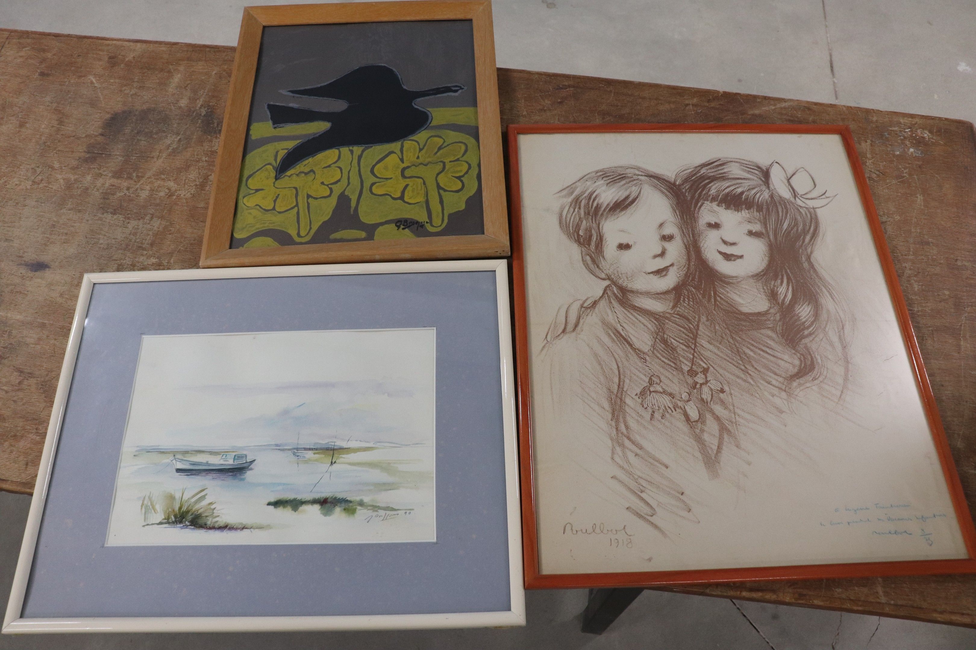 Three frames including a copy after Braque, a watercolour "Vue du Bassin d'Arcachon" and a repro "Enfants". From 24 x 34 cm to 57 x 45 cm