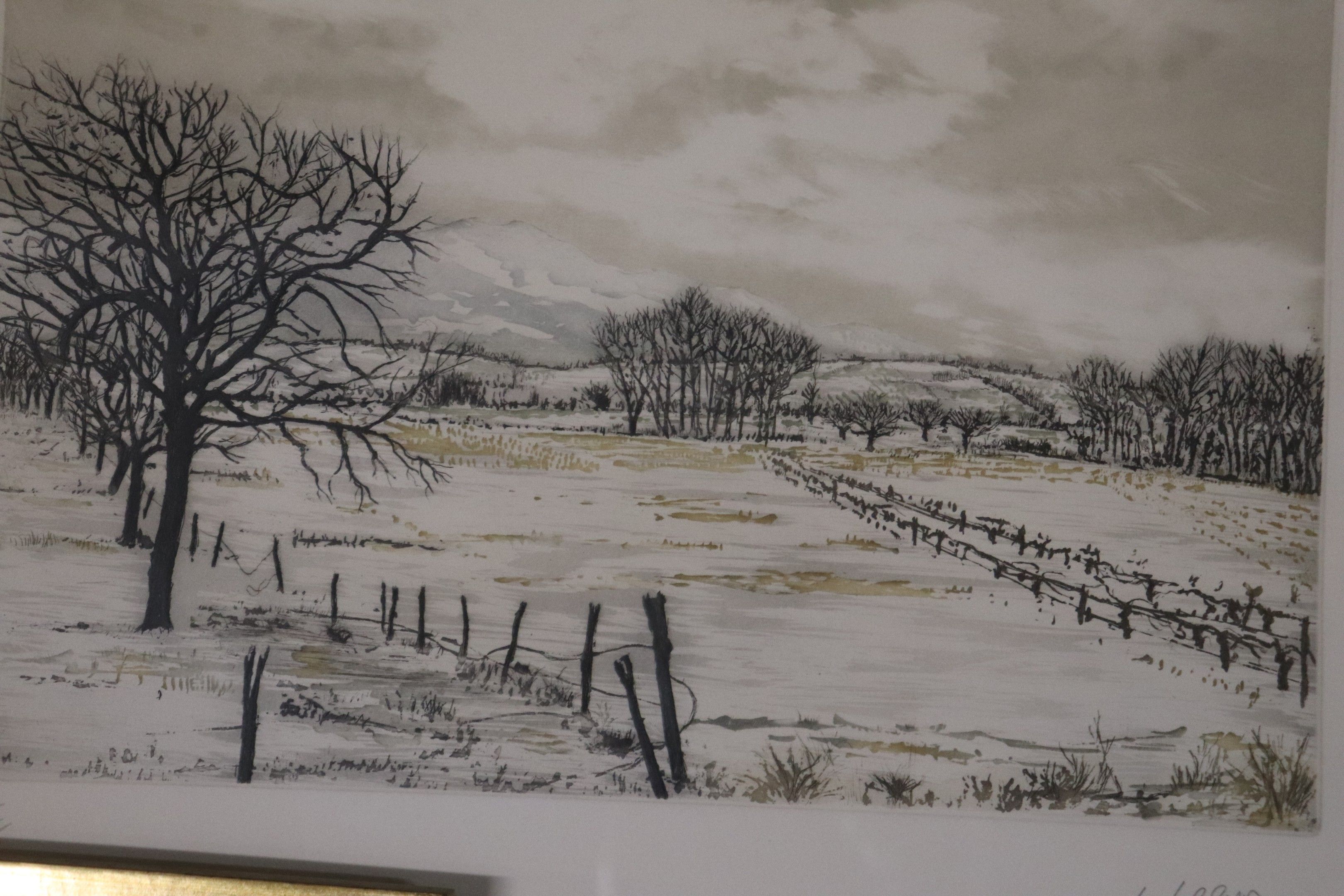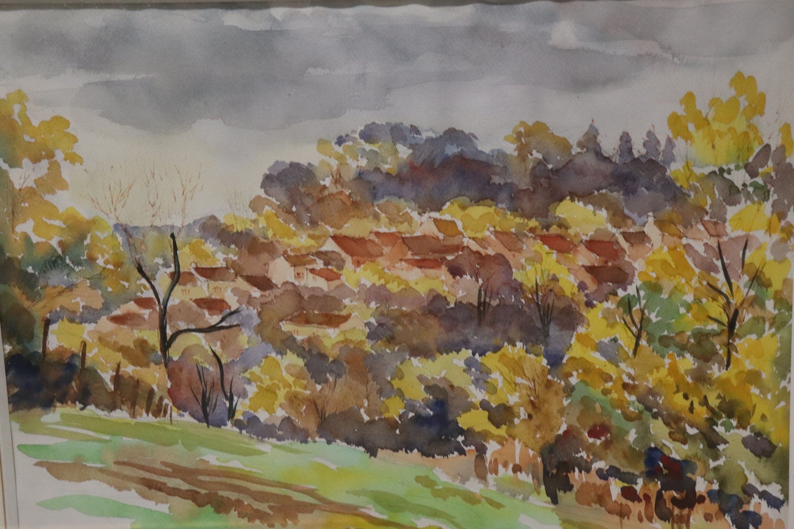 Lot of seven frames: three watercolours including a large pa…