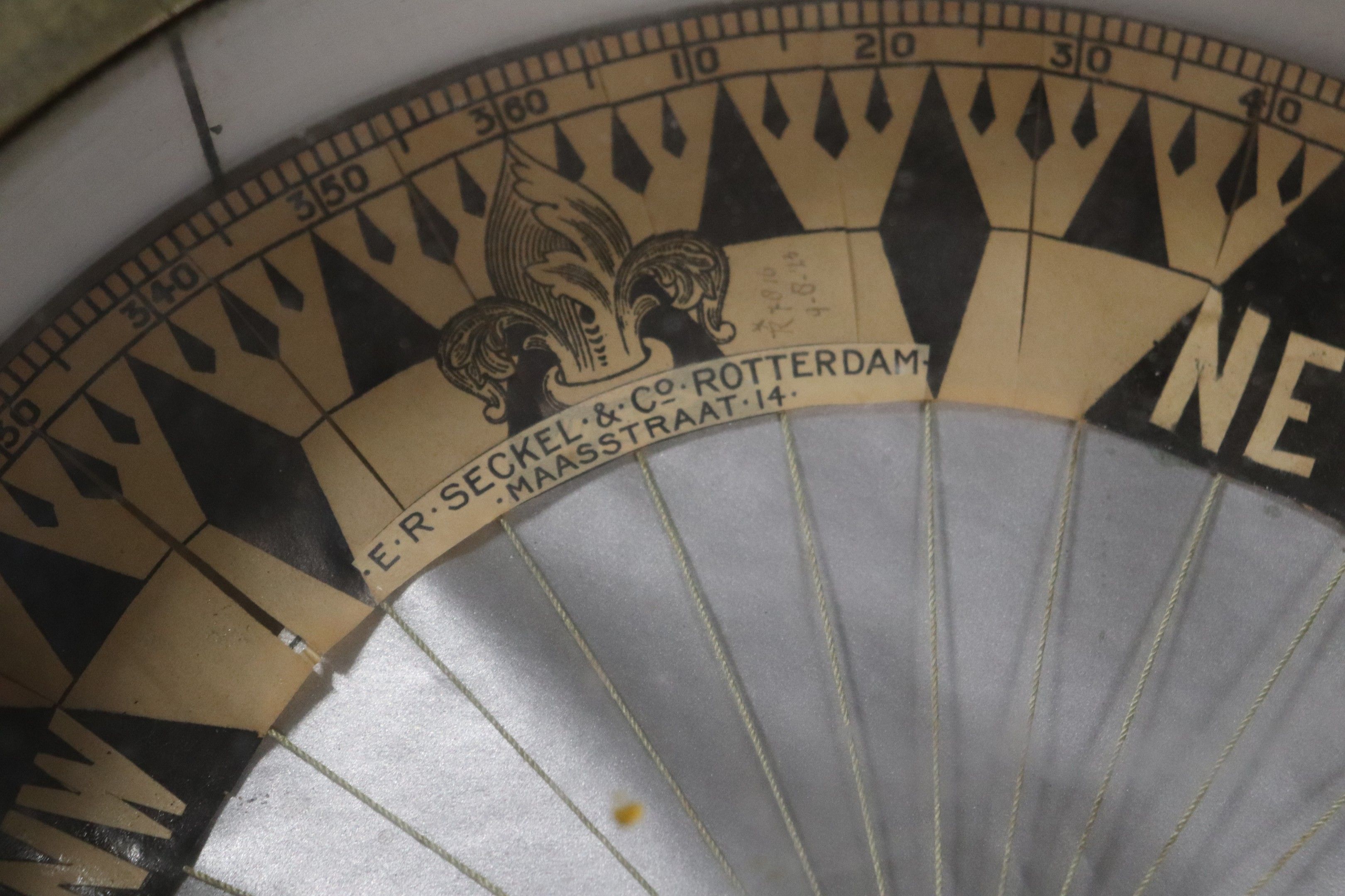 E.R. SECKEL in Rotterdam, marine compass with brass gimbal and housing. Compass diameter 28 cm.