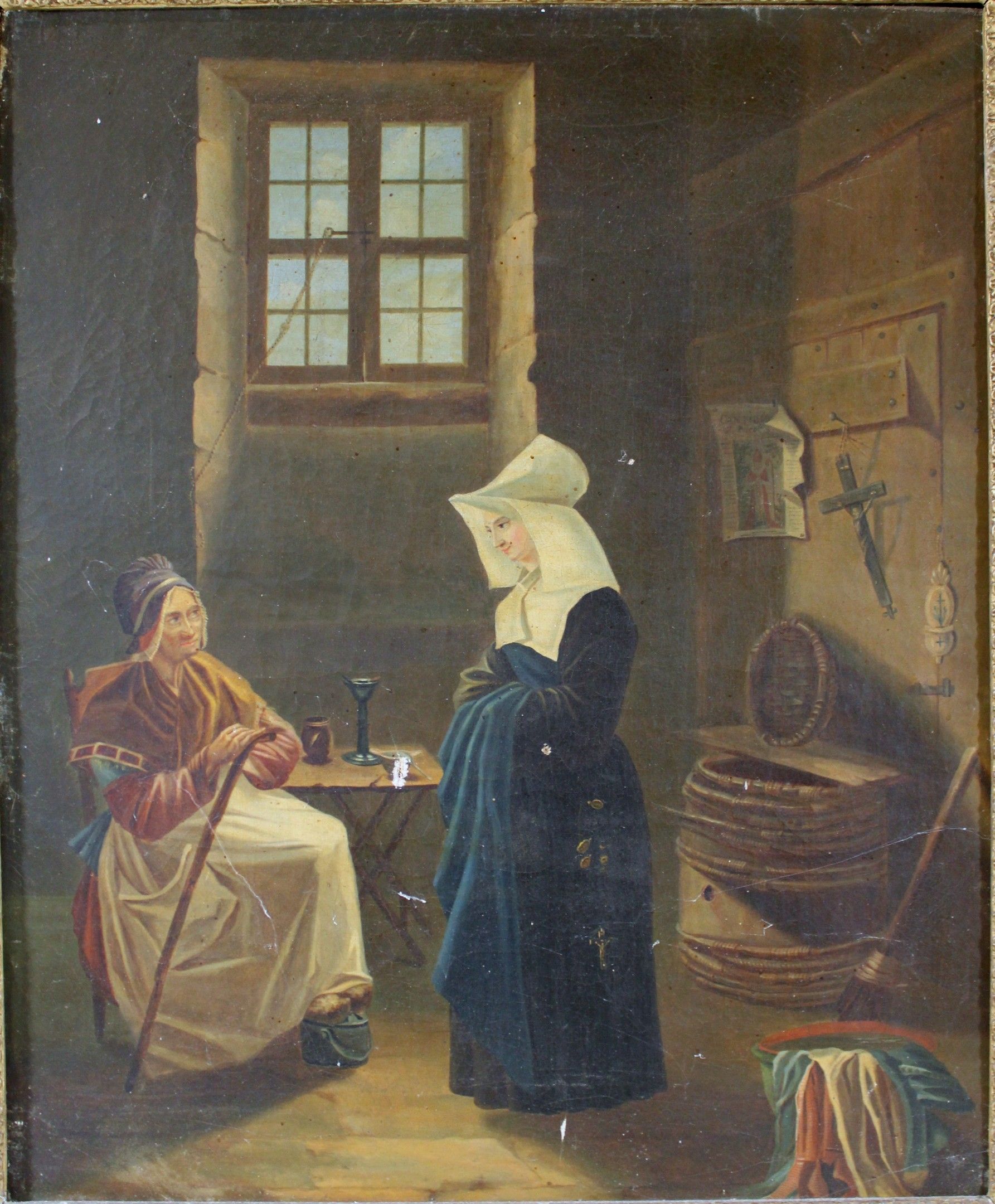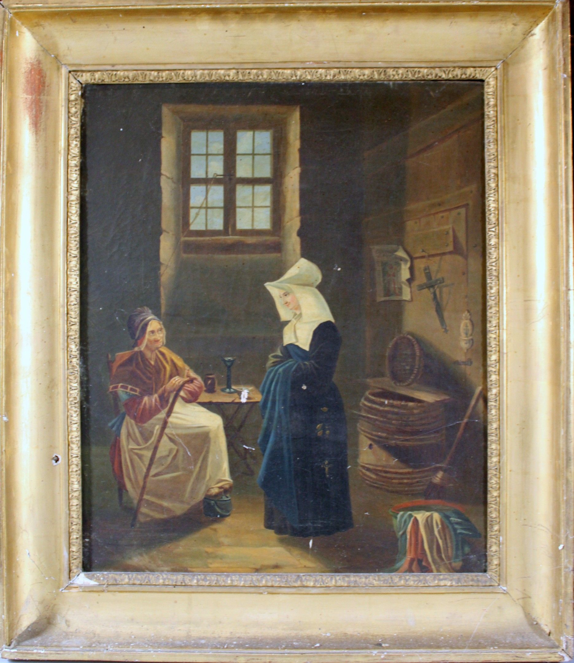 19th century school "Religious scene" Oil on canvas, Dim: 46…