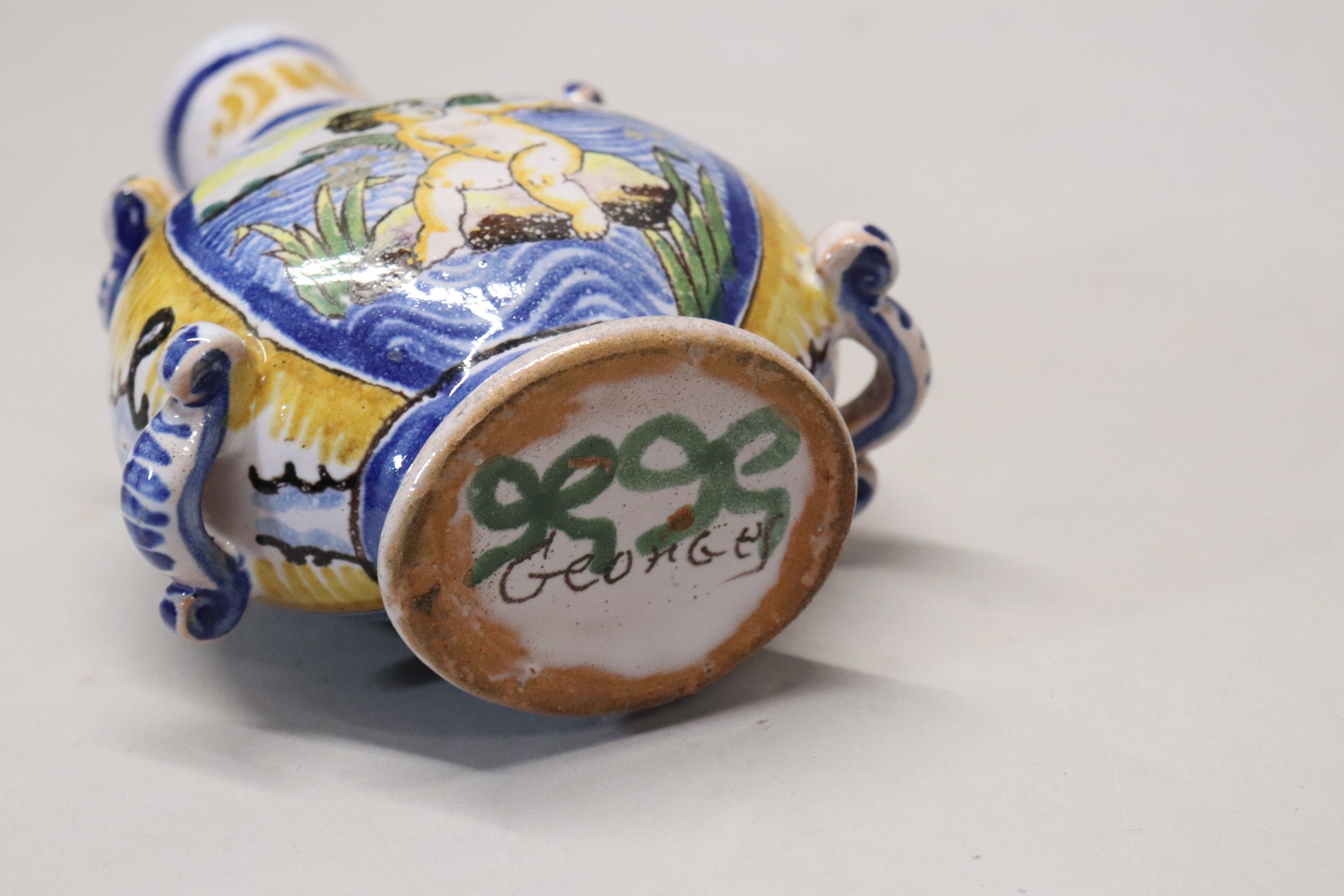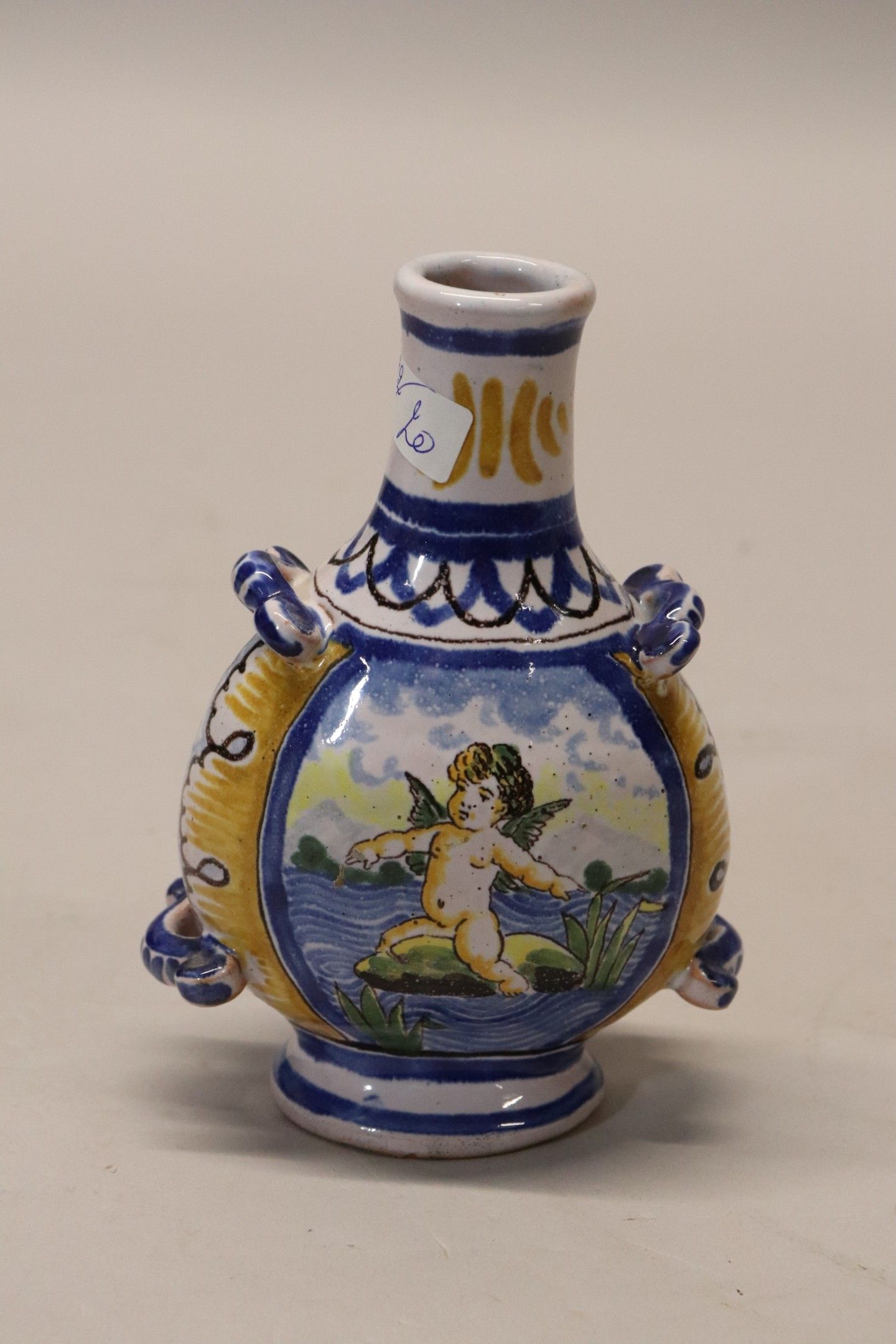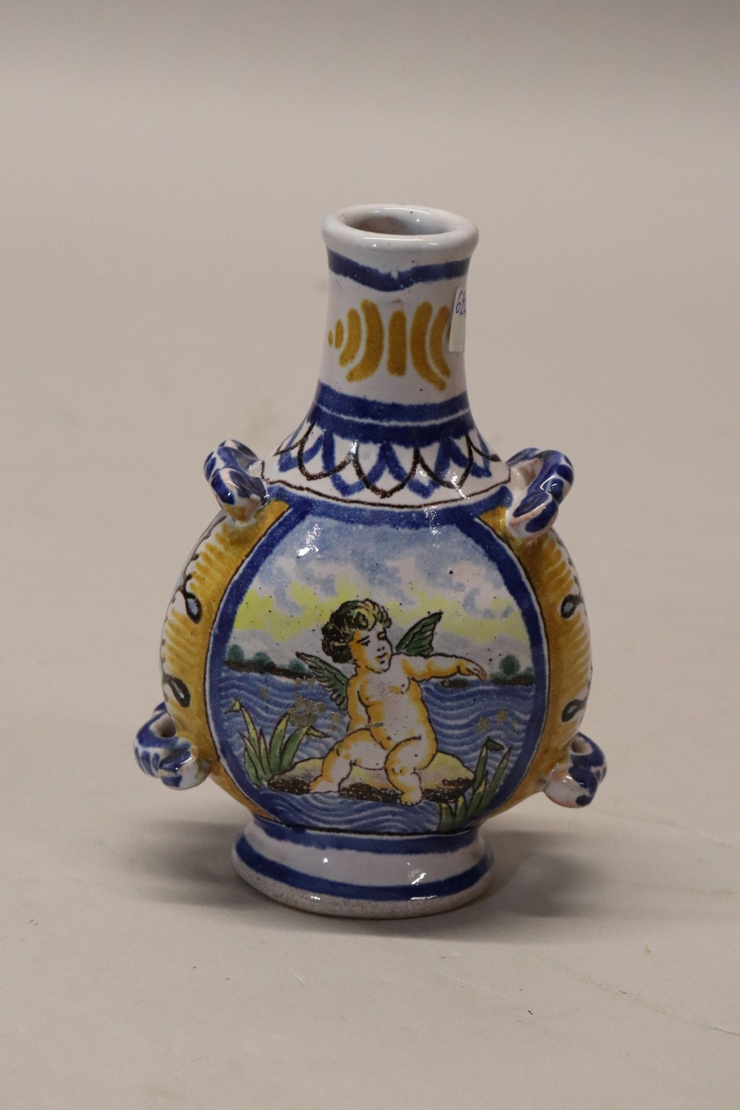Nevers earthenware bottle with cherub decoration. Height 14.5 cm
