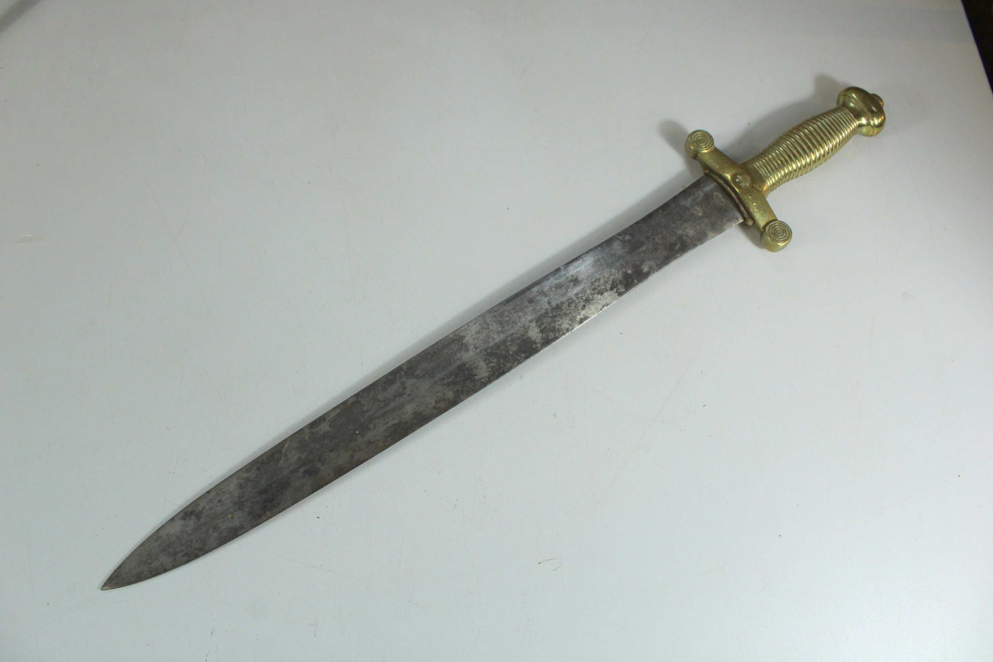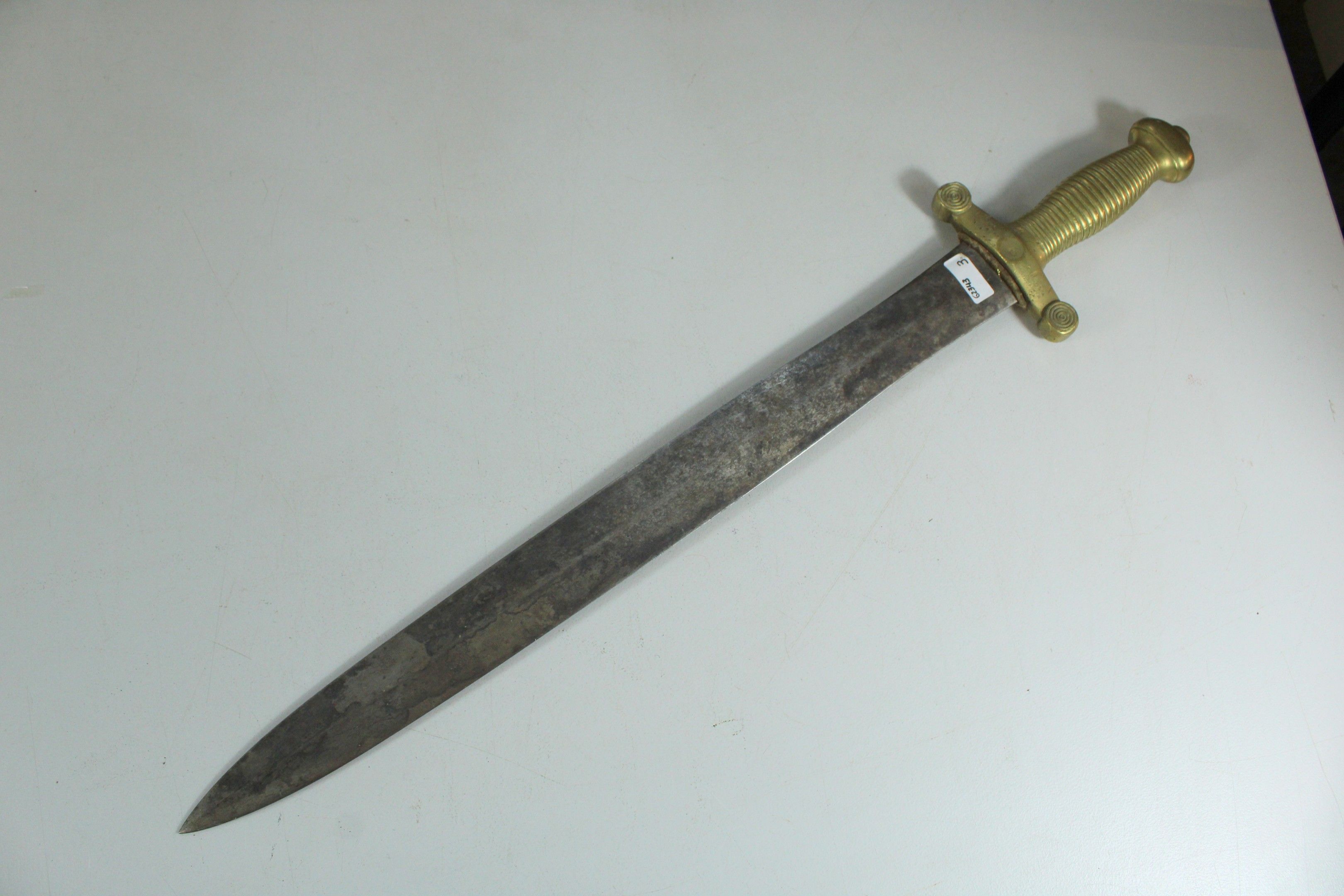 Infantry sword model 1831, 485 mm hallmarked blade, signed Talabot Paris, leather tie, brass handle with twenty-six strands, SF, wear, oxidation, missing, TL 635 mm, France first half of the 19th century.