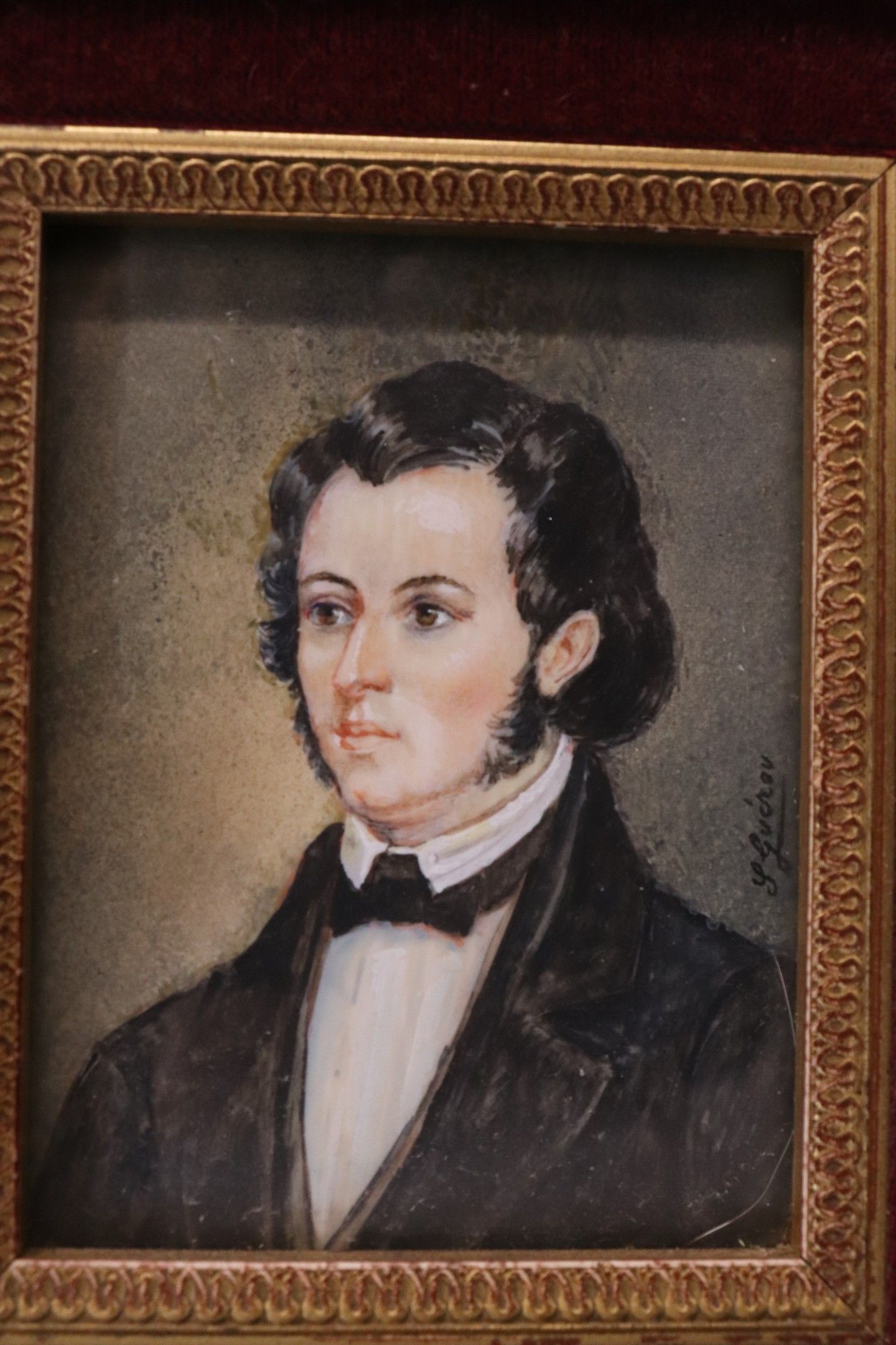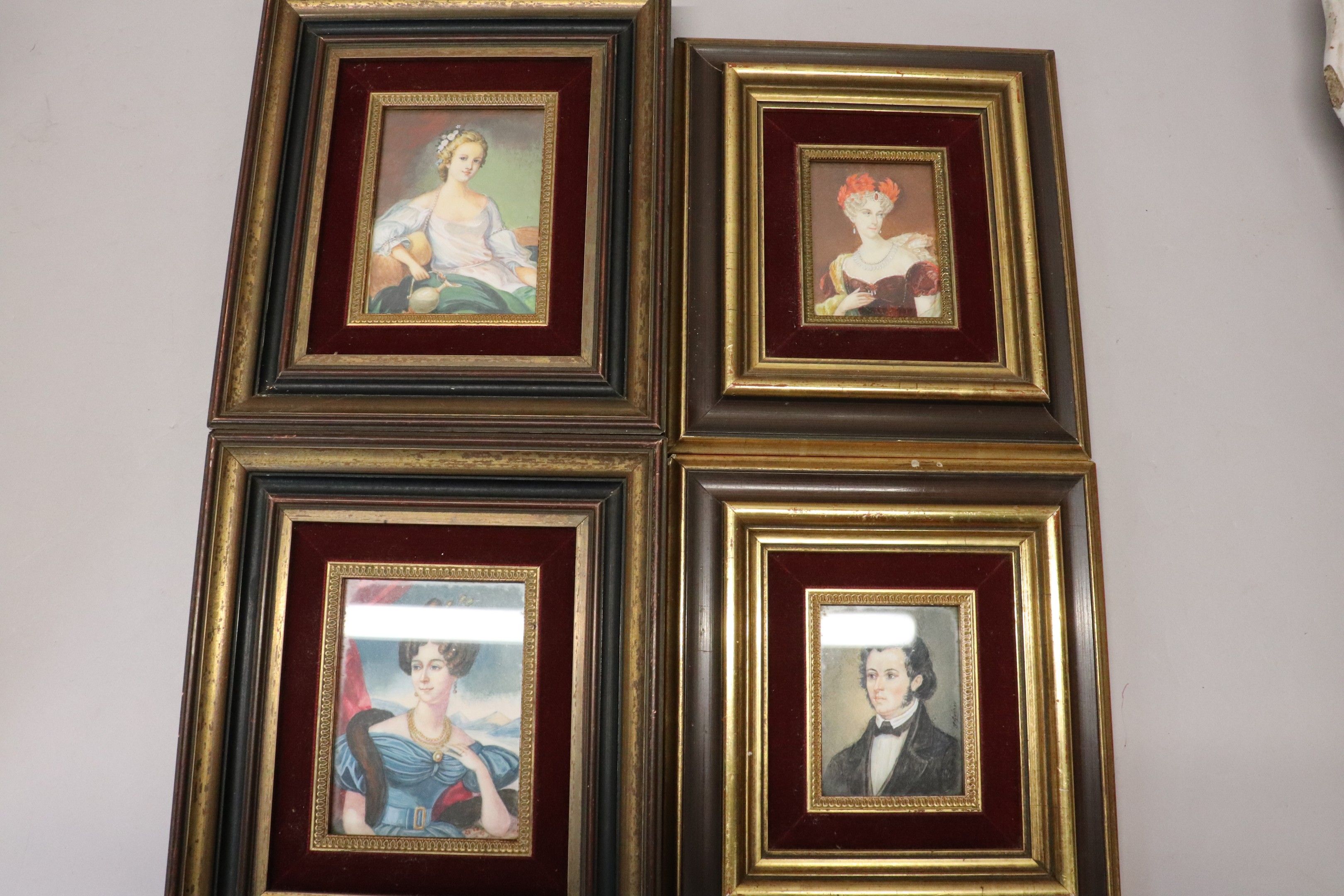 Four modern miniature "Portraits", one pair signed Guérou, t…