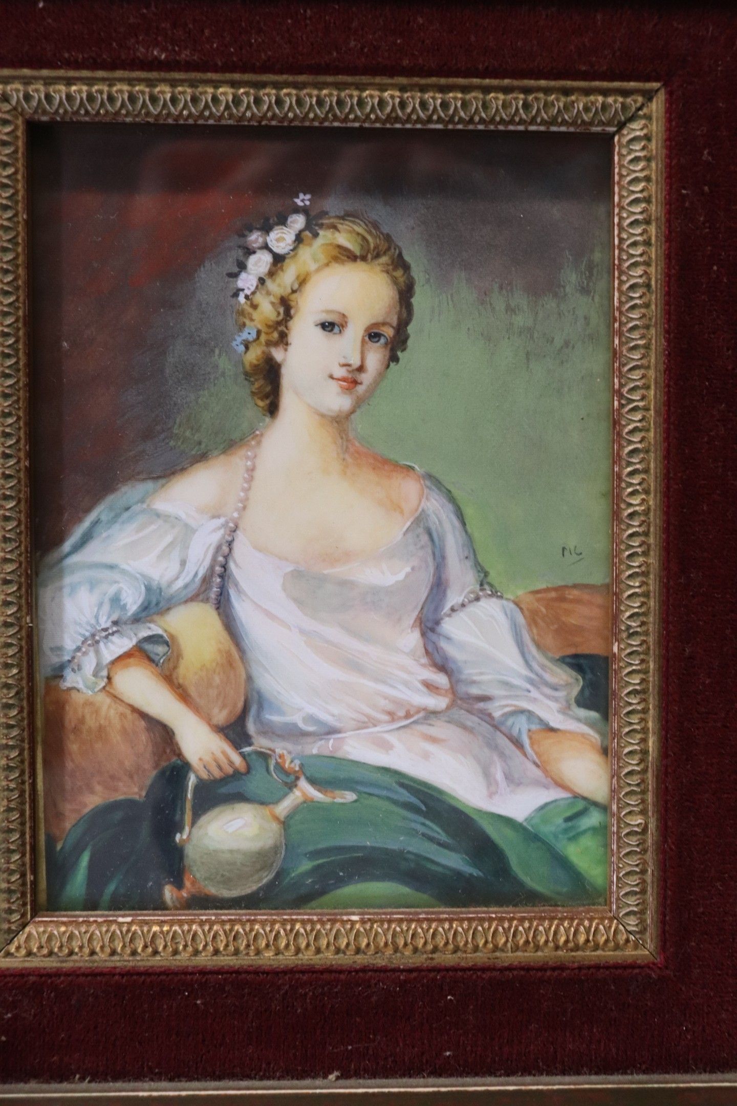 Four modern miniature "Portraits", one pair signed Guérou, the other monogrammed MC. 8 x 7 and 11 x 99 cm
