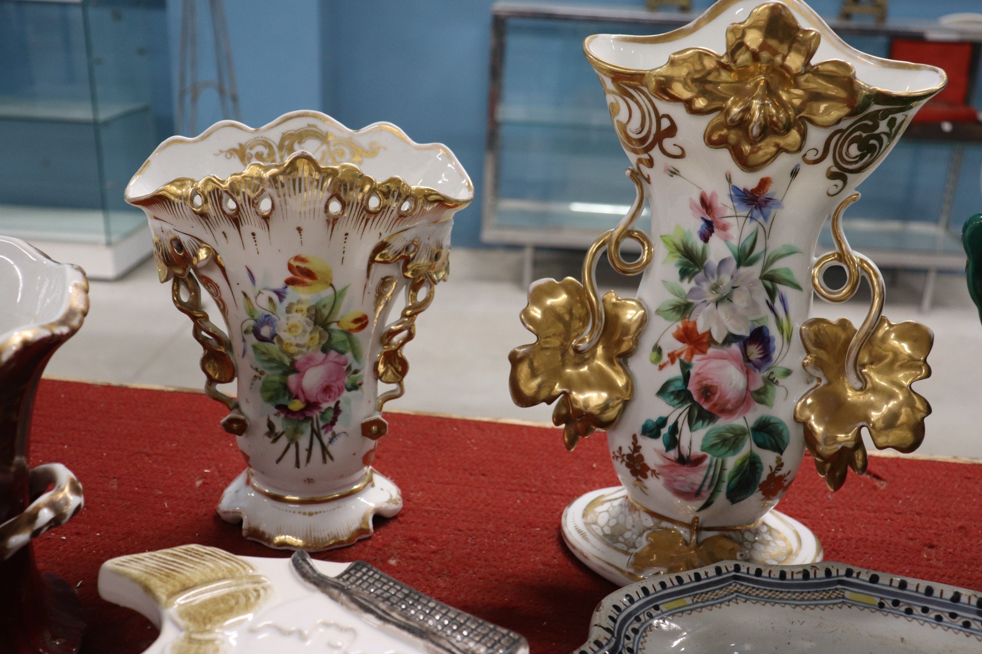Lot of various ceramics: two Paris porcelain bridal vases, t…