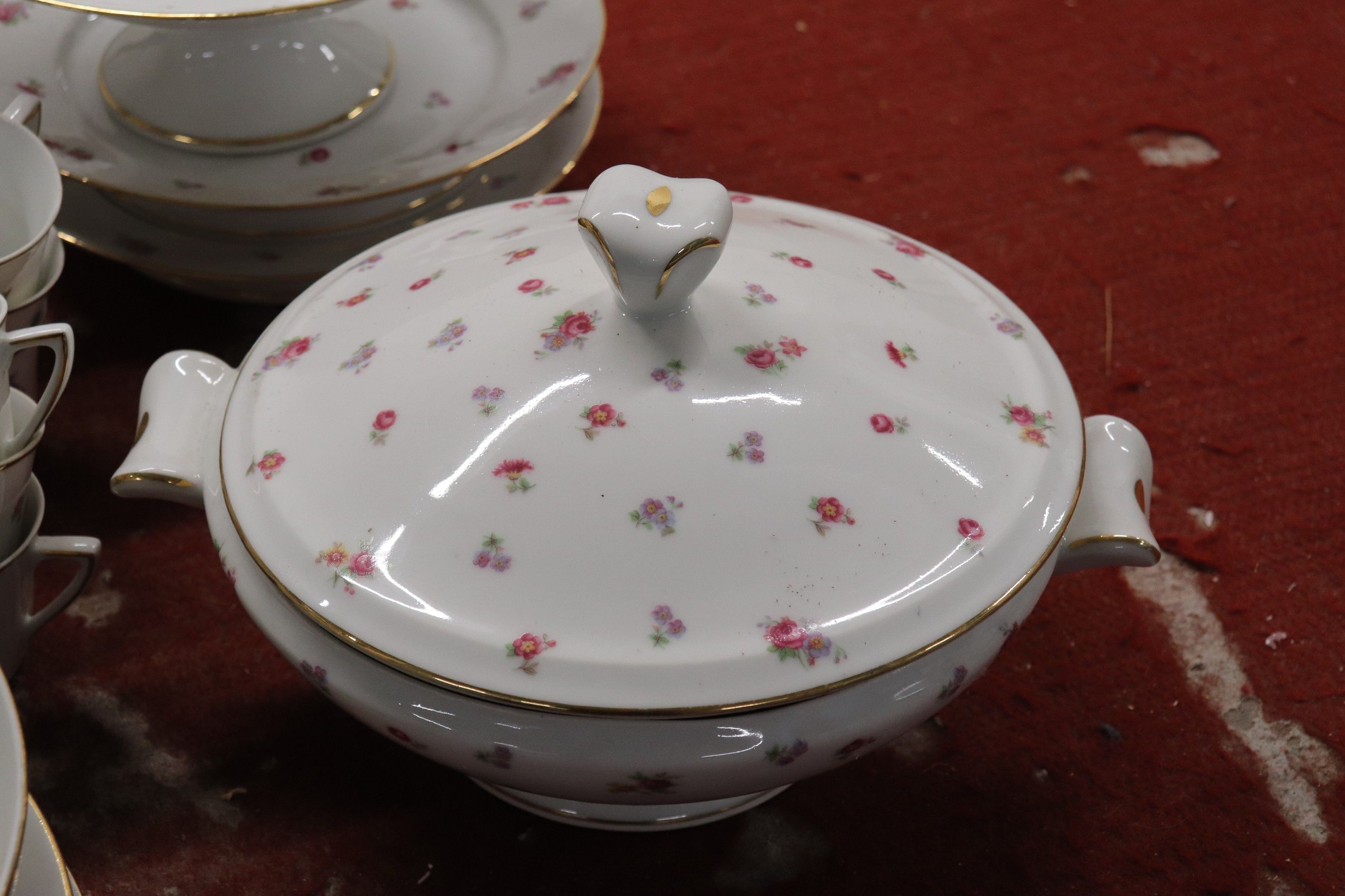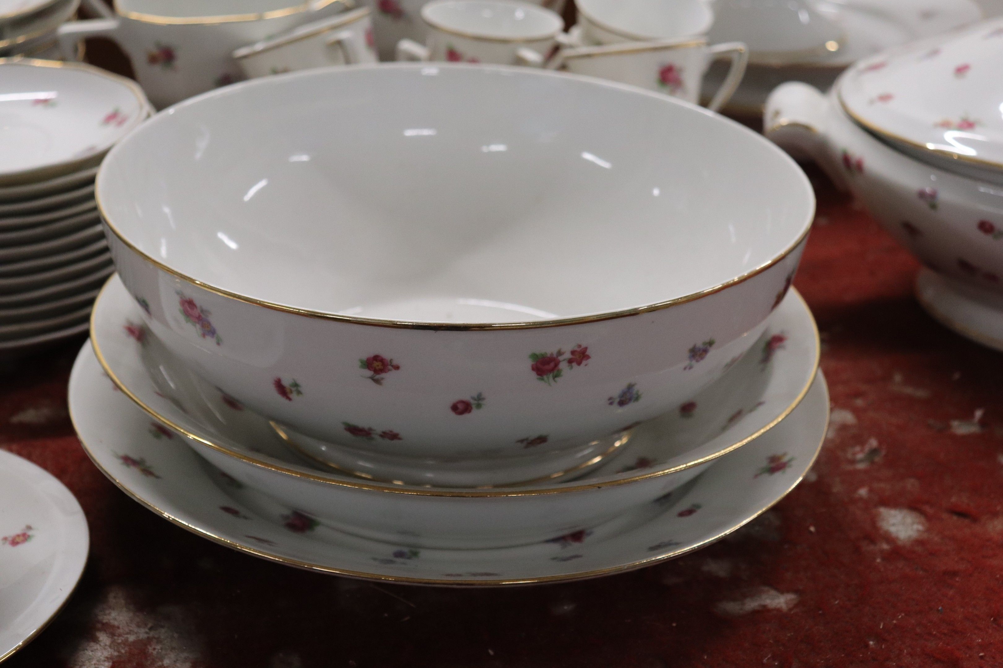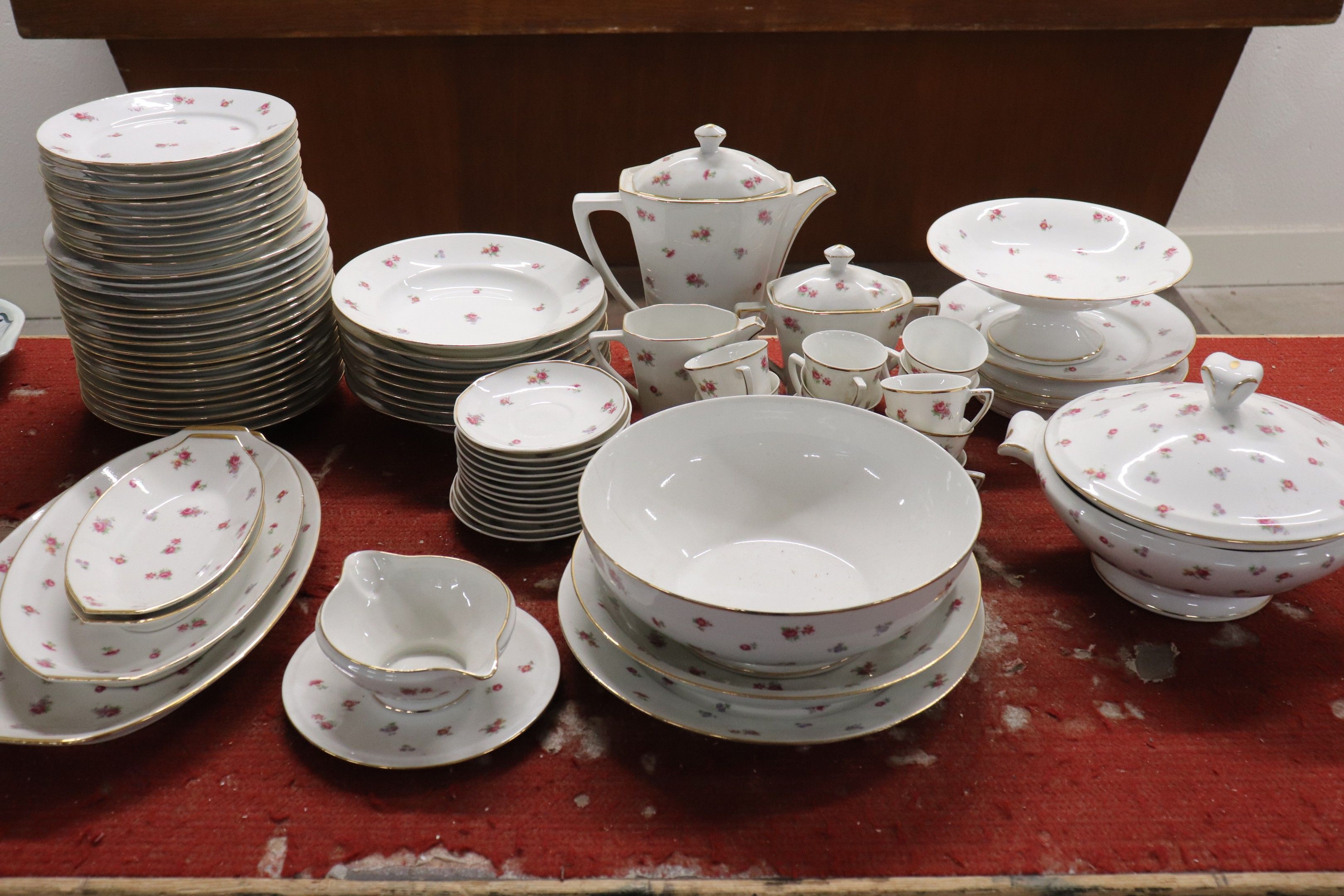 Porcelain dinner service with floral decoration and gold edging comprising :
