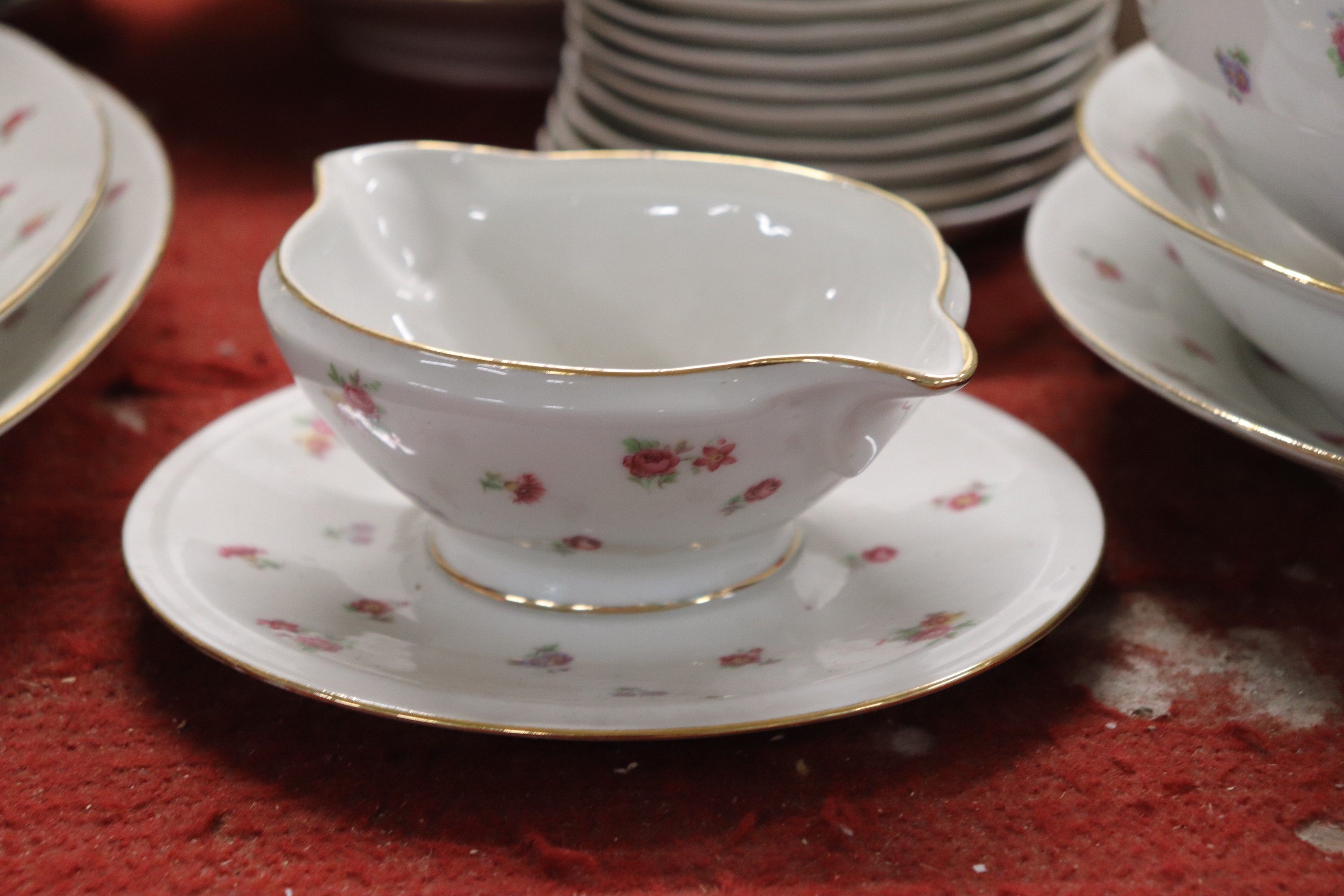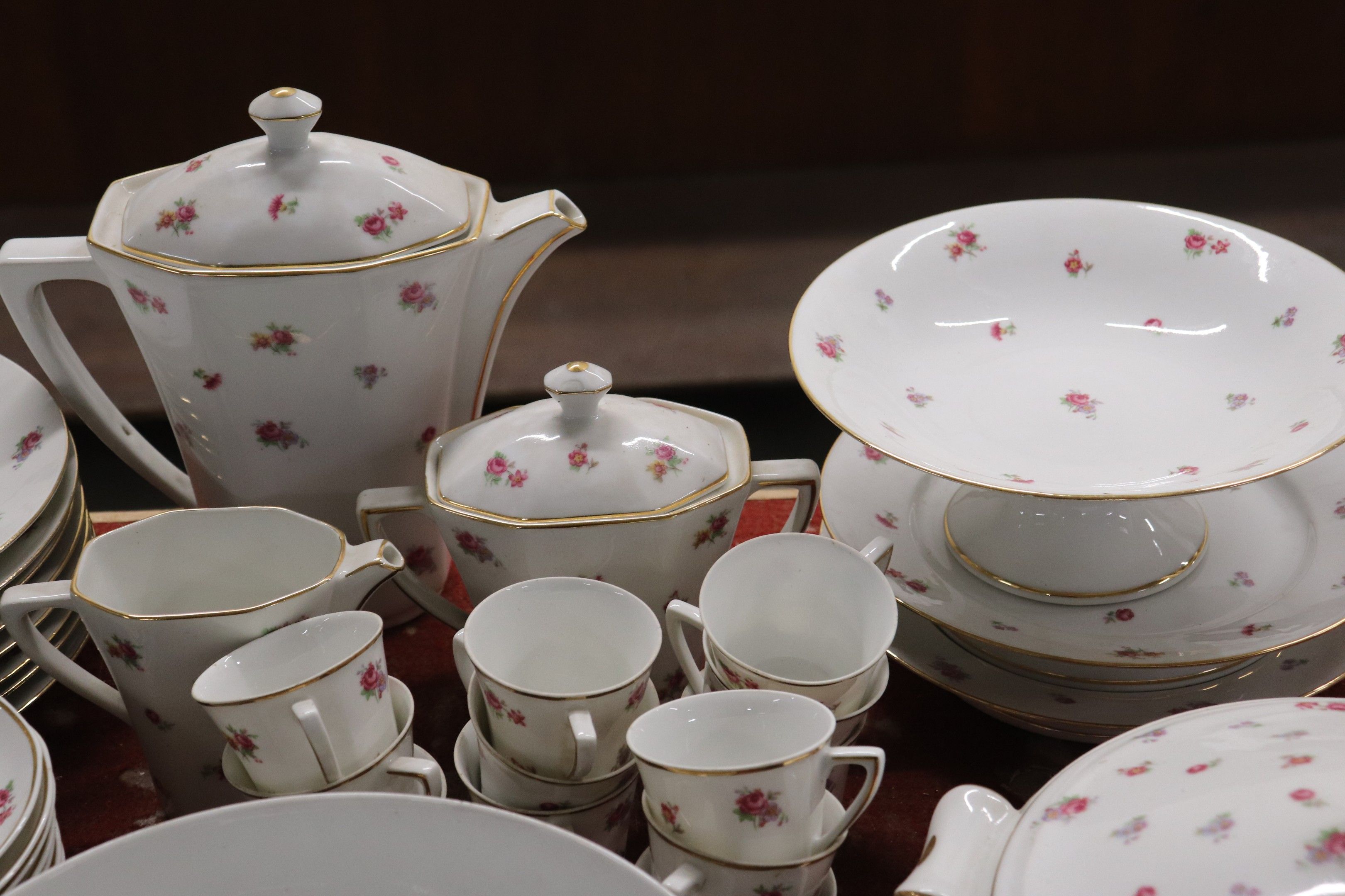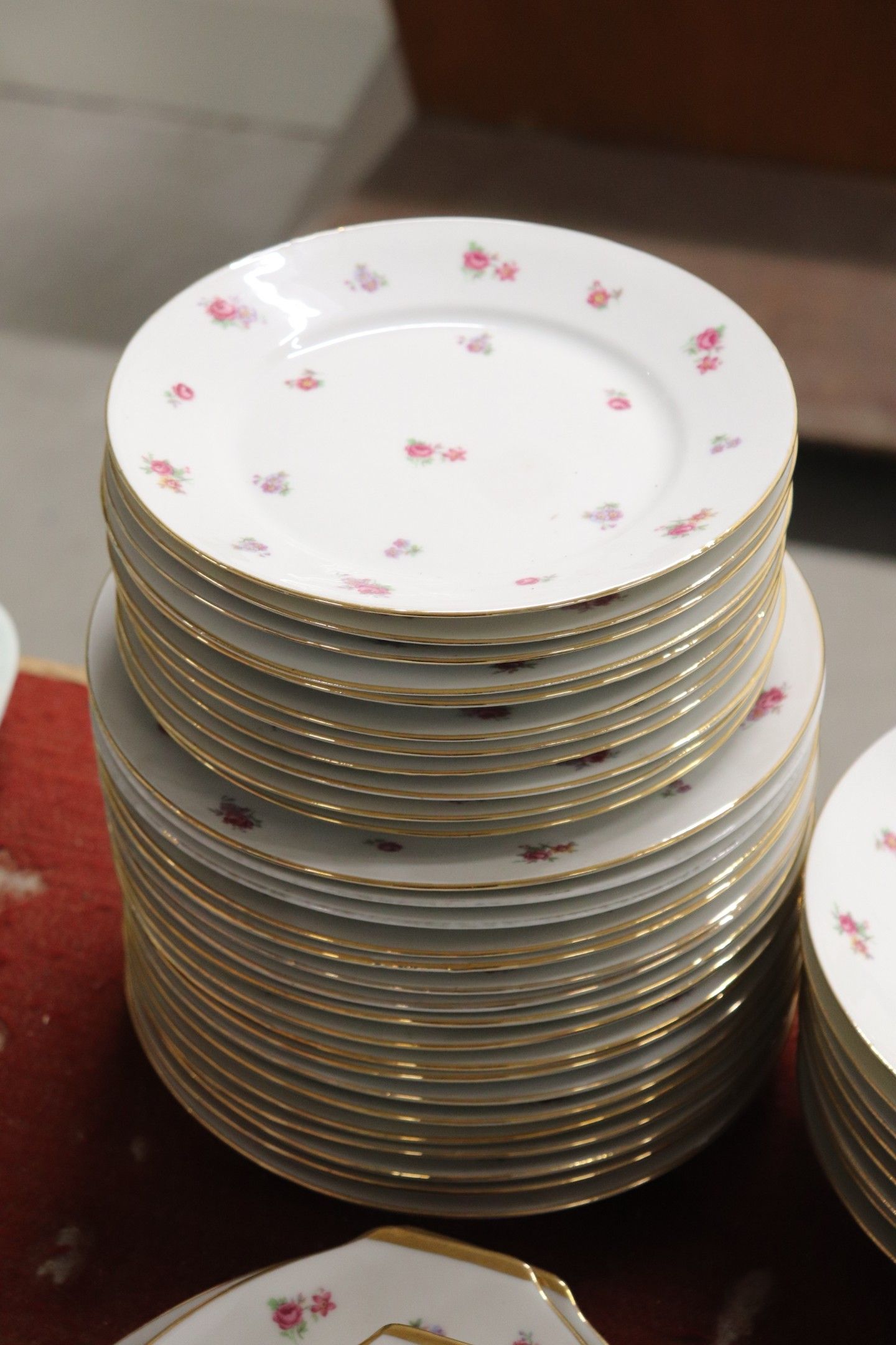 Porcelain dinner service with floral decoration and gold edging comprising :