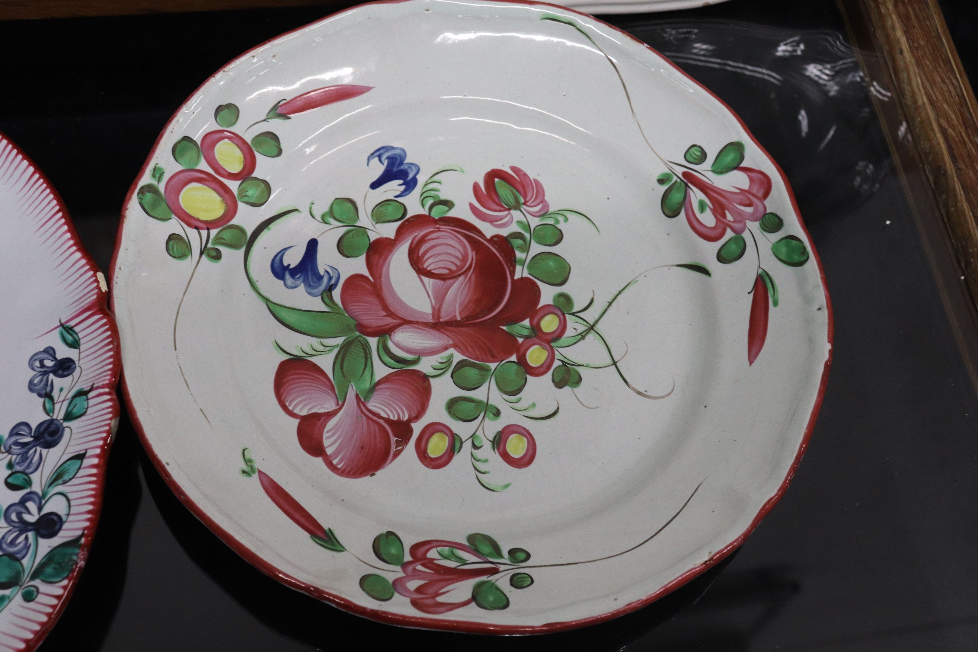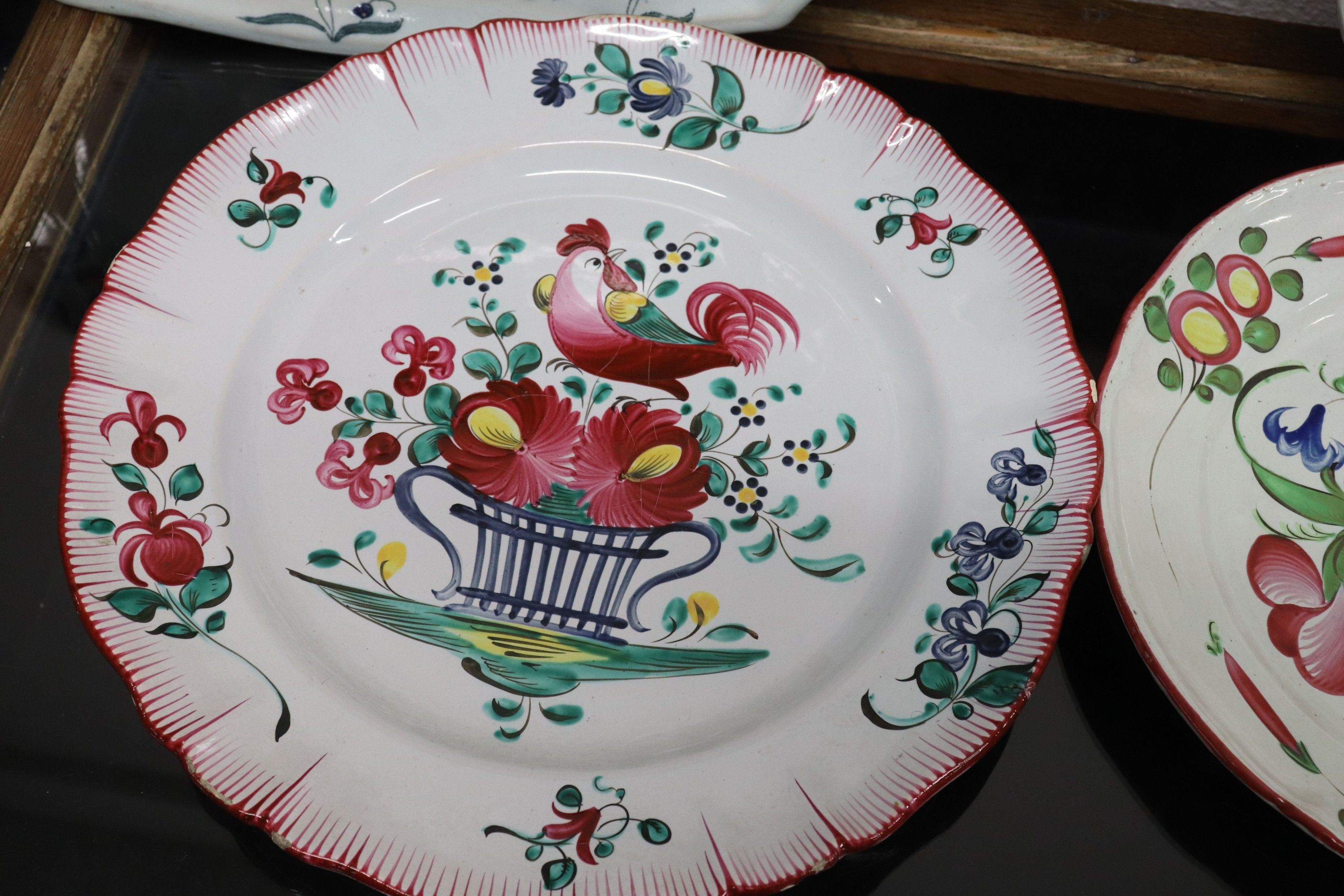 Set of five polychrome earthenware dishes: two round Les Isl…