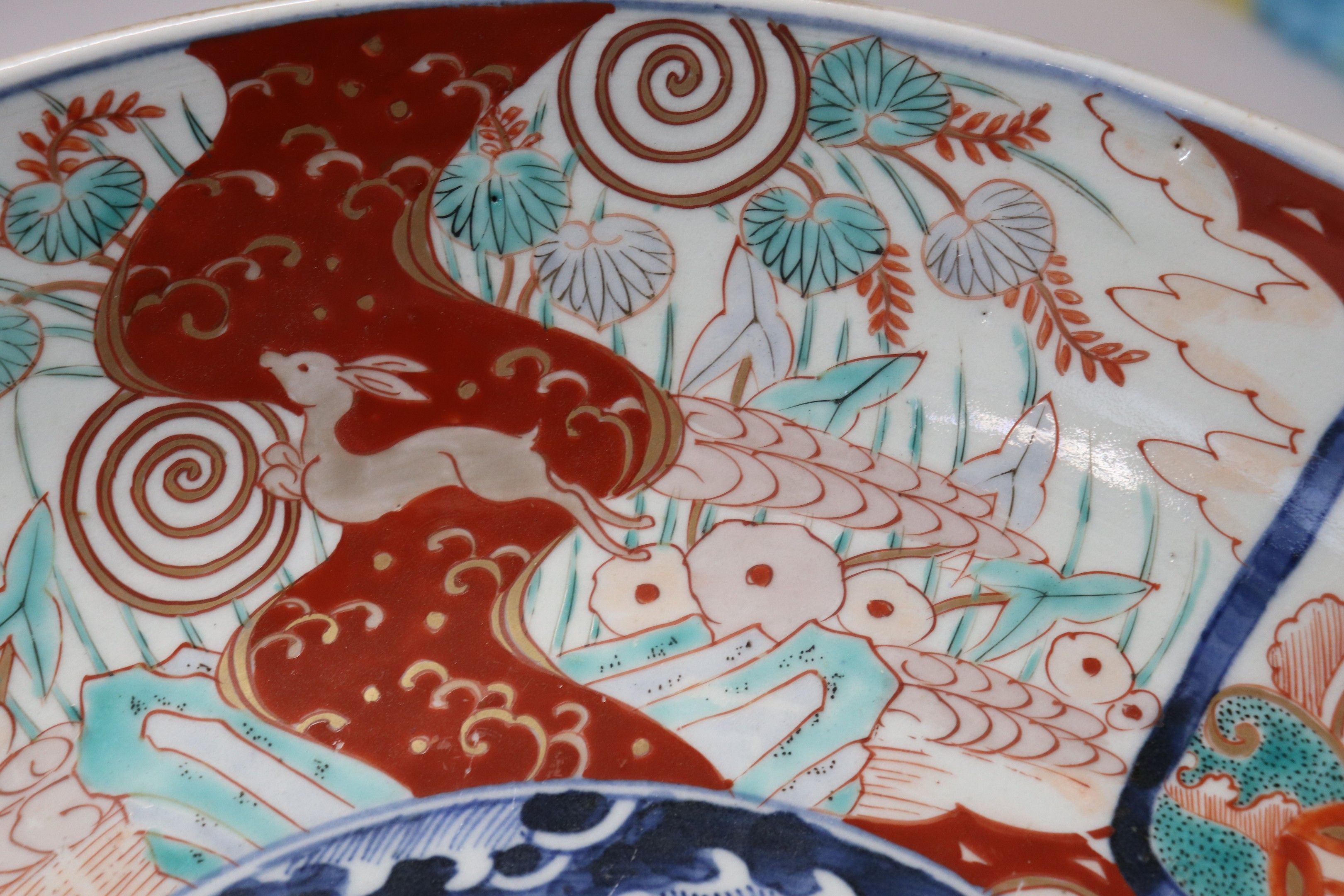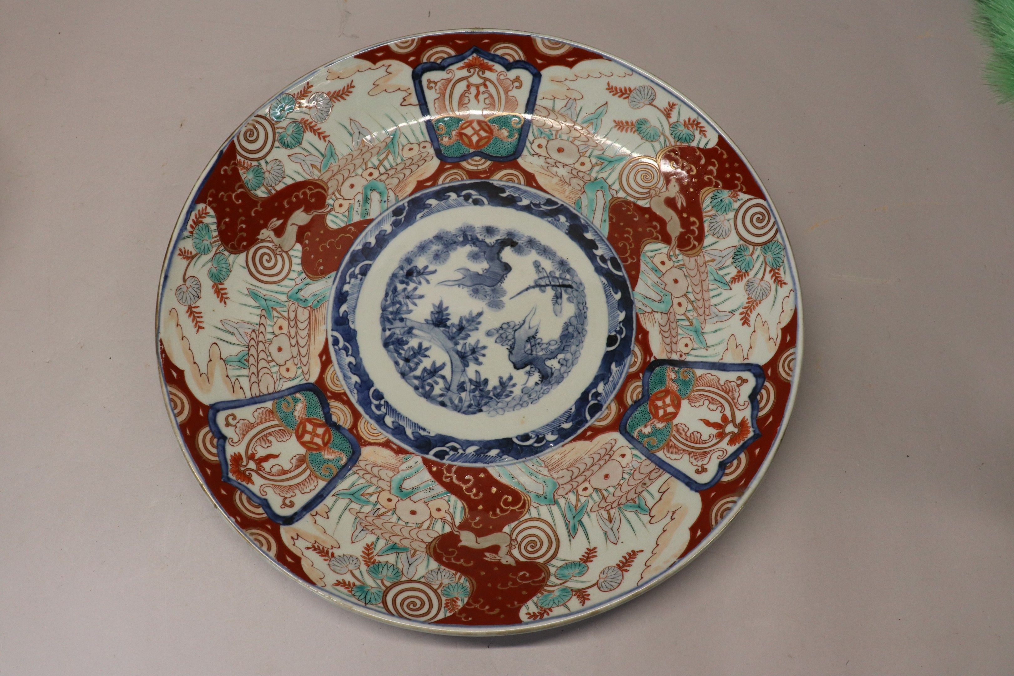 Large circular porcelain dish by IMARI. Diameter 46 cm