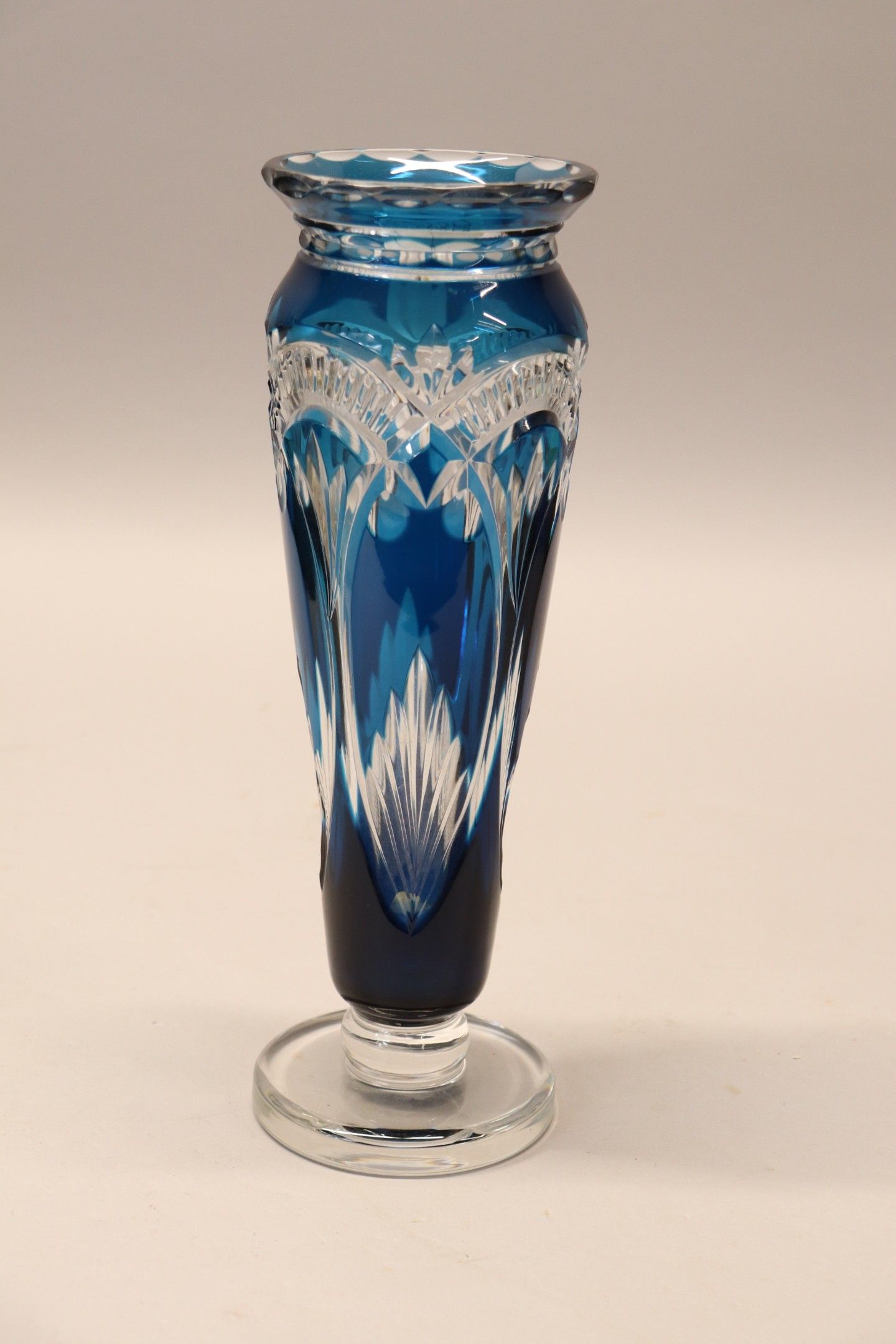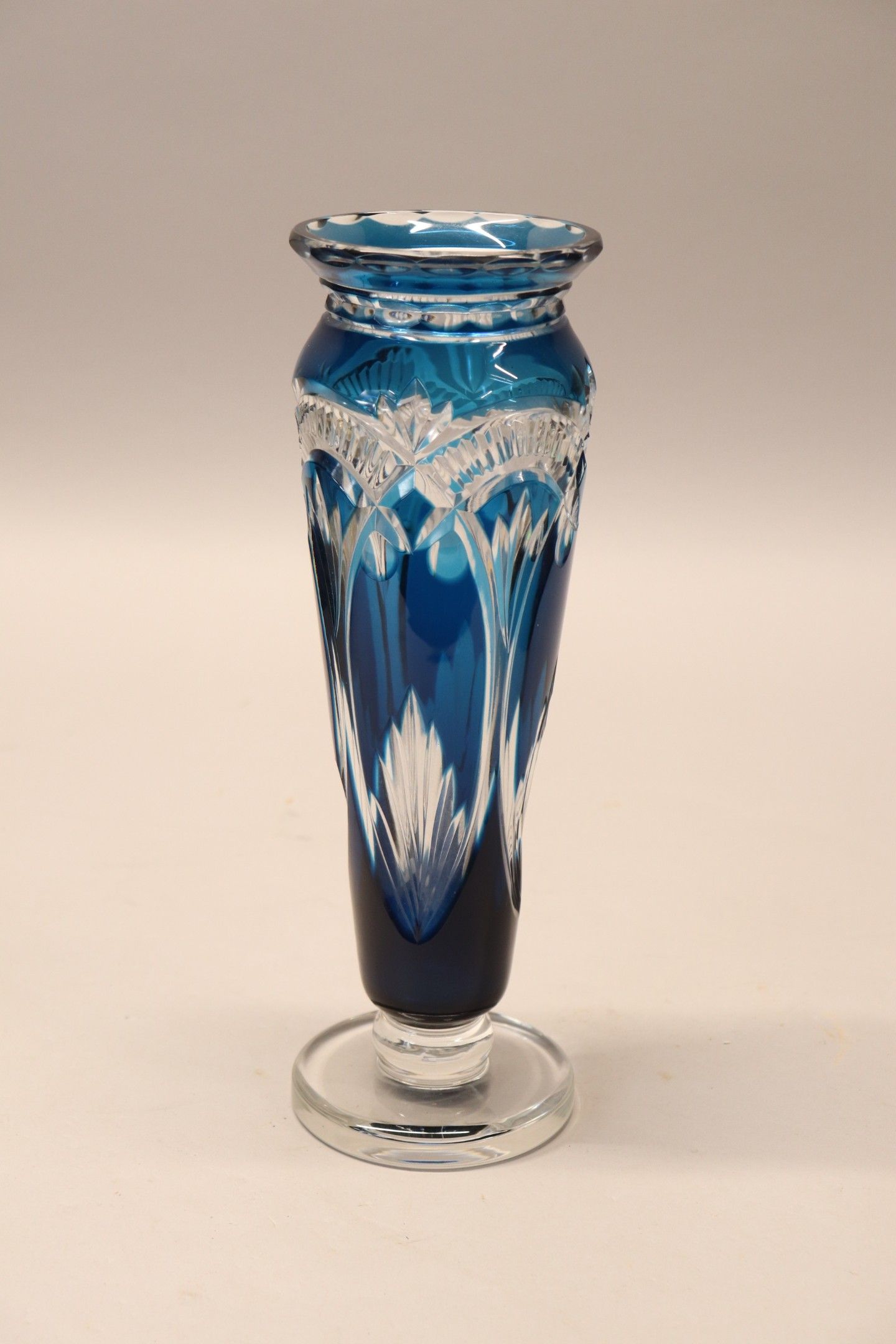 VAL SAINT LAMBERT cut crystal vase, partially tinted blue, m…