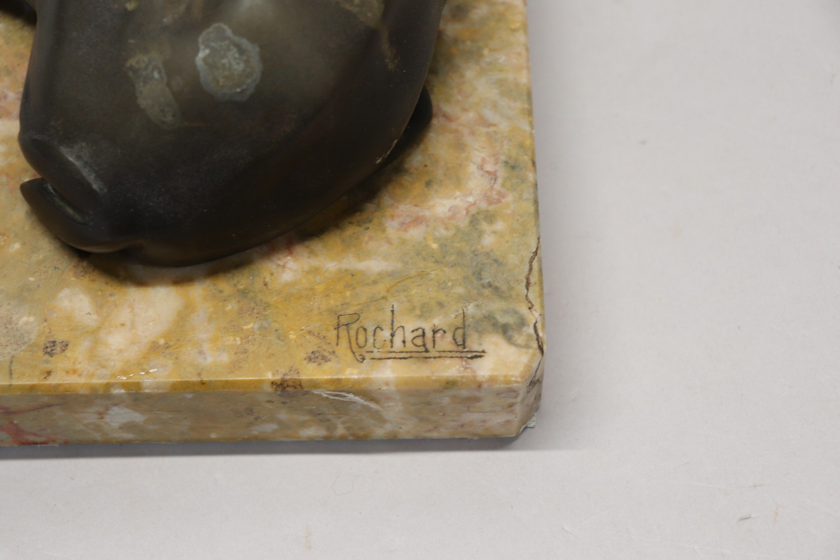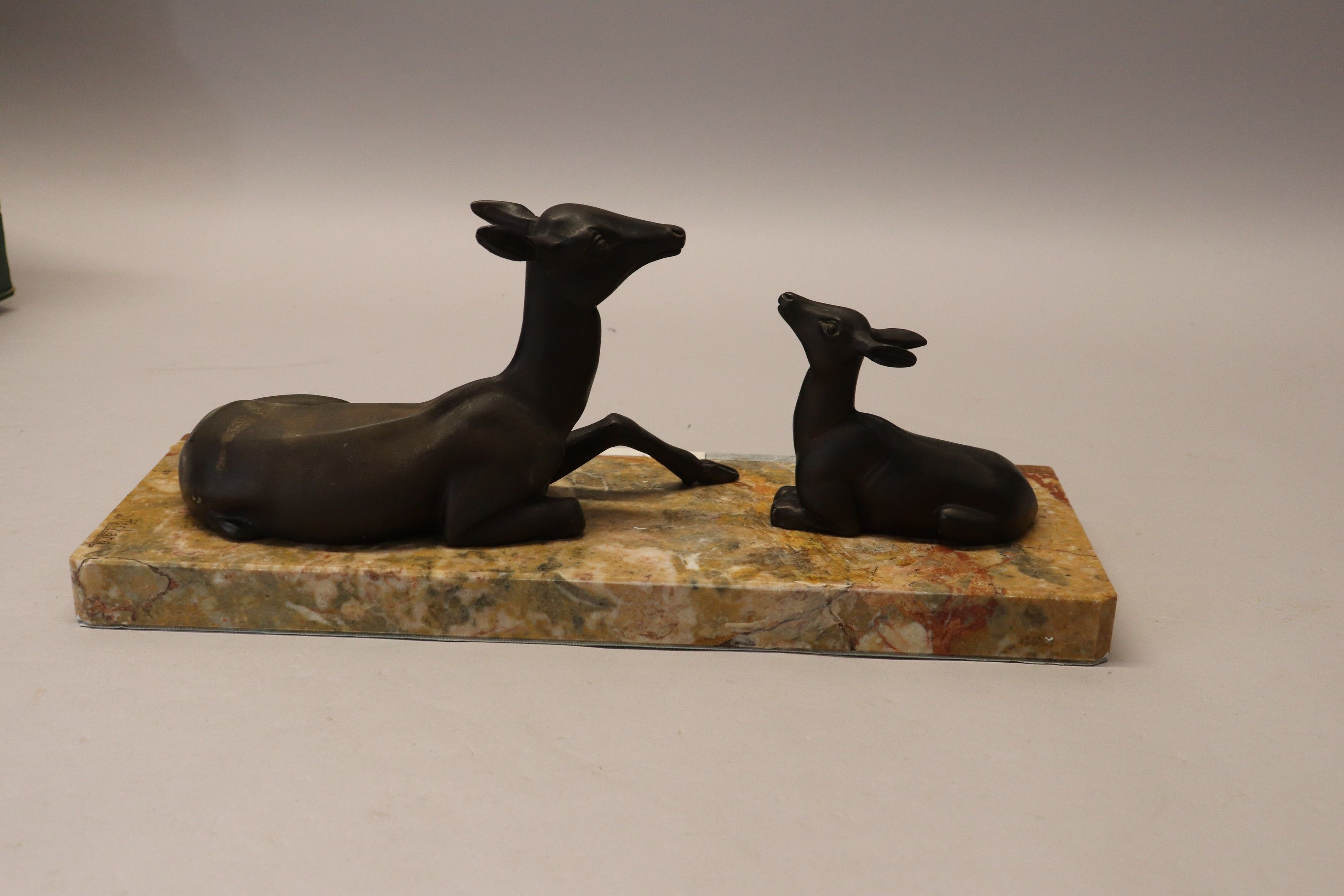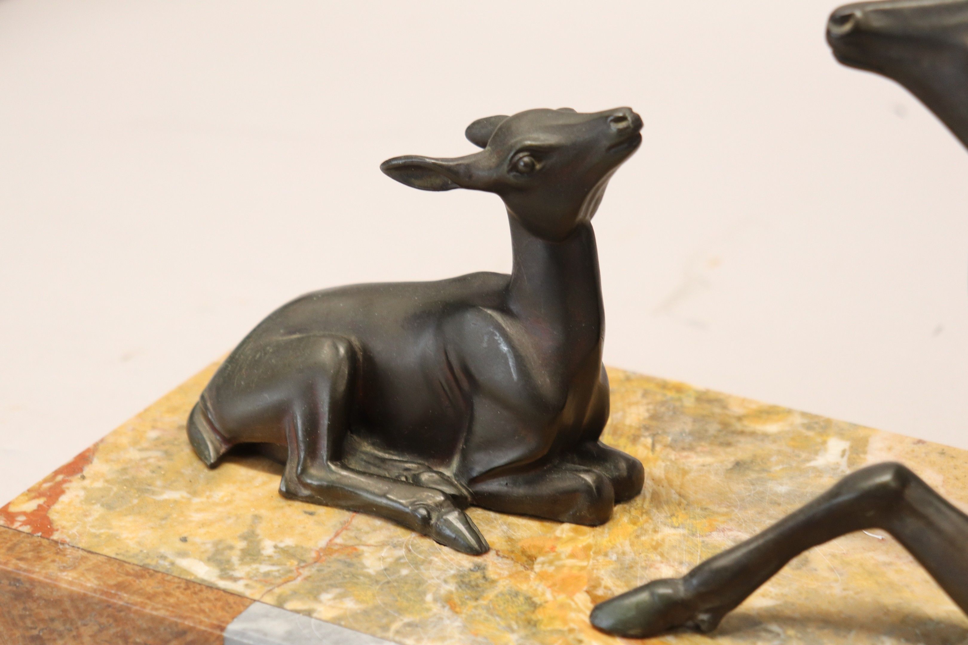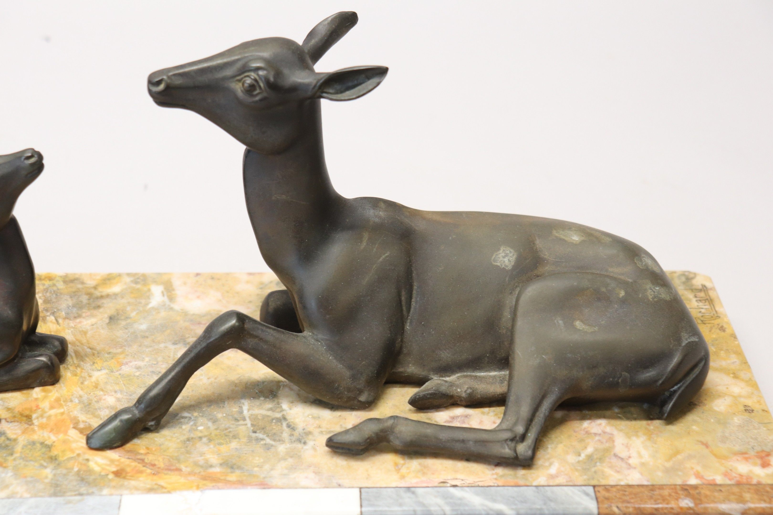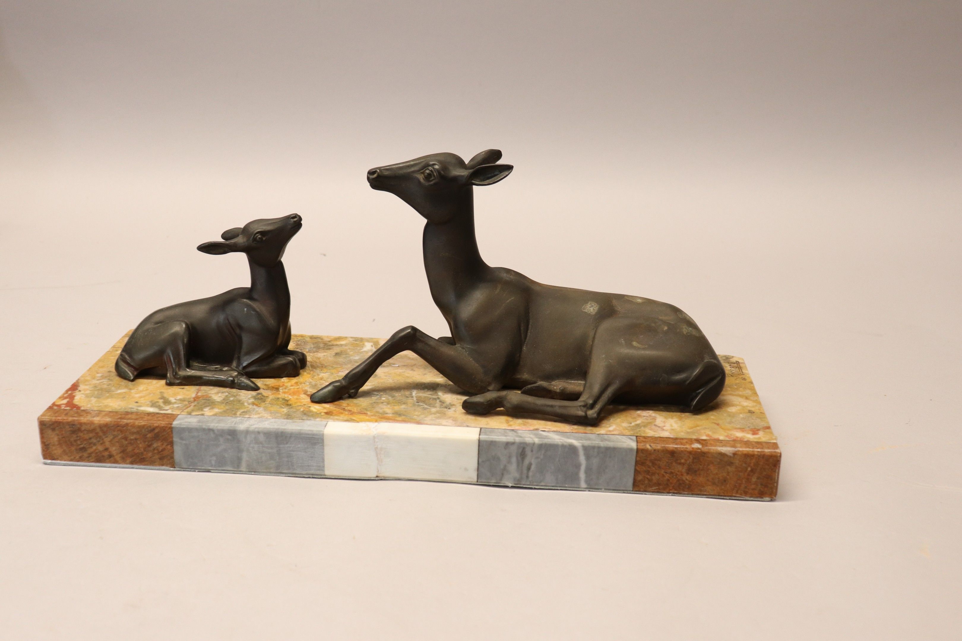 Irénée ROCHARD (1906-1984) (after) "Biche et son faon" (Doe and her fawn), regule group on marble base (restored).