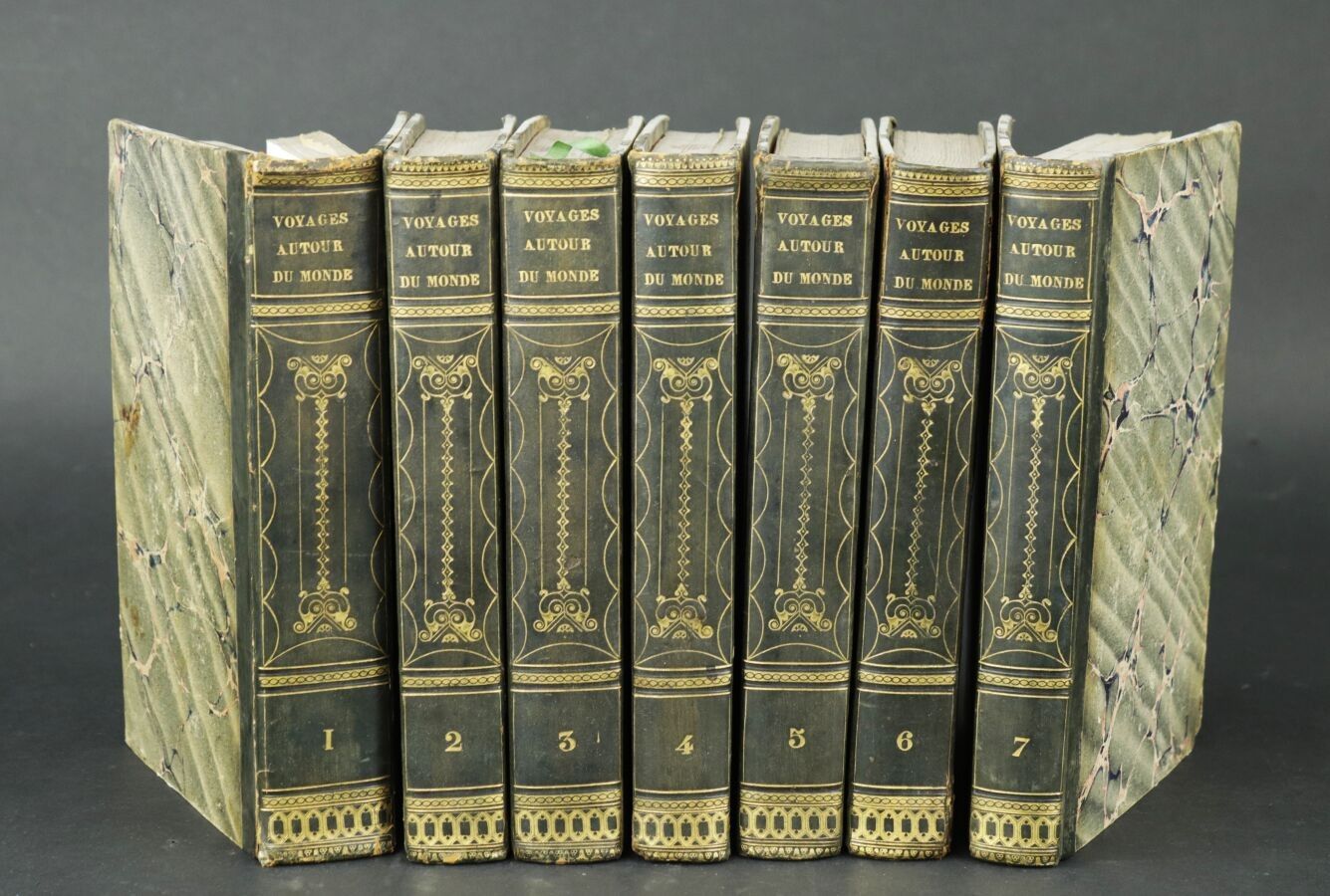 [VOYAGES] BANCAREL, François - Collection abrégée des voyages anciens et modernes autour du monde... enrichie de cartes, figures et des portraits de principaux Navigateurs. A Paris, de l'imprimerie de Fr. Dufart Père, 1808. 7 vol. in-8 in half-binding (the first 7 volumes of this series which comprises 12). Numerous plates out of text.