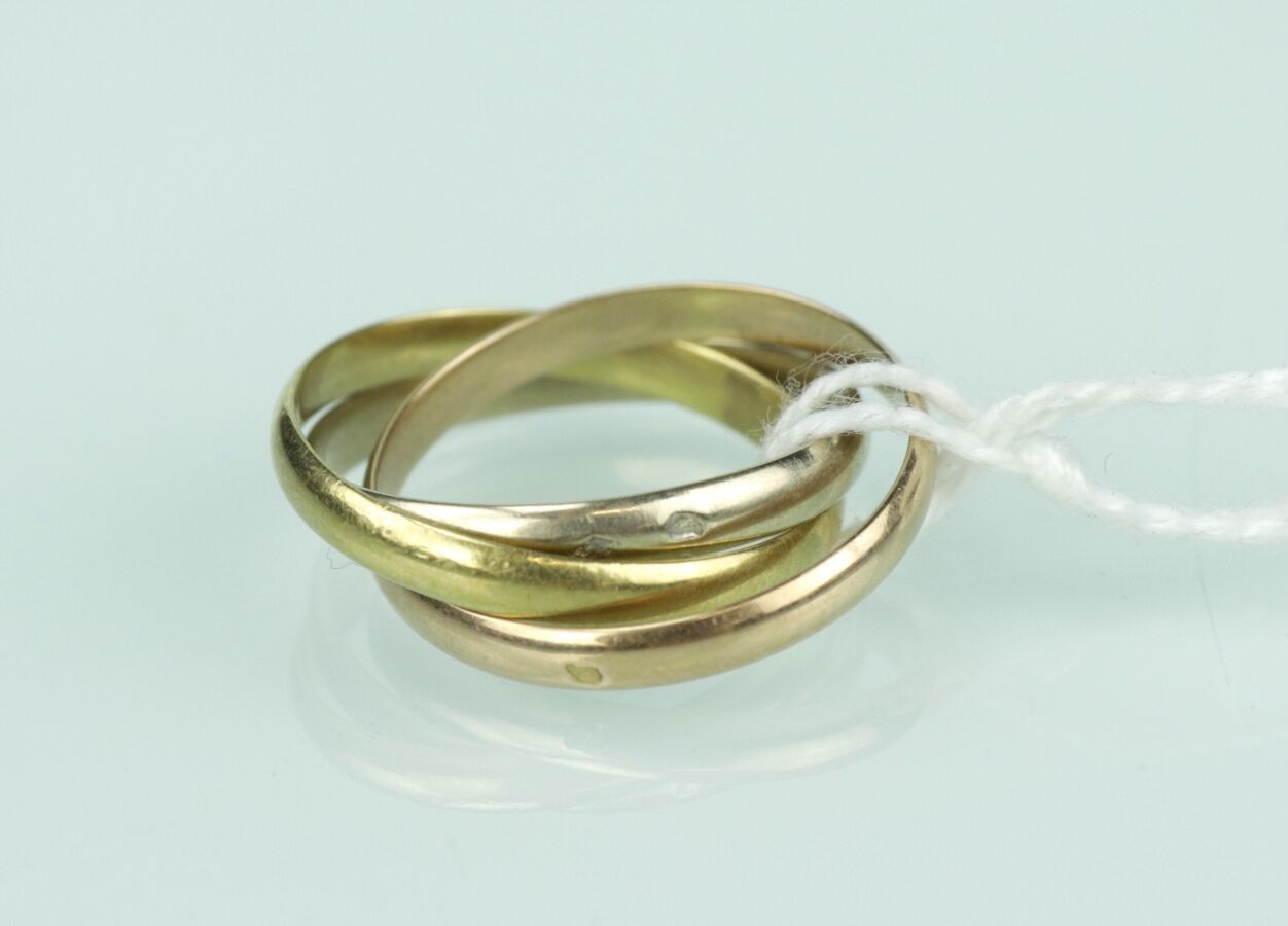 Three gold rings wedding band. In the style of Cartier's Trinity model. TDD 50. Weight: 3.6 g