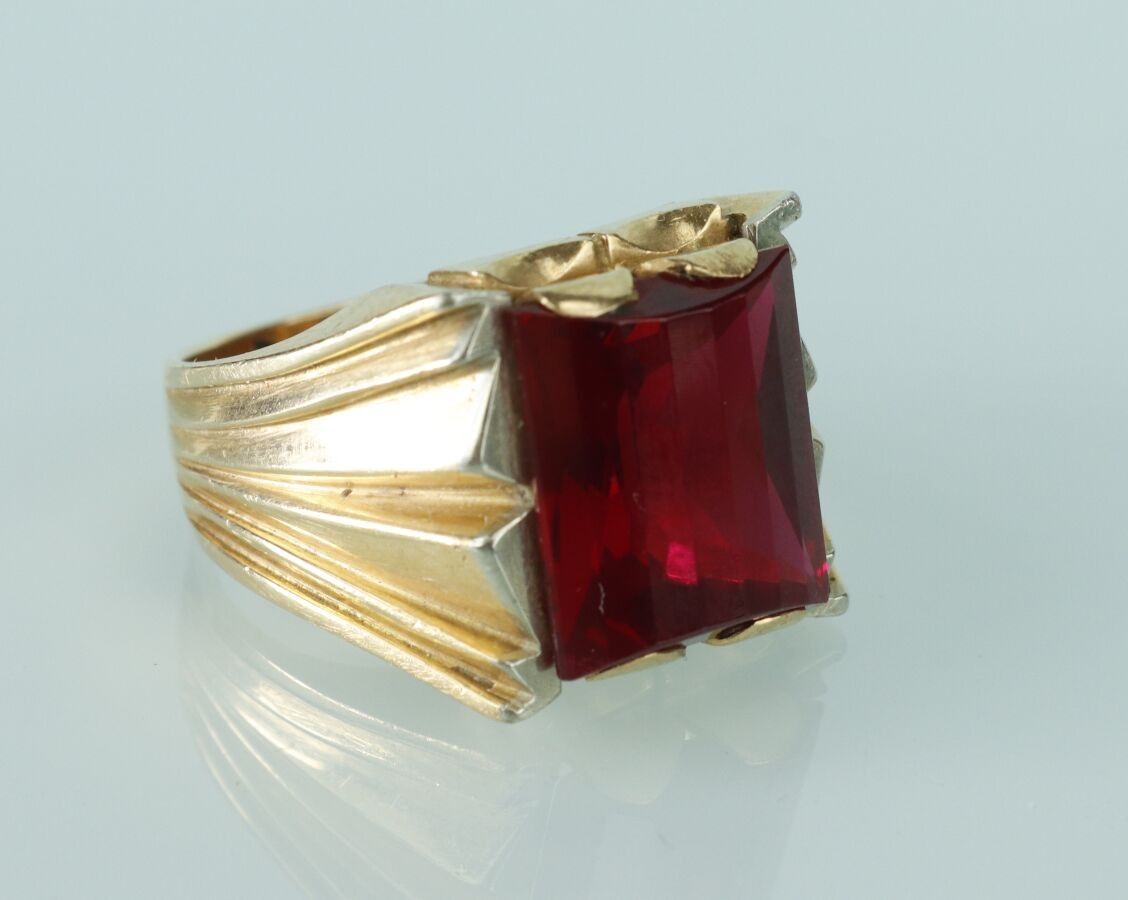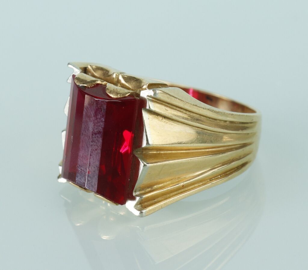 Chevalière in 18-carat yellow gold set with a large red ston…