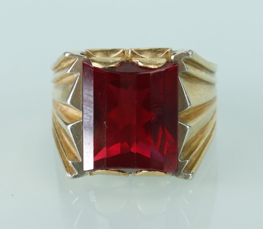 Chevalière in 18-carat yellow gold set with a large red stone. TDD 66 - Gross weight 15.2 g