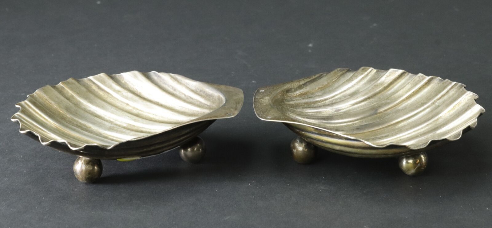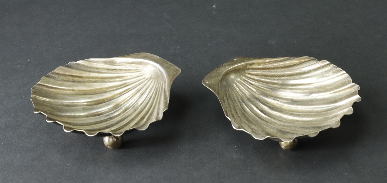 Pair of silver scallop-shaped dishes. Minerve hallmark on the first title. Length 13 cm. Total weight 217 g