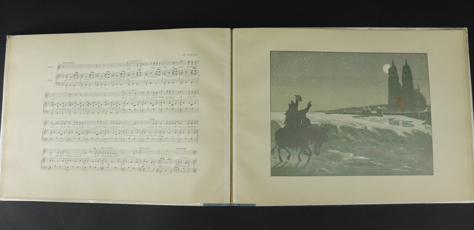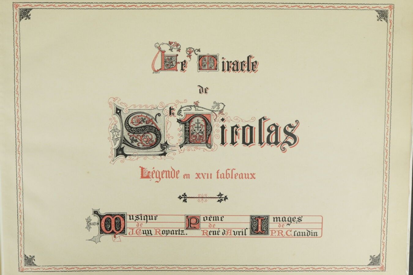 "Le Miracle de St Nicolas - Légende en XVII tableaux", album of scores, music by J.G. Ropartz, poem by R d'Avril, images by P.R. Claudin