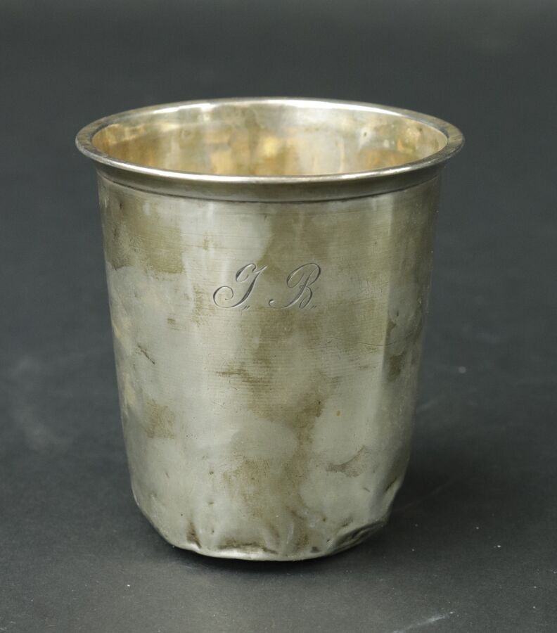 Plain silver tumbler, monogrammed JB. Weight 60 g. Shock