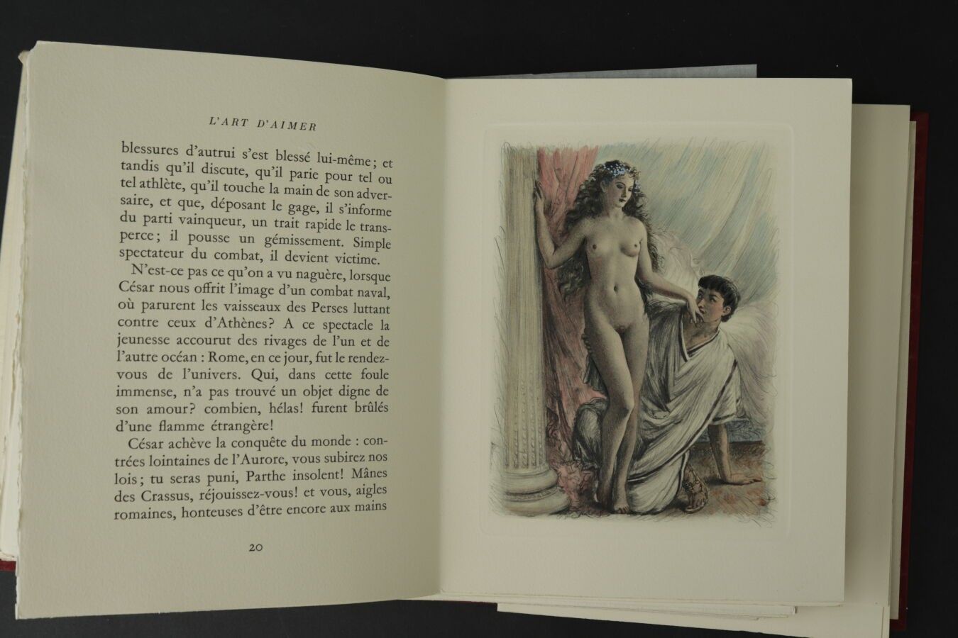 - OVIDE - L'art d'aimer. Drypoints and lettering by P.E. Bécat. éditions Athéna, Paris. 1952. Copy n°23 on vellum pur fil BFK de Rives. With a suite in black and an original plate by the artist. Wrapper slightly damaged.