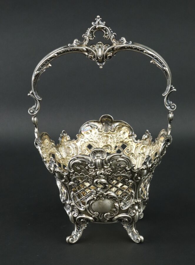 Basket with silver frame and glass interior. Height 22 cm. Weight of the frame 186 g. Accident to the glassware