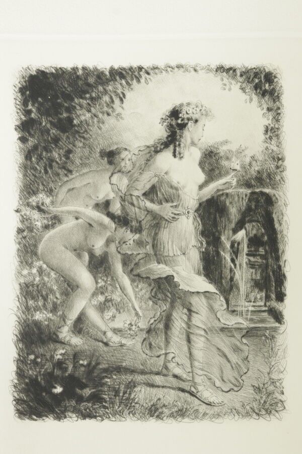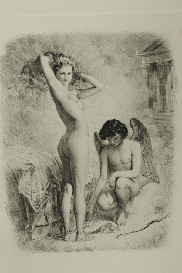 - LA FONTAINE, Jean de - Les amours de Psyché et Cupidon. Drypoints by P.E. Bécat. Les Heures Claires, Paris. 1955. Copy n°163 on Rives. Roussures, suite in black missing, stained dust jacket.