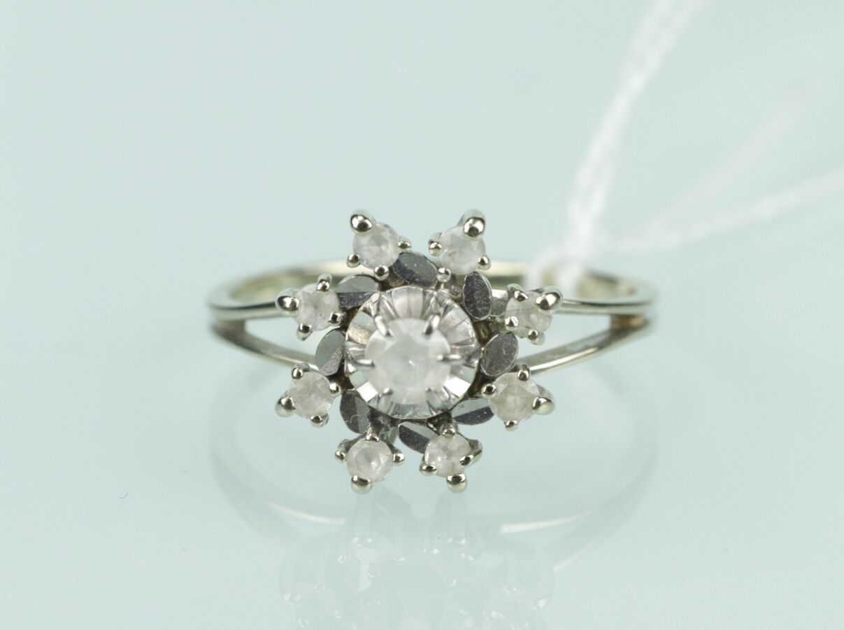 Flower ring in 18 carat white gold set with small claw-set white stones. TDD 57/58 - Gross weight 3 g