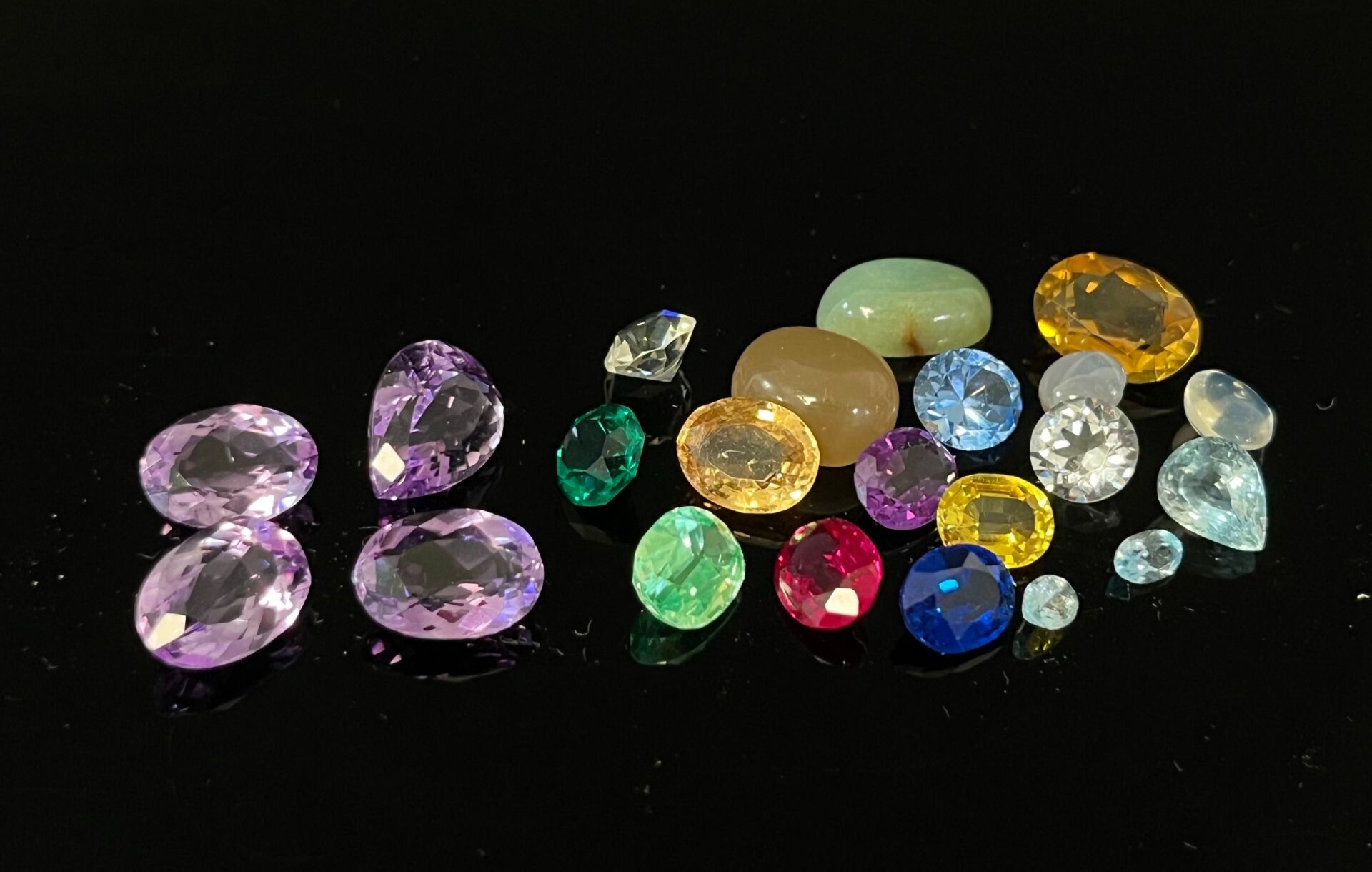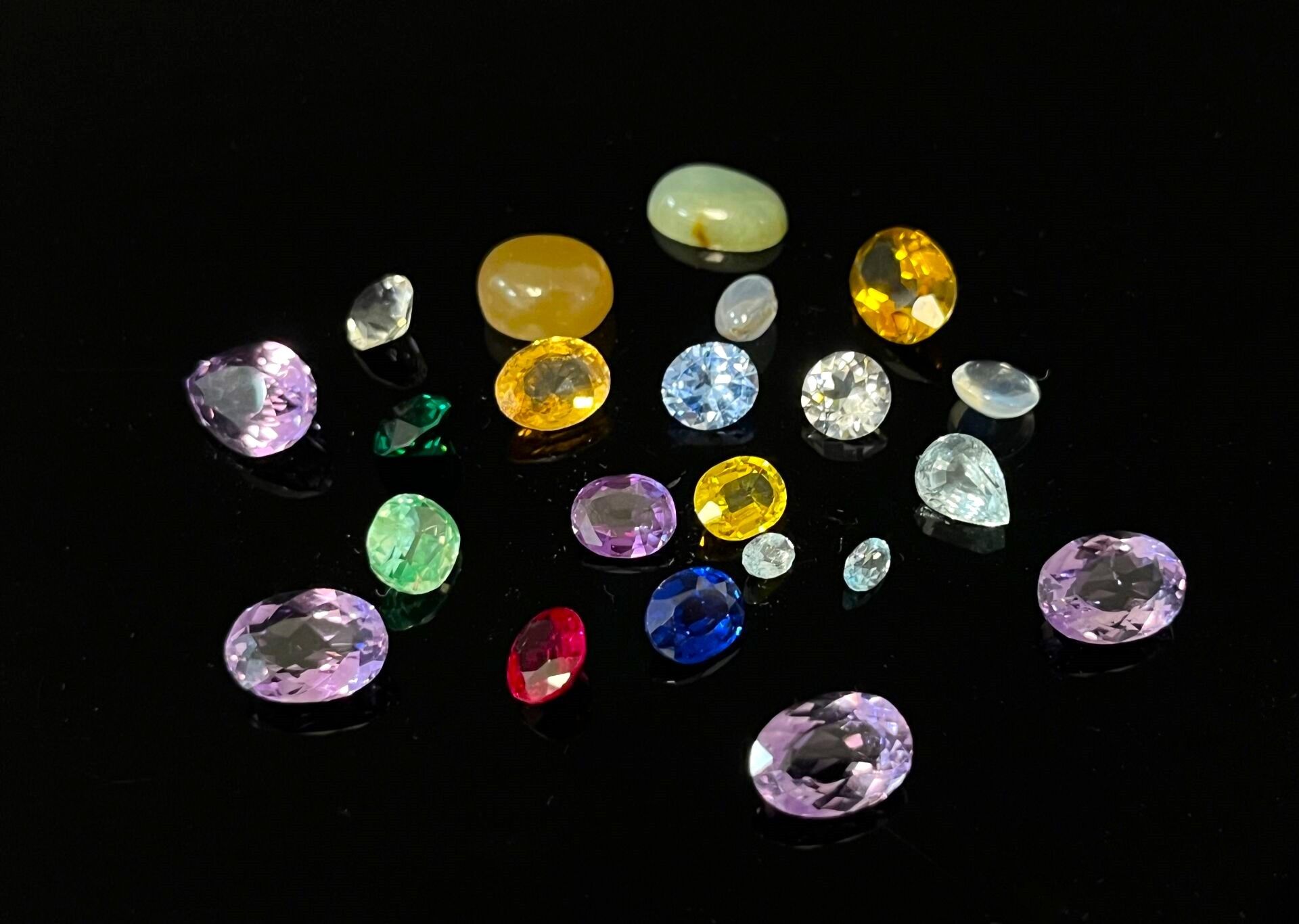 LOT of stones on paper from Brazil including amethysts, quartz and miscellaneous.