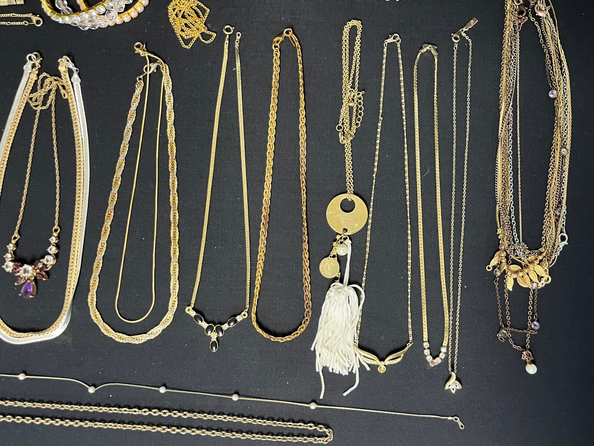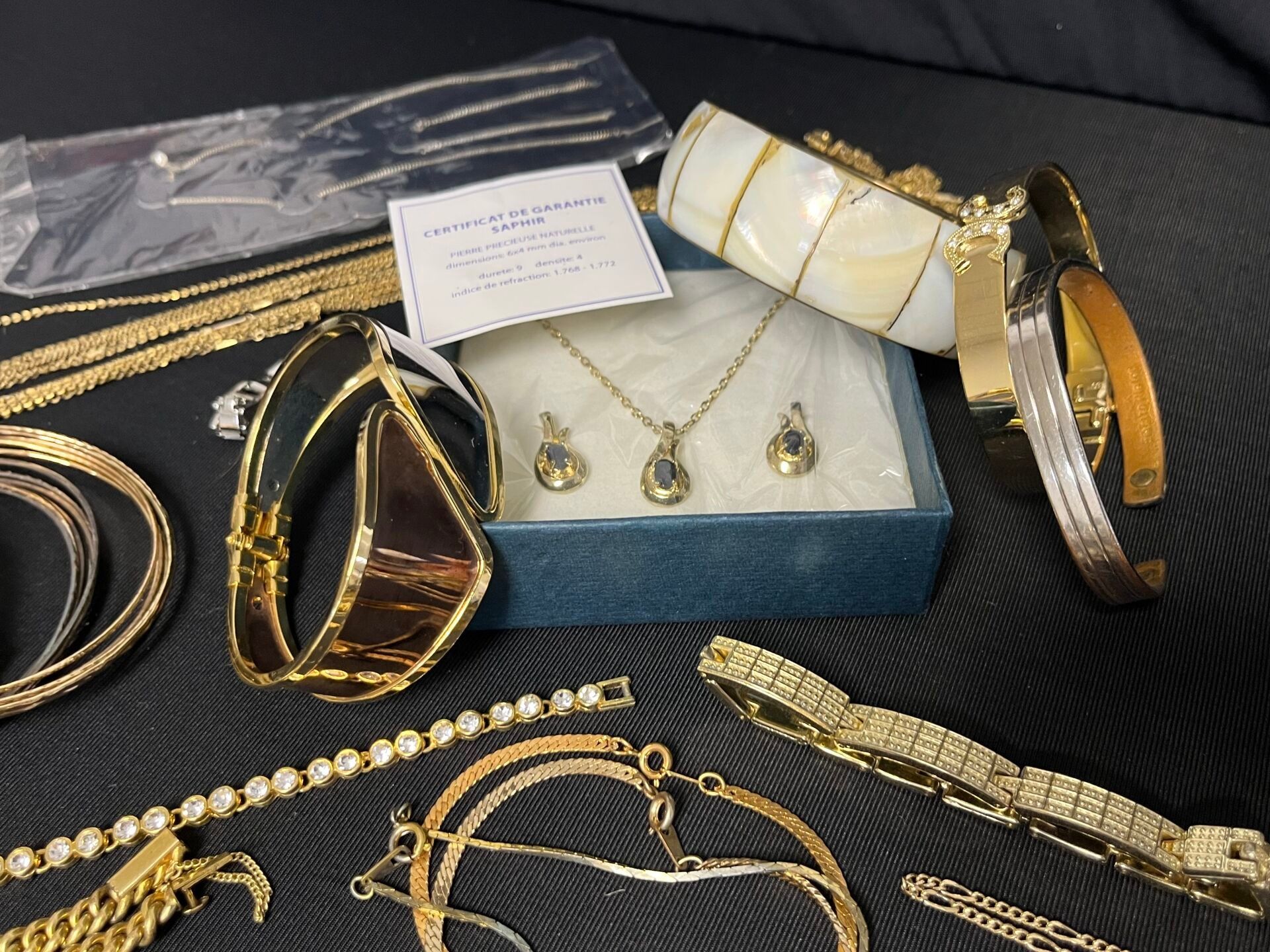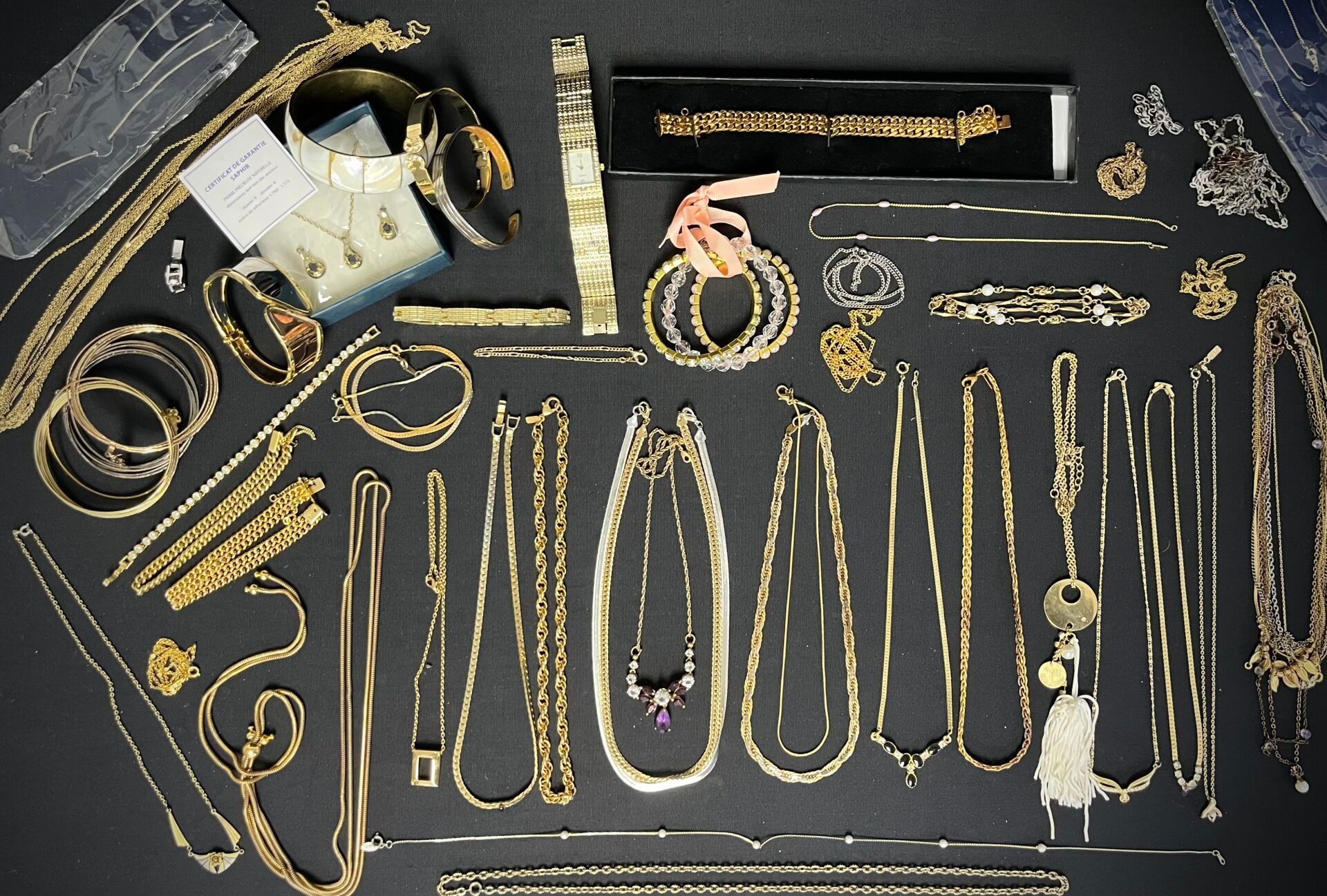 [Fancy jewellery.] LOT of costume jewellery. [Fancy]. LOT of costume jewellery in gilded metal including necklaces, pendants, long necklaces, bracelets and miscellaneous.