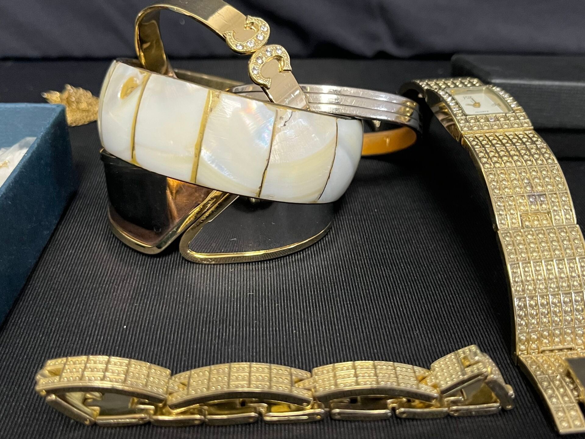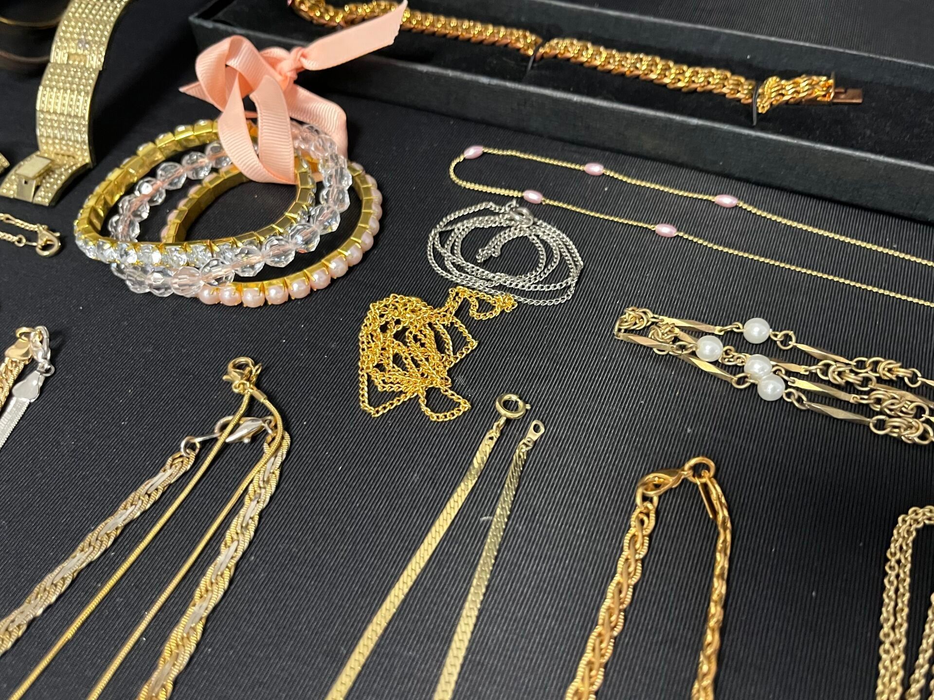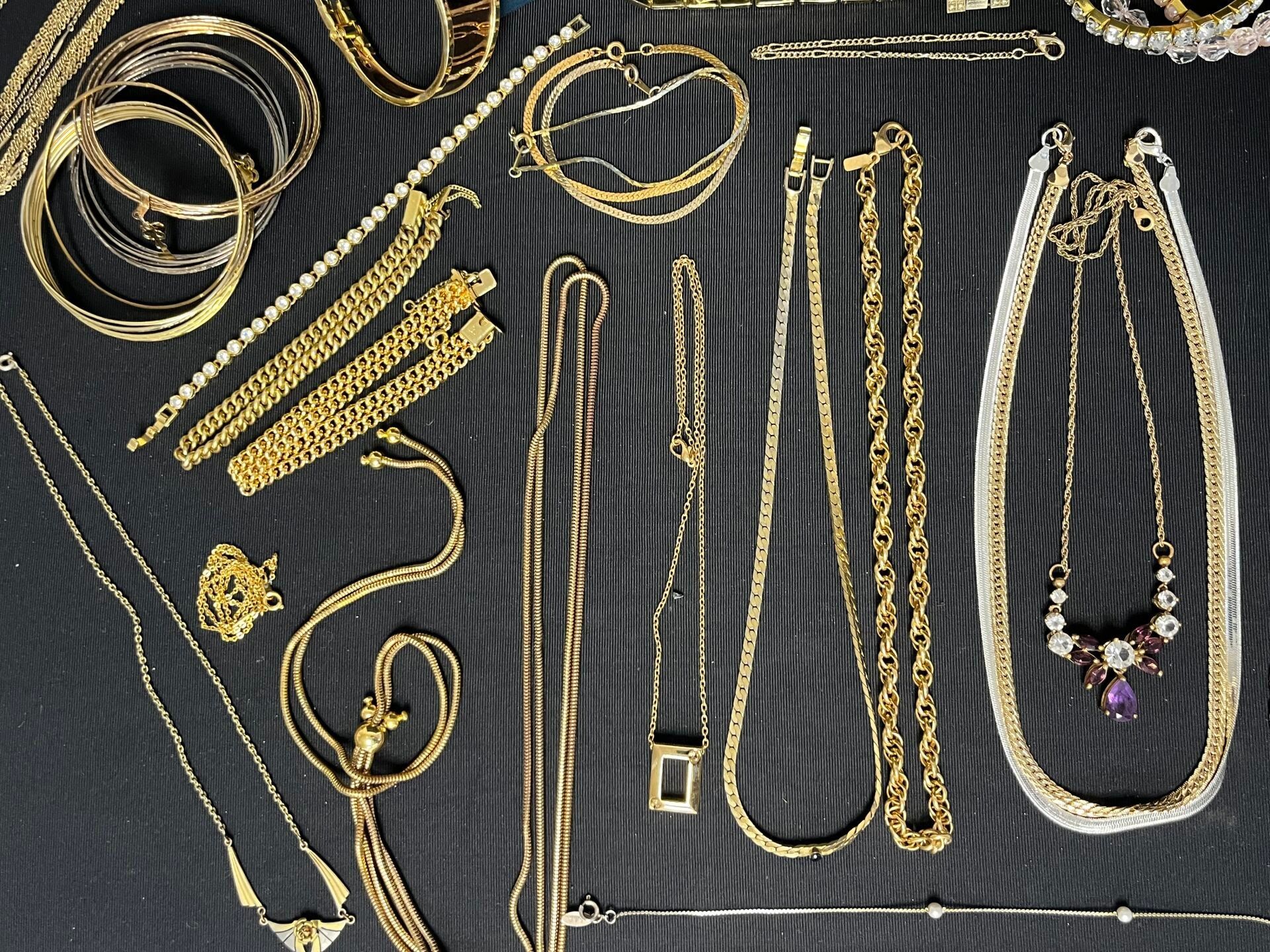 [Fancy jewellery.] LOT of costume jewellery. [Fancy]. LOT of costume jewellery in gilded metal including necklaces, pendants, long necklaces, bracelets and miscellaneous.