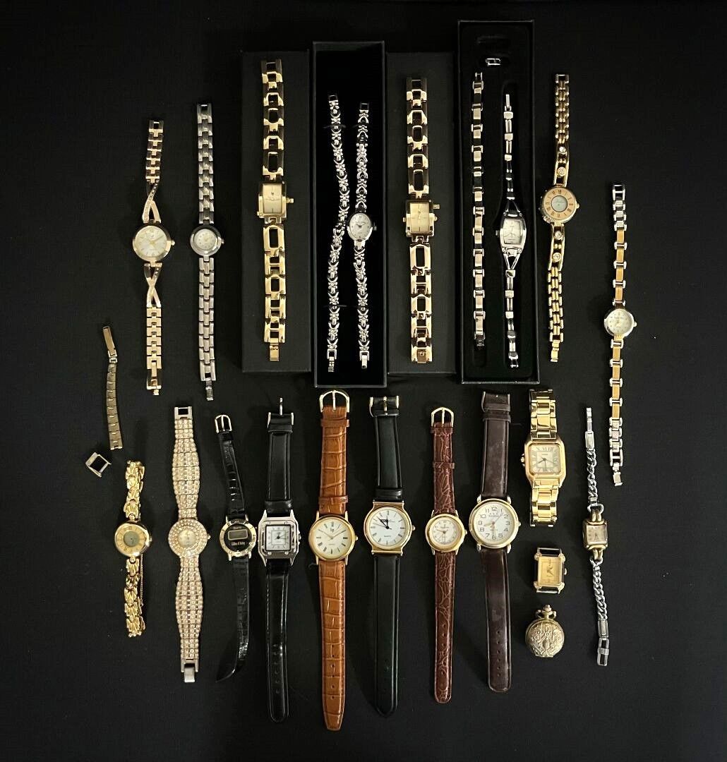 [Fancy]. LOT of fancy and advertising watches in gilded metal, rhinestones and various stones.
