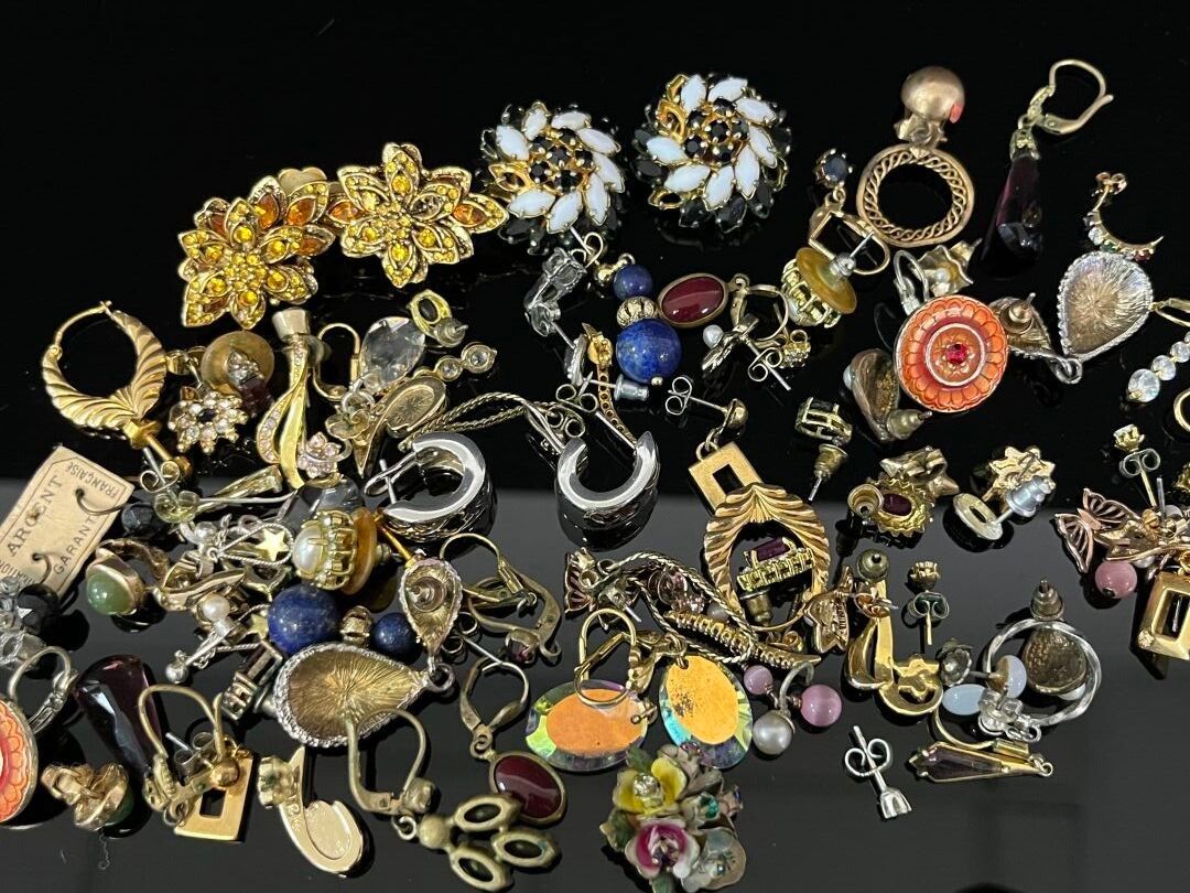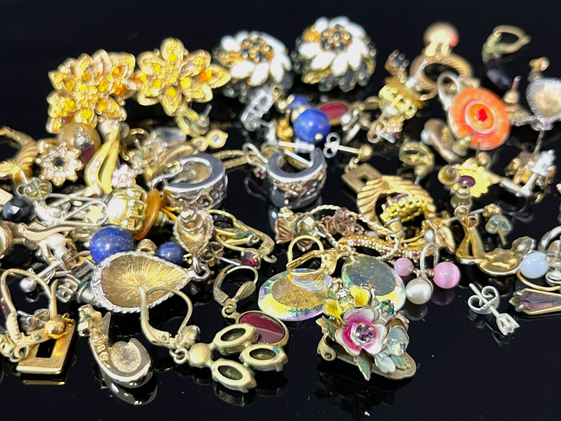 [Fancy]. LOT of pairs of silver and gilt metal earrings, ear clips, ear studs and miscellaneous, some set with fancy stones.