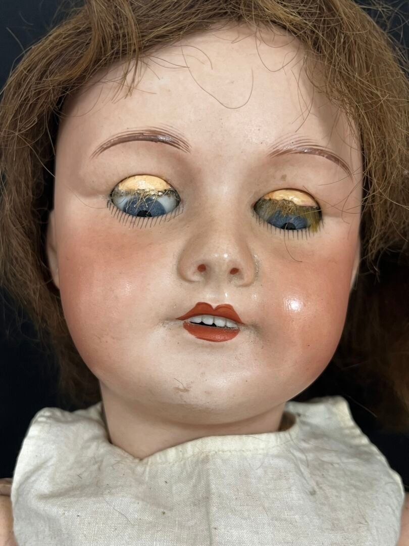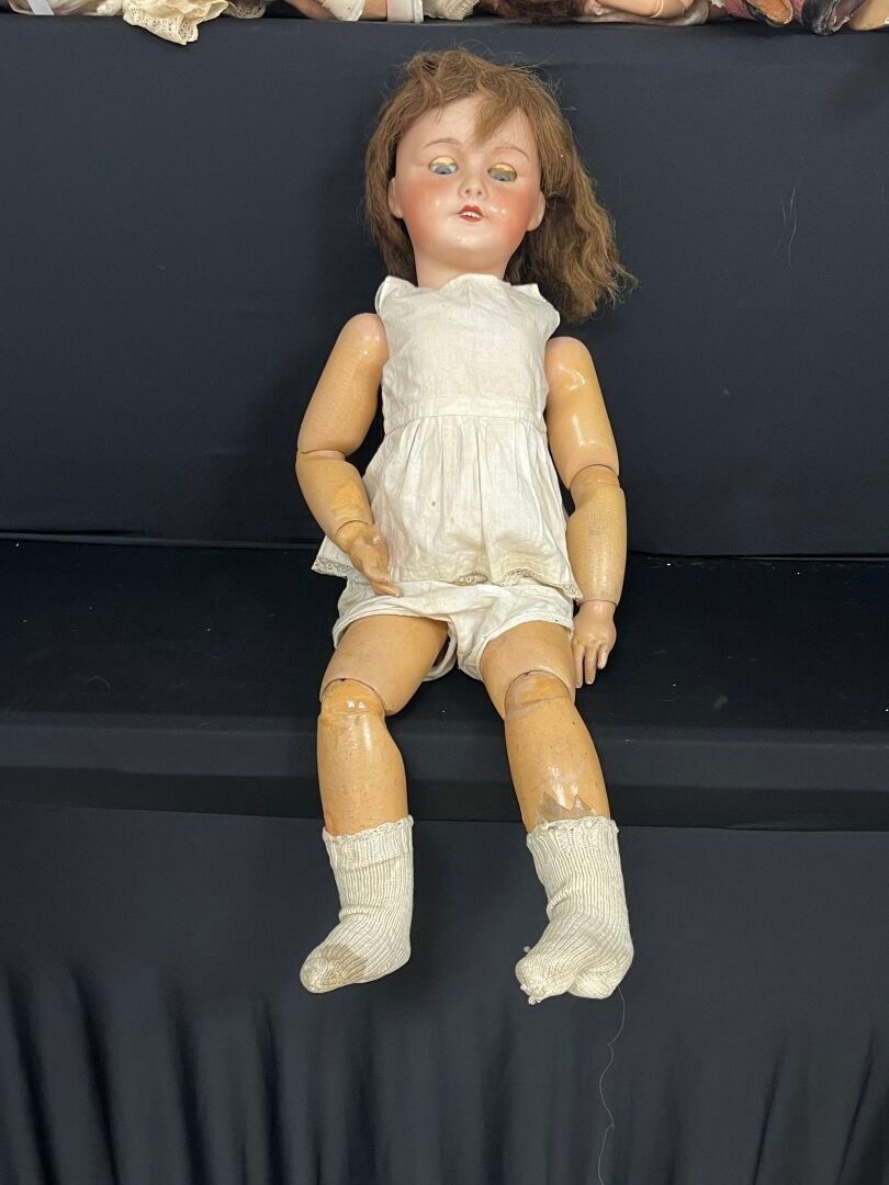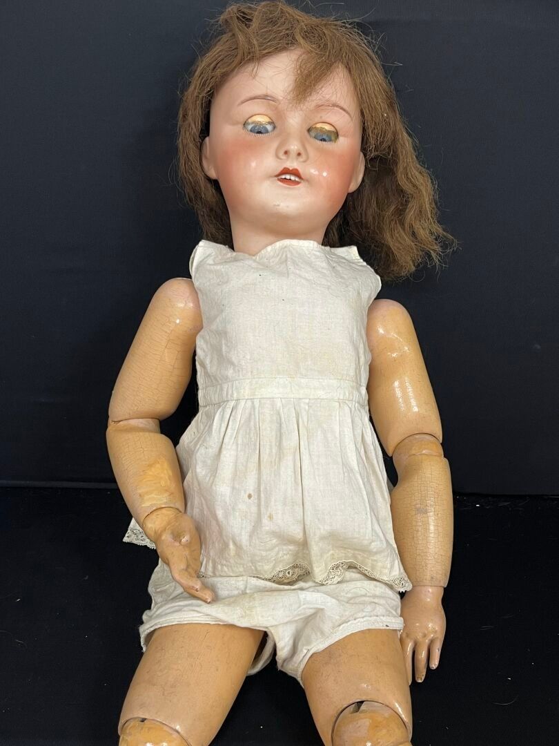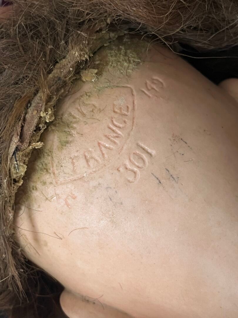 Doll with porcelain head and boiled cardboard body, the back of the head debossed with "301".
