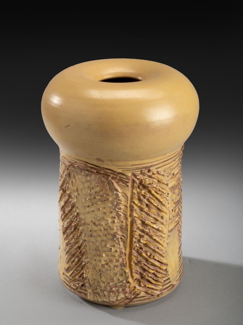Vase Cream-coloured glazed earthenware circular shape with g…