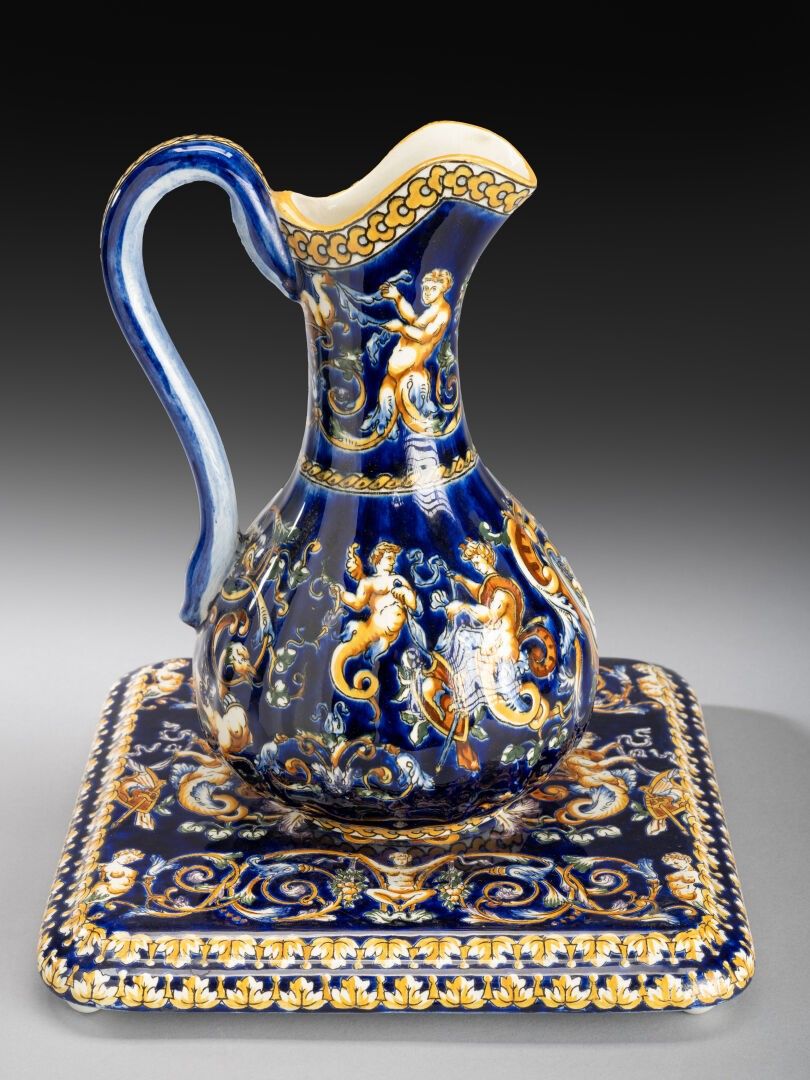 H. pitcher: 27 cm; W. trivet: 25 cm
