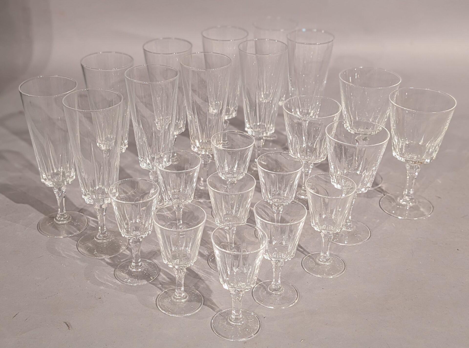 Comprising two water glasses, two wine glasses, nine liqueur glasses and ten champagne flutes