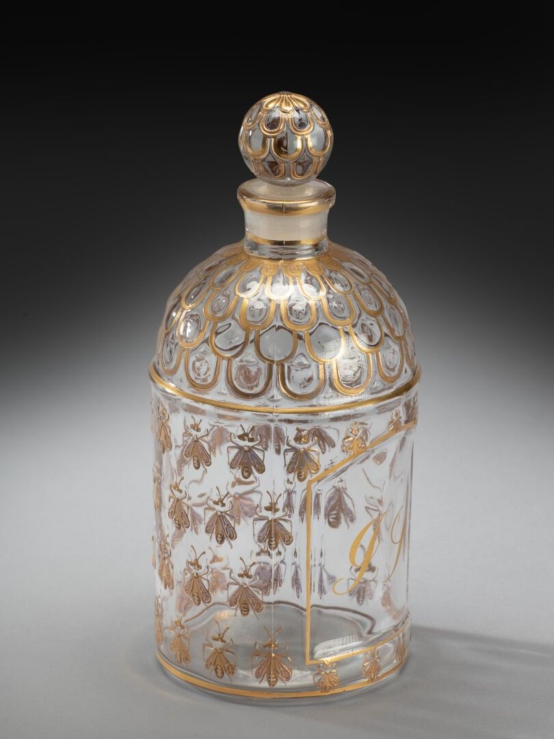 Bottle of imperial eau de cologne in moulded and gilded glass with bees, monogrammed