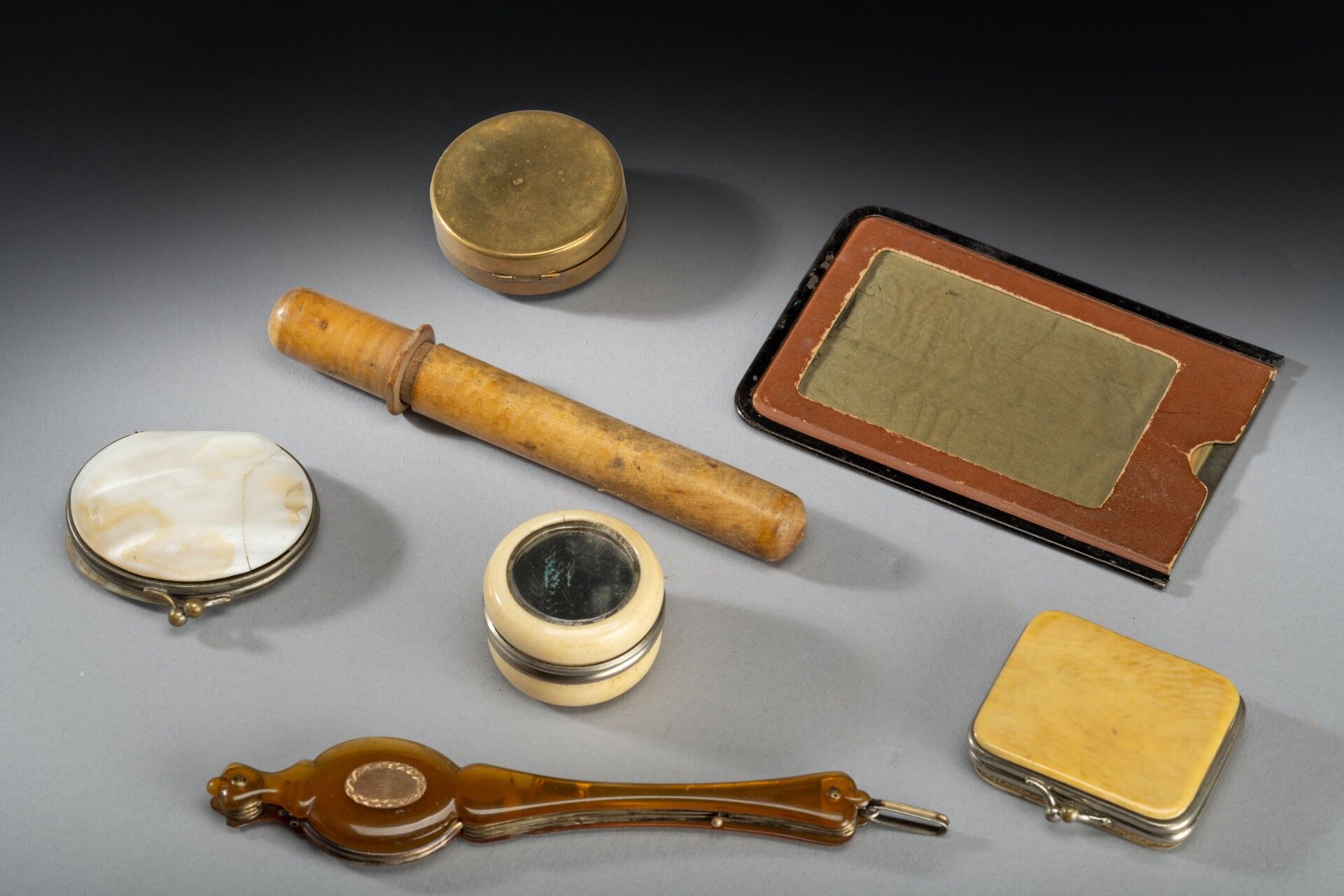 - Two small wallets, one in mother-of-pearl, the second in ivory