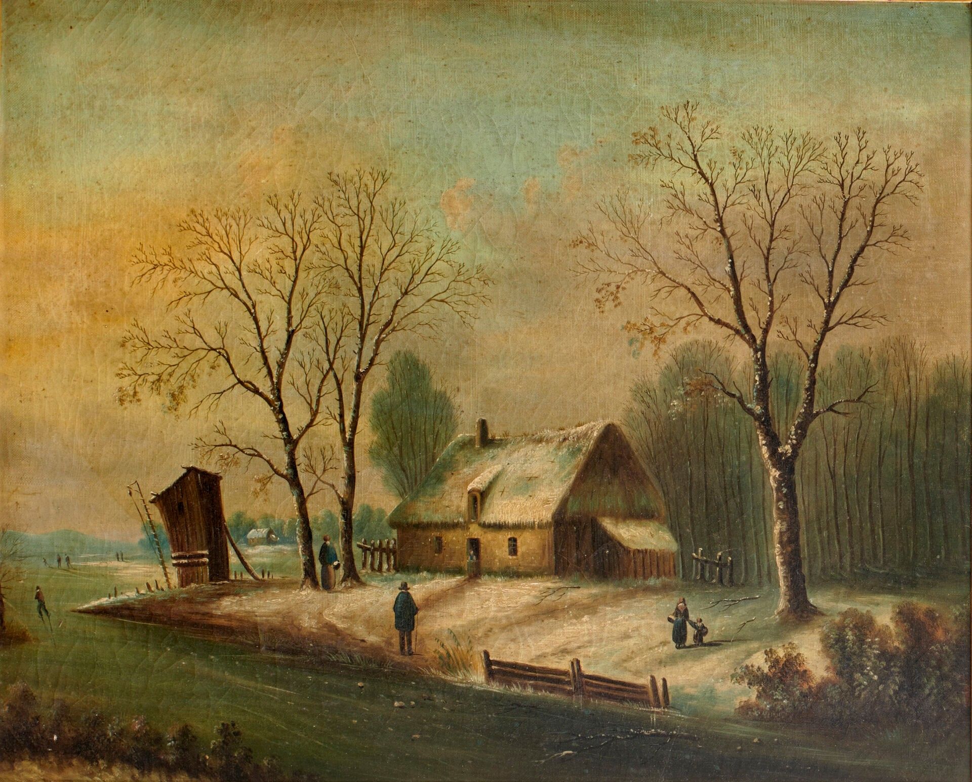 School of the XIXth century "Thatched cottage under the snow…