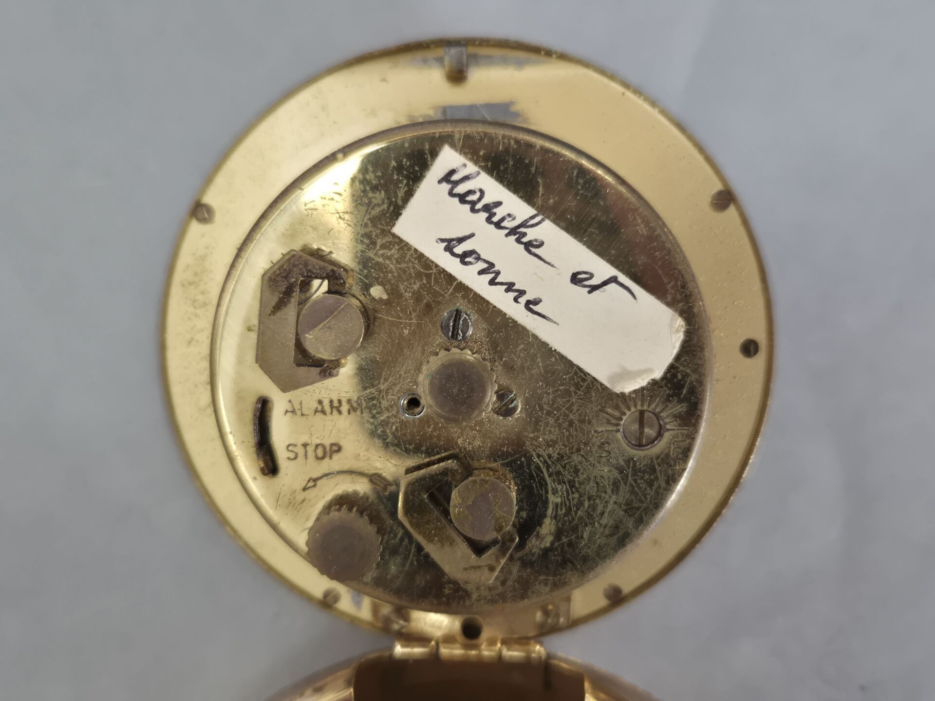 - EUROPA, Snuffbox style alarm clock with female profile marked NOBIS BENE NEMINI MALE
